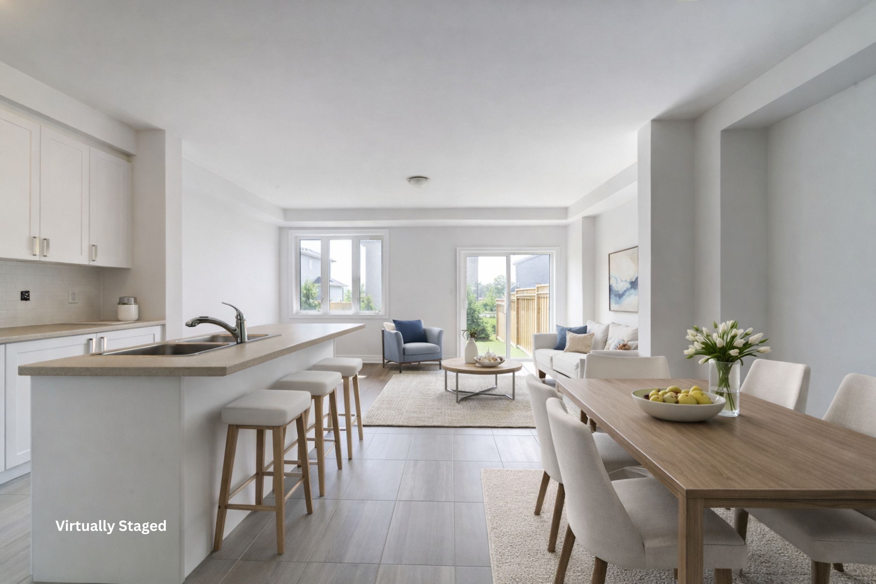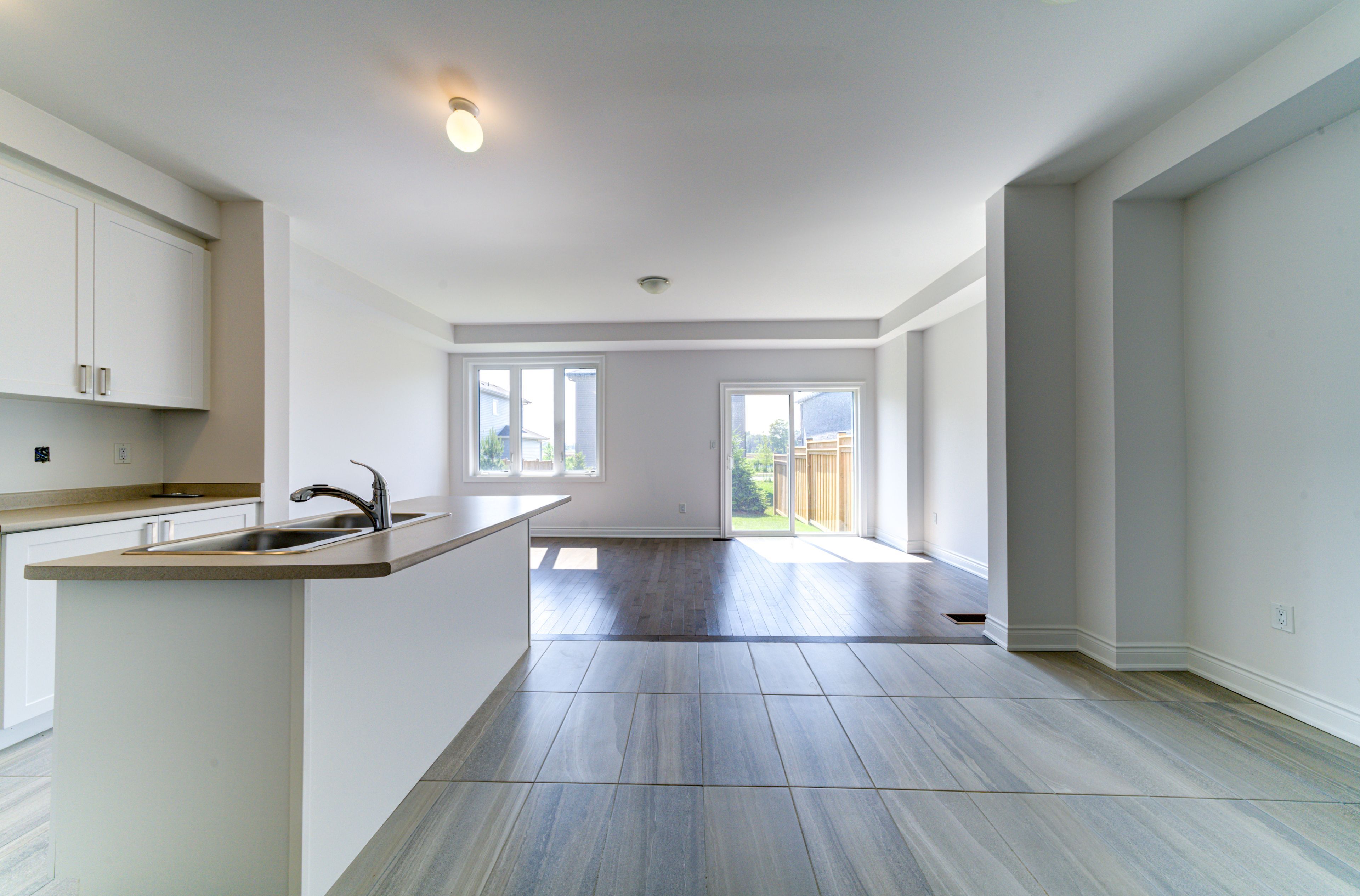 • Bright open-concept main floor with contemporary kitchen and backyard access.