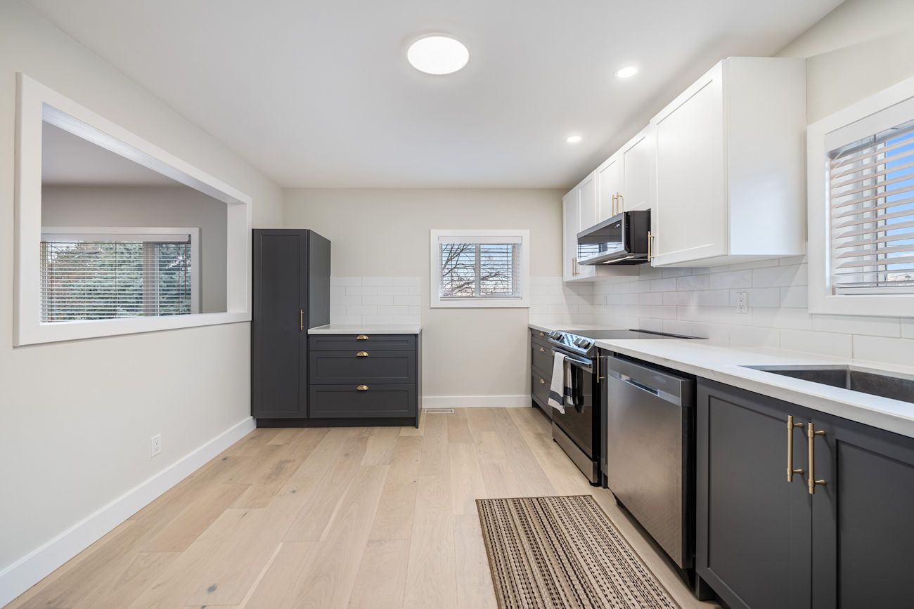 • Modern kitchen featuring quartz countertops and plenty of storage.