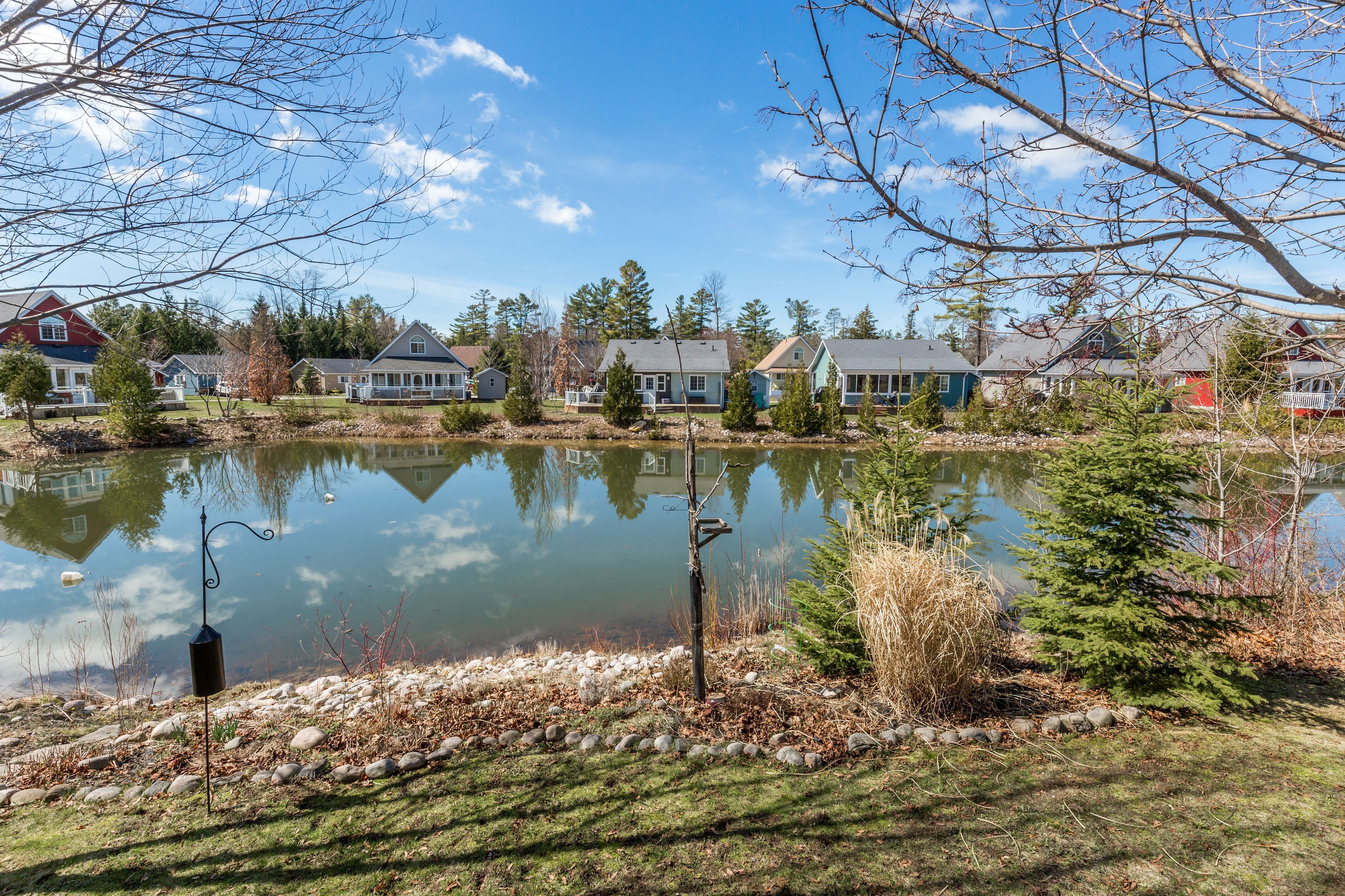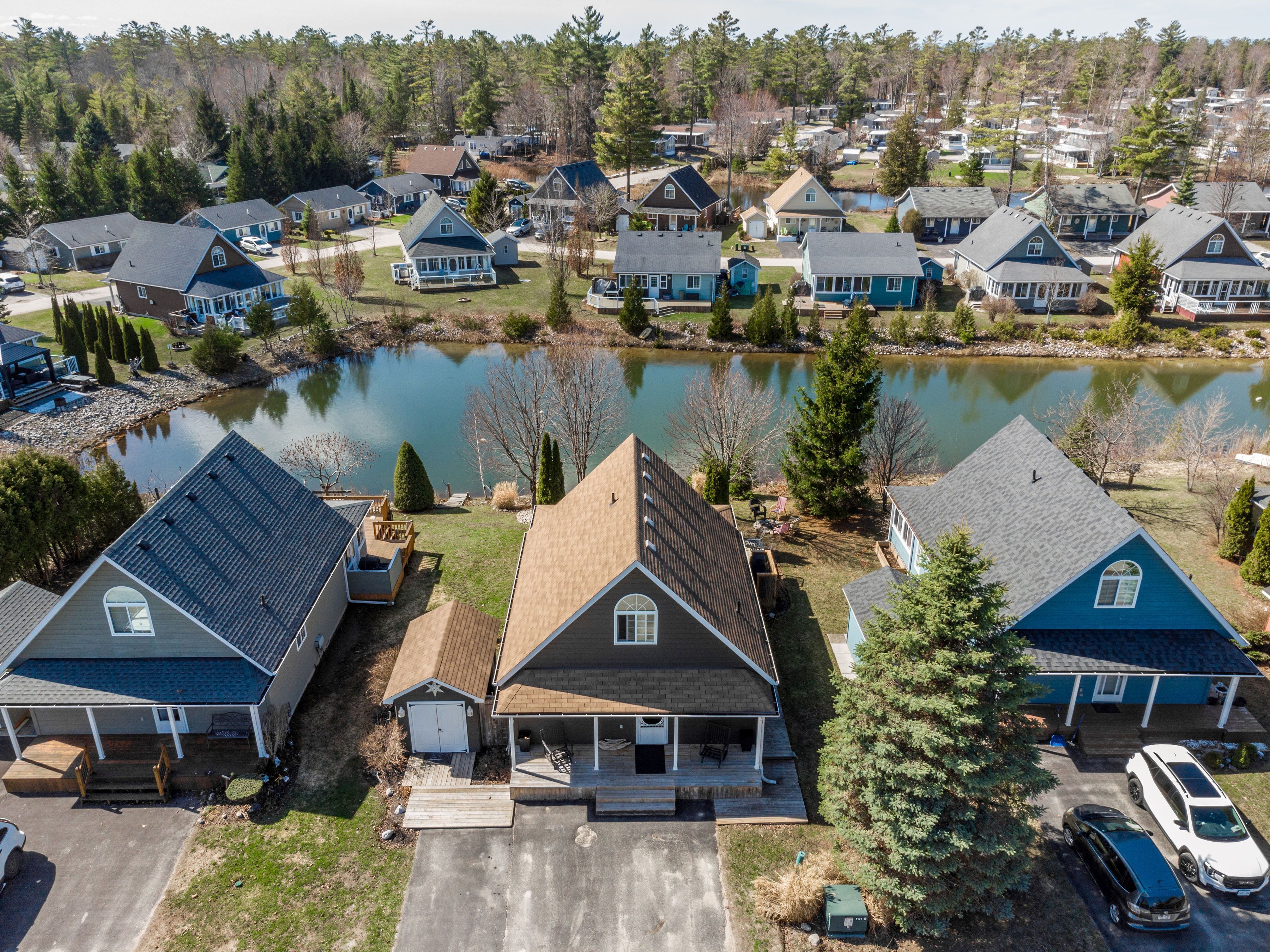 Enjoy easy, upscale living in this beautiful cottage-style home set in a private gated community, backing onto a calm, peaceful pond. Start your day on the front porch with the sunrise and fresh air. Inside, the open layout feels bright and welcoming, with large windows, warm finishes, and a clean, timeless design. The living room features a stylish fireplace-perfect for quiet nights or hosting guests. The kitchen is both modern and practical, designed to make everyday living feel just a little more special. Step out to your back deck and take in peaceful pond views and stunning sunsets. It's the perfect place to relax at the end of the day. This community offers a true resort-style lifestyle, with indoor and outdoor pools, tennis courts, a recreation centre, mini putt, a ball hockey rink, and a splash pad. Private walking trails lead to the sandy shores of georgian bay, giving you easy access to the water whenever you want. Whether you're looking for a full-time home or a weekend escape, this property offers comfort, privacy, and a great lifestyle in a sought-after setting.