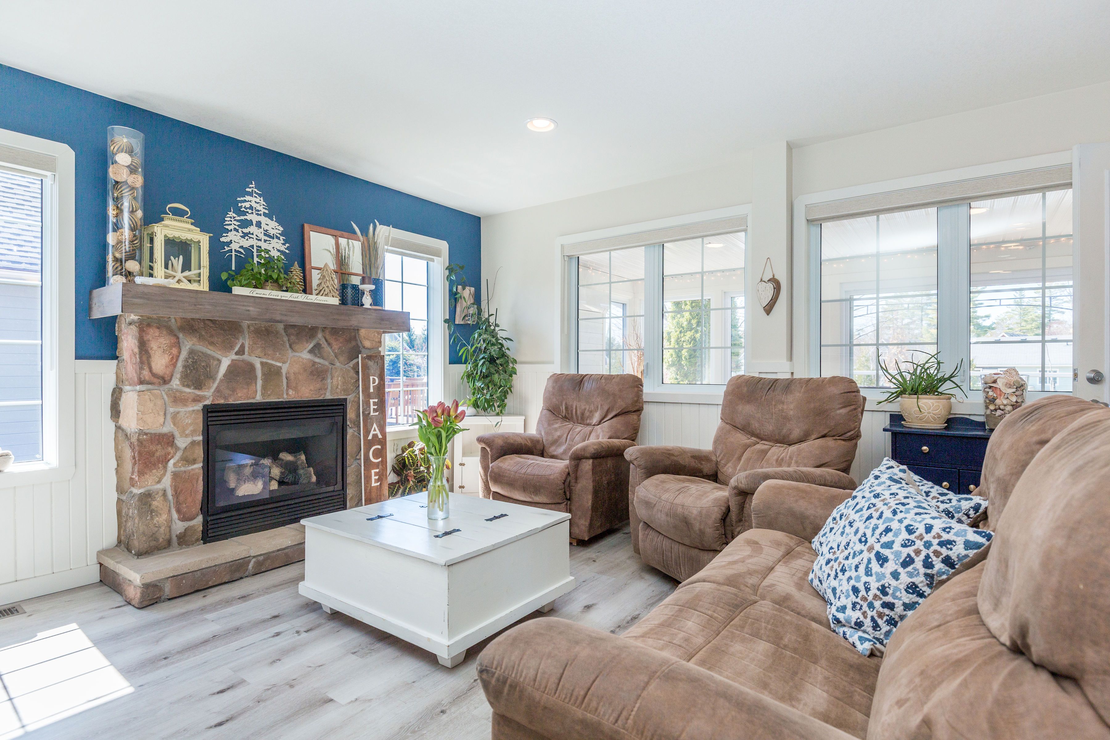 • Stylish living room fireplace for cozy nights and entertaining guests.