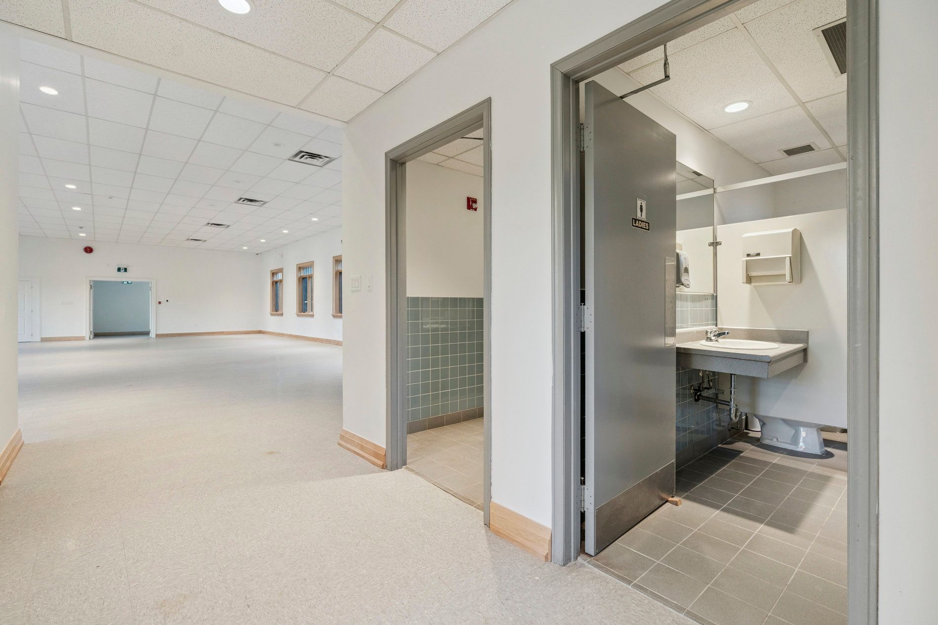 • Second floor offers spacious event space with high ceilings.