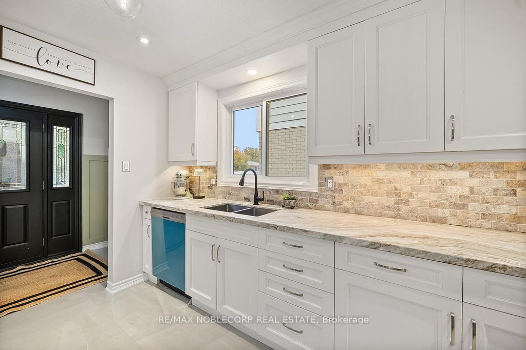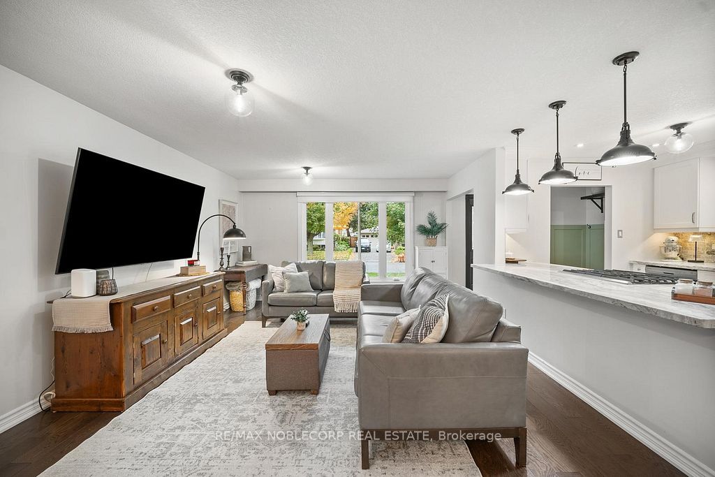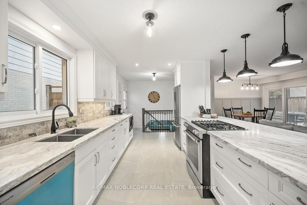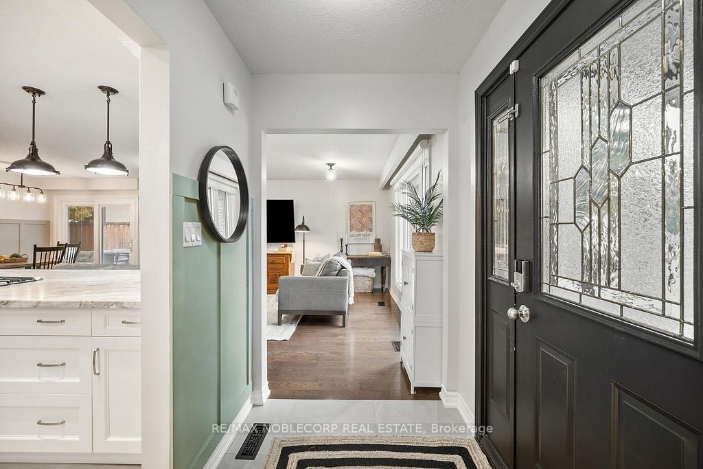 Welcome to 42 mitchell avenue, a beautifully renovated detached backsplit that effortlessly combines contemporary elegance with country charm. This spectacular 3-bedroom, 2-bath home sits on a large, mature lot in one of alliston's most peaceful neighborhoods. The open-concept layout showcases a designer kitchen with high-end stainless steel appliances, a kitchen aid gas stove, a built-in microwave, and an 8-foot granite breakfast bar that flows seamlessly into the bright and inviting living room and custom wainscotting. The finished lower level features a cozy gas fireplace, a modern tiled walk-in shower, and an inside entry to the 2-car garage. Step outside to your fully fenced backyard oasis, complete with an interlocked patio and a spacious deck, perfect for entertaining or quiet relaxation. With tasteful finishes throughout and thoughtful attention to detail, this move-in ready home offers comfort, style, and serenity surrounded by lush mature trees on this sought-after alliston street. There are so many amenities that alliston has to offer, and this convenient location is a short walk to most of them. Steps away from a park, holy family separate school, st. Paul's catholic church, ernest cumberland elementary school, community center, and a hospital!