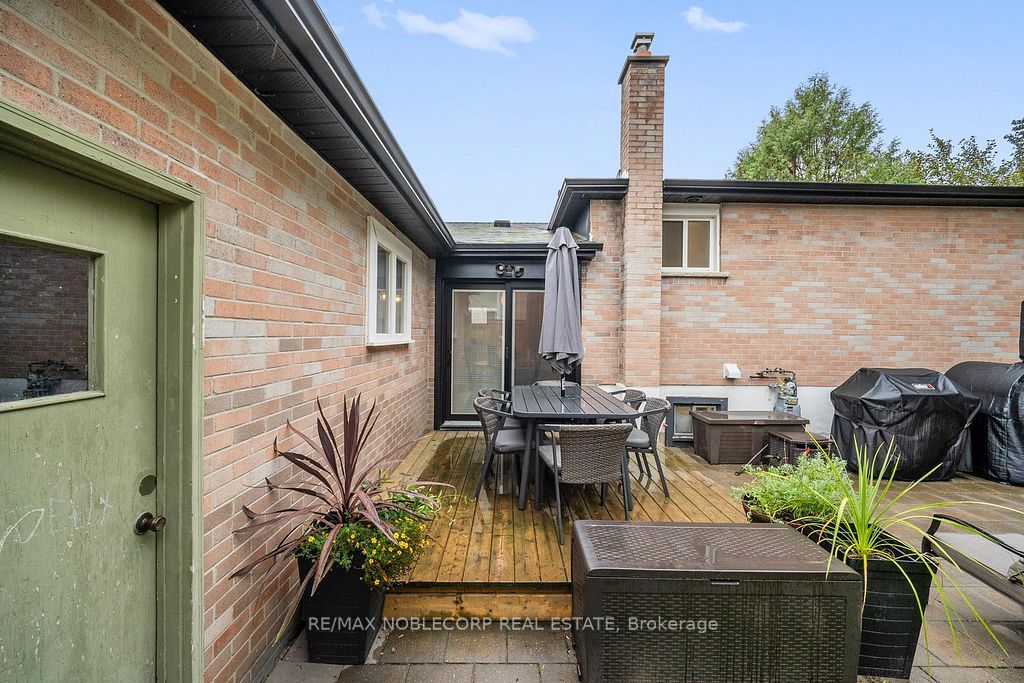 • Fully fenced backyard with an interlocked patio and deck.