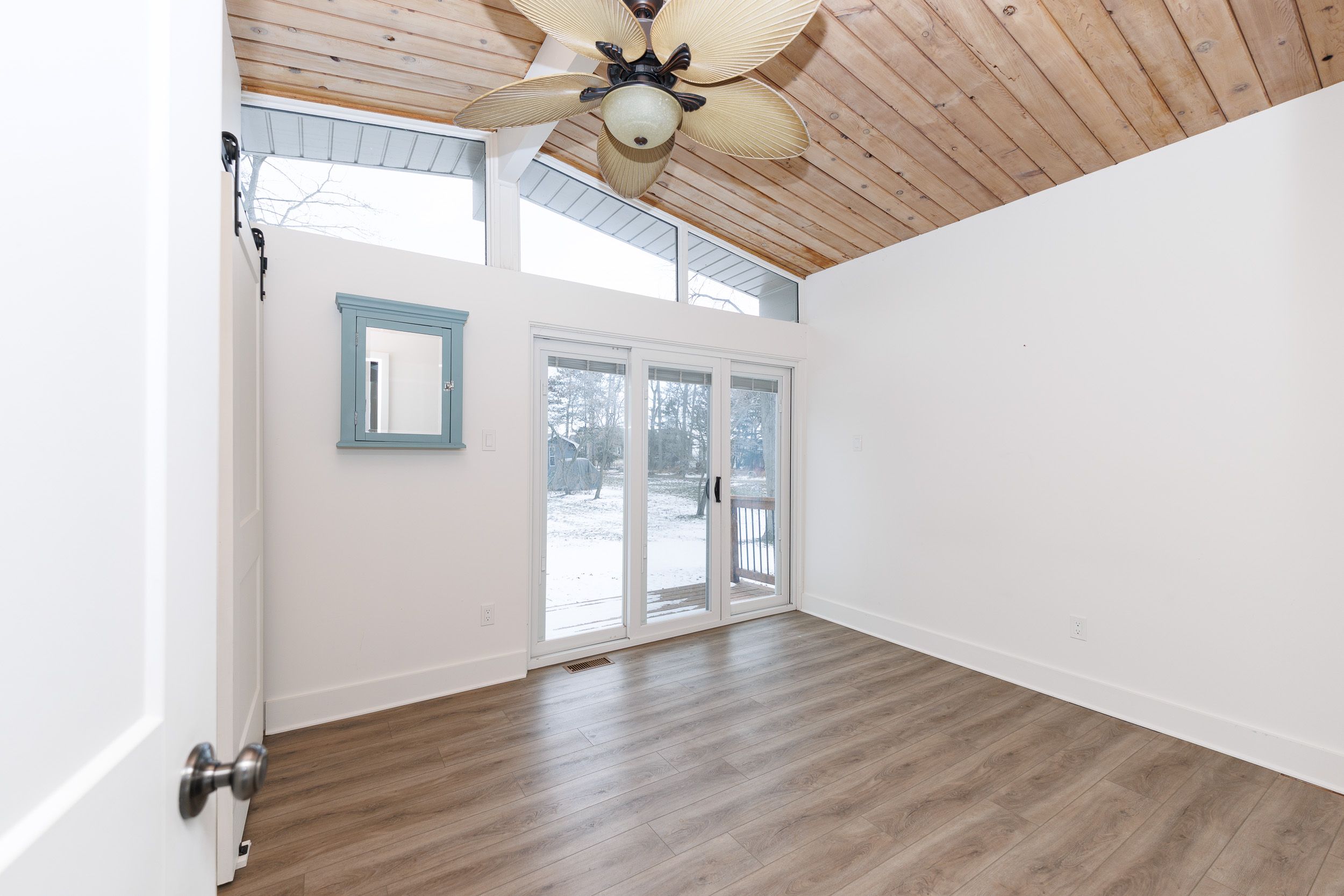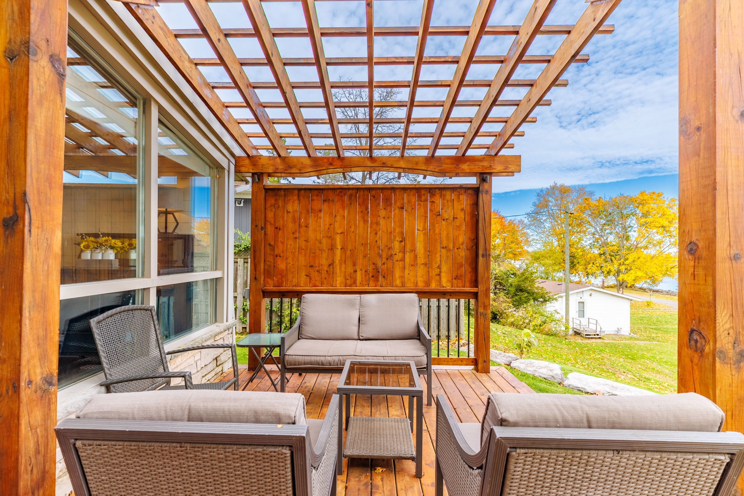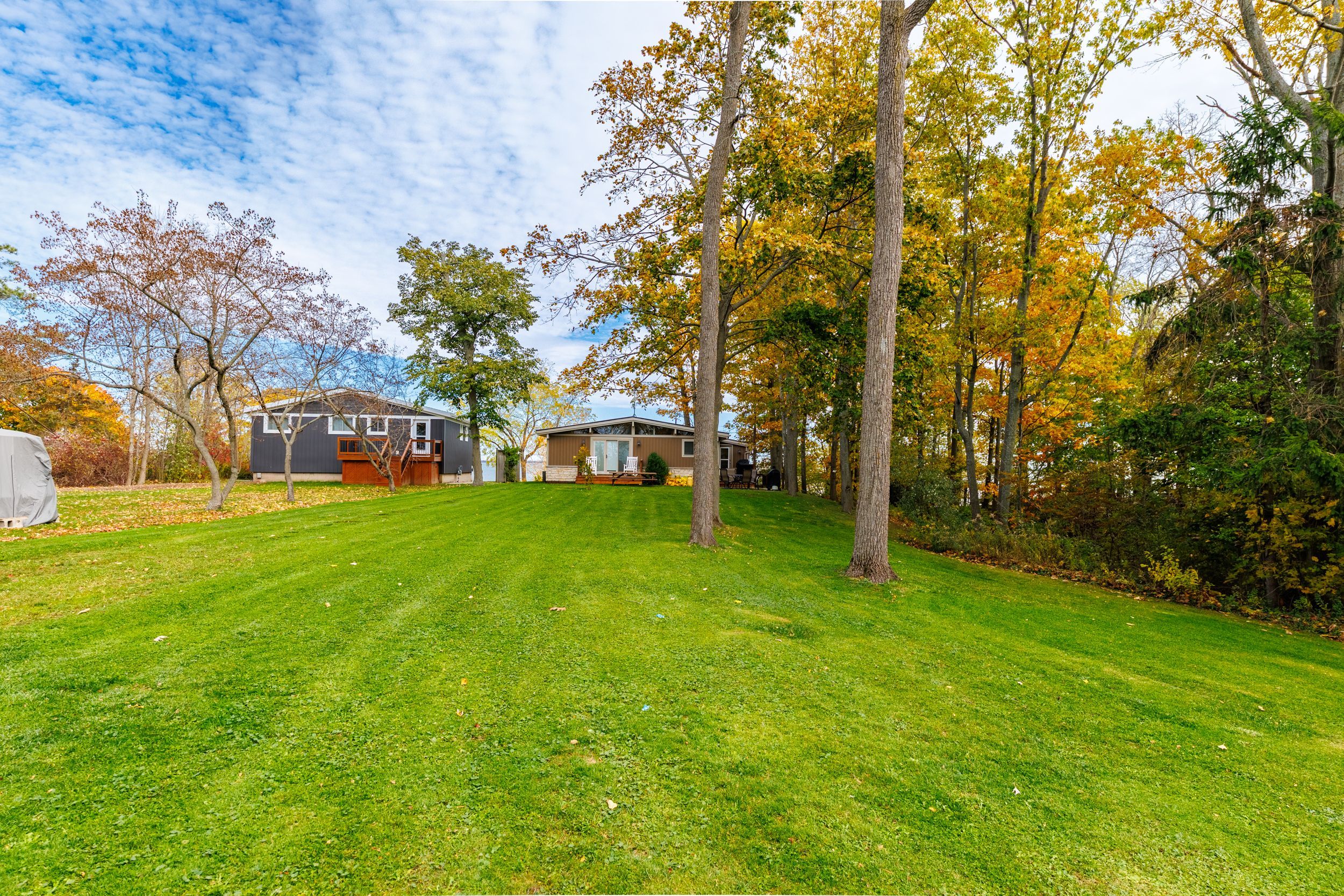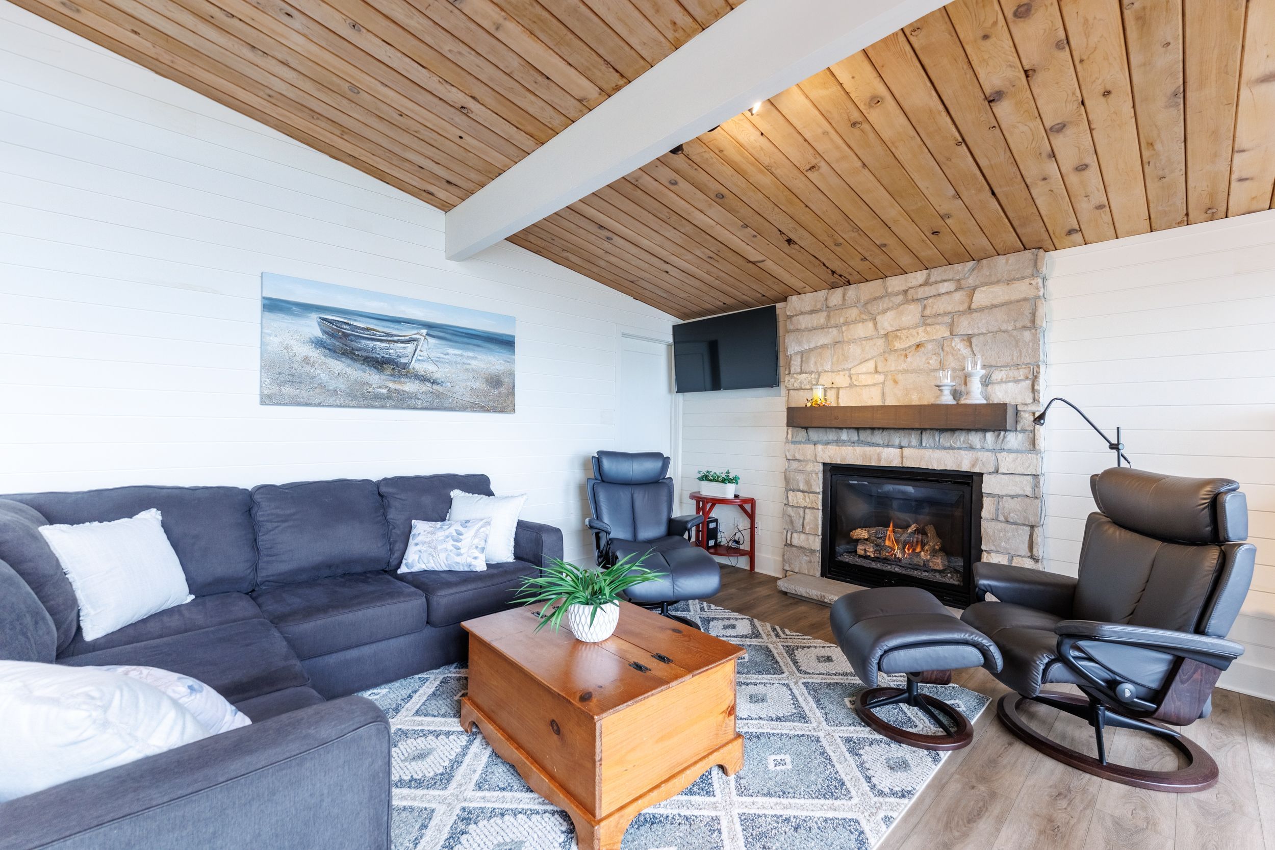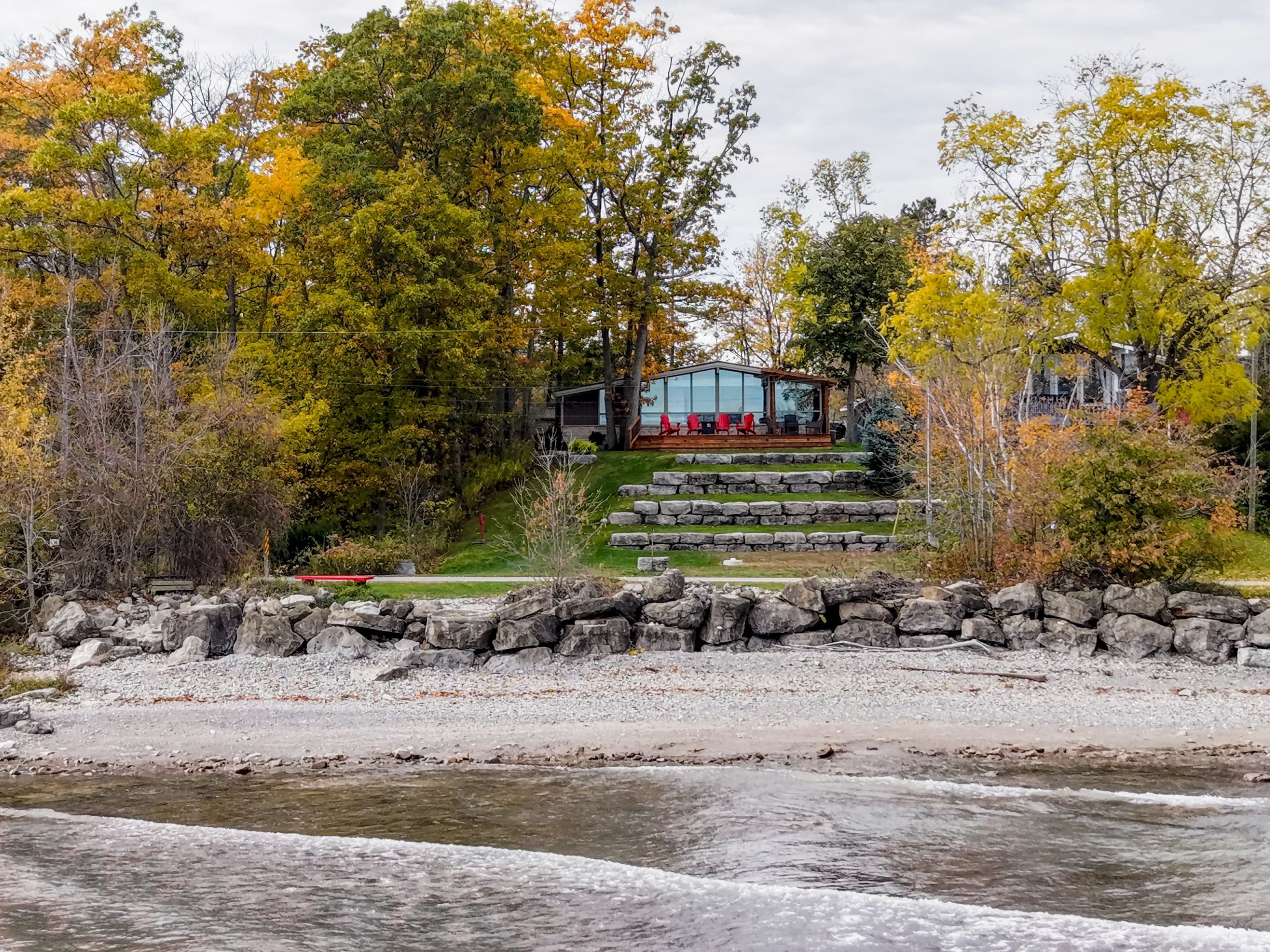 Tucked along a peaceful stretch of lowbanks shoreline between two quiet roads with no through traffic, this beautifully updated lakeside cottage sits on over half an acre and offers stunning panoramic views of lake erie - the perfect year-round retreat for families & friends to relax and reconnect with nature. Inside, the cottage has been thoughtfully refreshed with crisp white finishes complemented by warm natural elements such as wood ceilings and a stone fireplace; creating a bright yet cozy lakeside atmosphere. The open-concept living and dining area is flooded with natural light from a spectacular window wall overlooking the lake, while the gas fireplace adds warmth and charm on cooler evenings. 3 bedrooms and a 4-pc bathroom complete the comfortable main-floor layout. Step outside through the patio door to the lakeside deck, where you can take in sweeping water views & watch the waves roll in. The armour stone terraced yard leads down toward the shoreline, creating a dramatic & beautifully landscaped approach to the lake. Just across mohawk point rd, another armour stone retaining wall frames a small grassy sitting area with a bench - the perfect place to enjoy sunrises, sunsets, and peaceful moments by the water. Below the rock wall lies the beach & lake erie itself, where you can launch paddleboards and kayaks, swim, or simply play along the shoreline before heading back to the cottage for lunch or an afternoon nap. Evenings are made for bonfires, star-filled skies, and time with family & friends. Accessed via kimber rd, the driveway leads to the rear of the property where you'll find a second deck, patio dining/bbq area, and a large storage shed for kayaks, etc, all set within the expansive tree-lined backyard that provides privacy & plenty of space to relax or play. Whether you're looking for a weekend escape, family cottage, or peaceful lakeside retreat, this property offers the sights, sounds & simple pleasures that make life on lake erie so special.