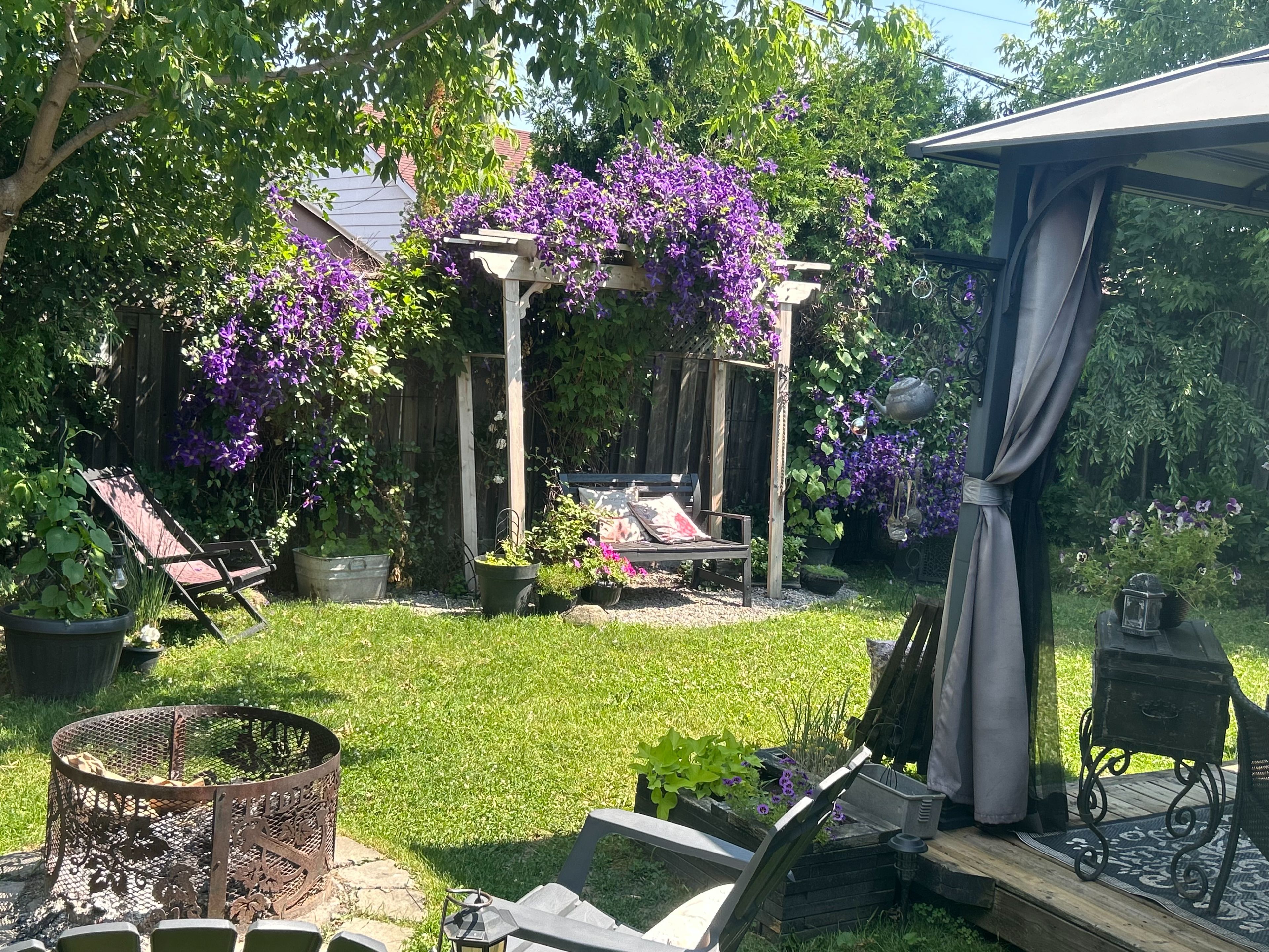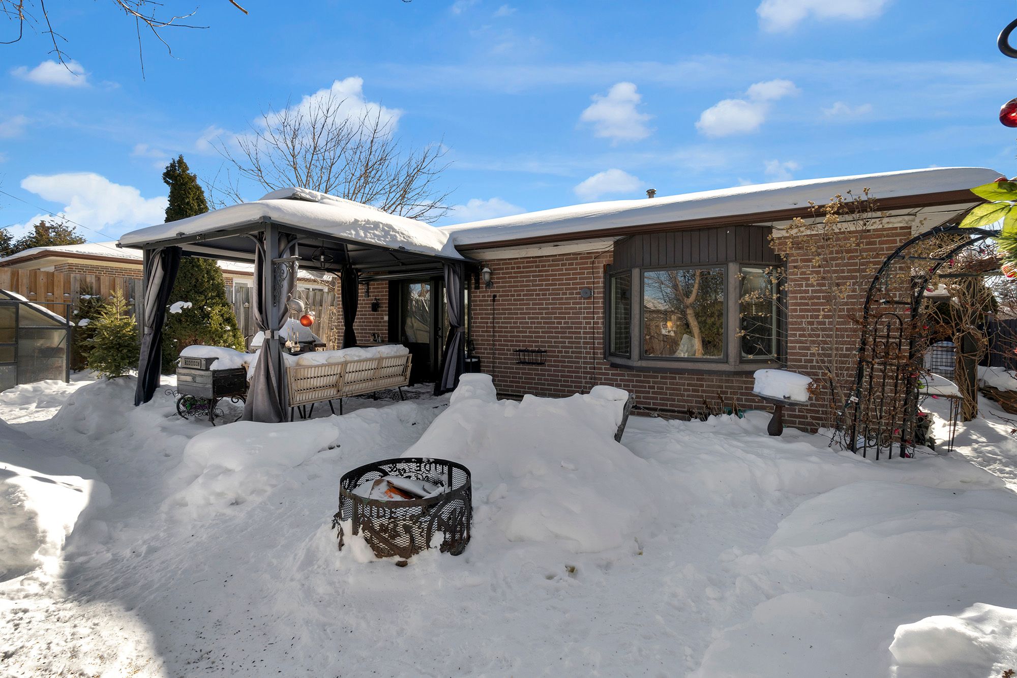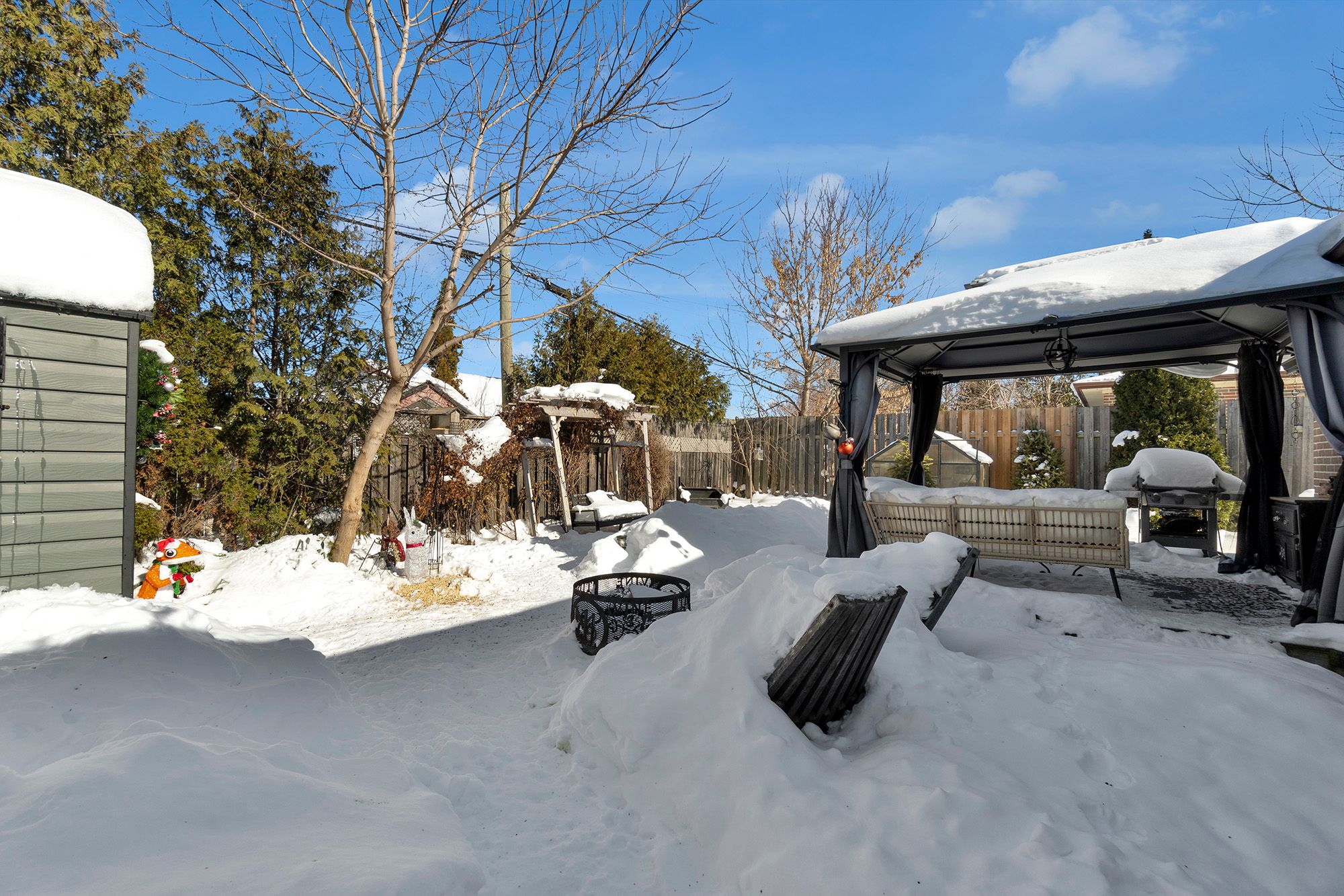 • Private backyard oasis with greenhouse and gazebo for relaxation.