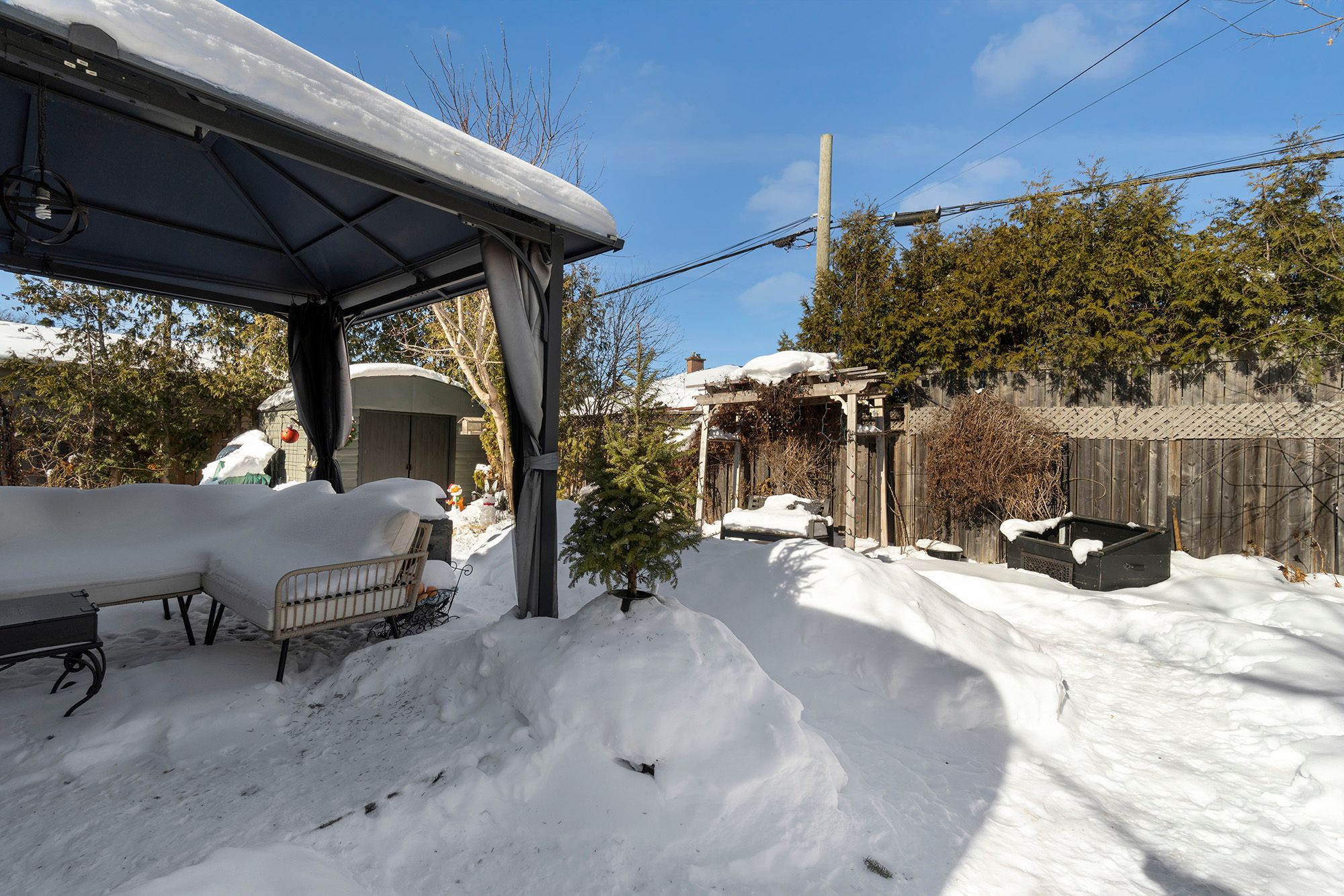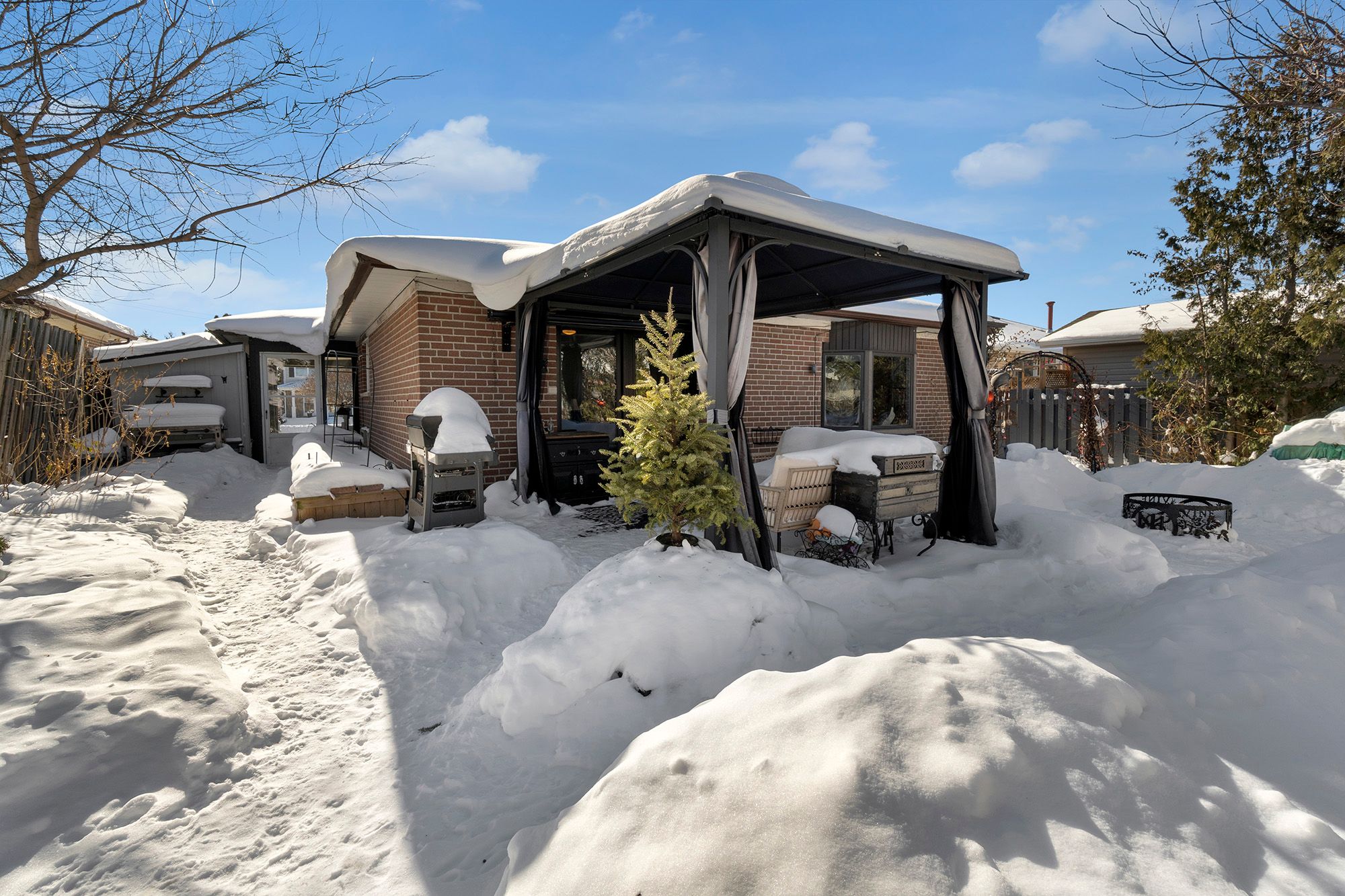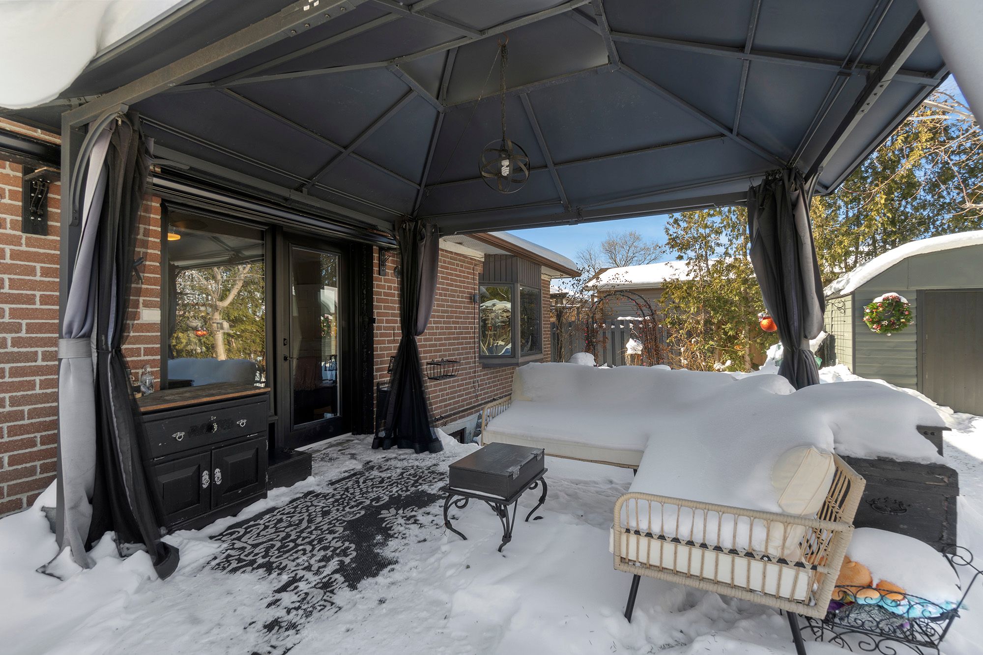 • Private backyard oasis with greenhouse and gazebo for relaxation.