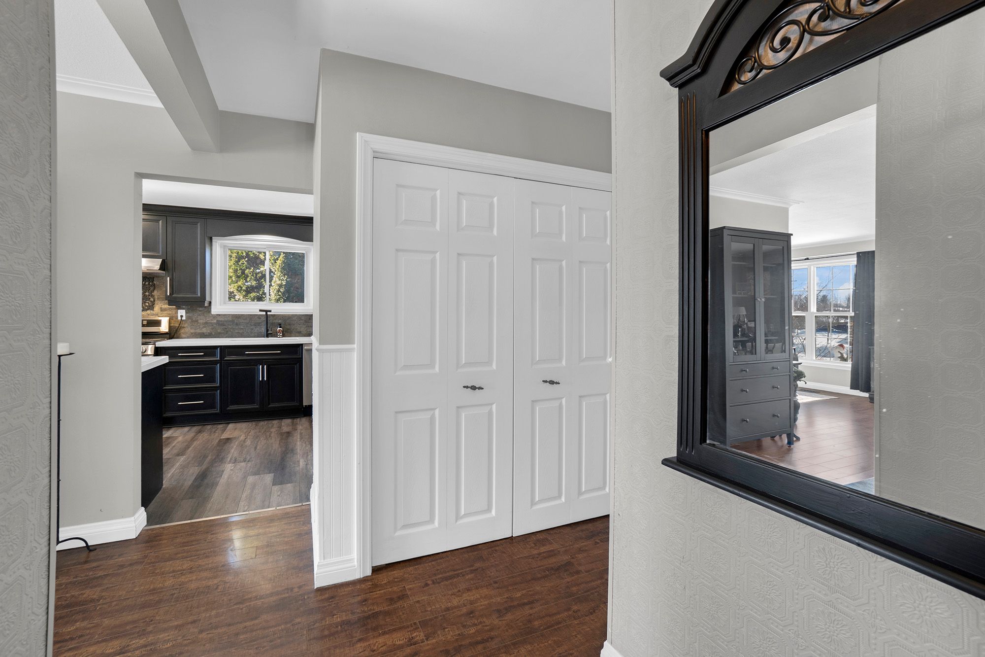 Welcome to 42 moultrey cres!! Located in the heart of georgetown - this beautifully designed detached bungalow is located on a child-friendly street and has been thoughtfully modified to be accessible for a variety of lifestyles and stages of life. The main floor features family room + dining room combo, updated kitchen with stainless steel appliances and quartz countertop. Large primary bedroom on main floor which comes with large double closets + walk-out to your backyard oasis. The main floor is completed by another generous sized bedroom and full bath which includes a roll-in shower + accessible under counter space. The basement is fully finished and includes two large bedrooms, rec room and another full bath. There is a separate entrance to the home already setting it up perfectly should you choose to create an in-law suite. The rear yard is fully fenced and equipped with a greenhouse and gazebo perfect for enjoying during the warmer months. Situated on a 50x100ft, the large driveway will comfortably fit 6 vehicles! Conveniently located close to parks, hungry hollow trail, schools of all levels, shopping, and georgetown go station! Other notable features: main door + back door entrance along with kitchen appliances are all wheelchair accessible, water shut-off on main floor, additional stackable laundry could be setup in closet on main floor.