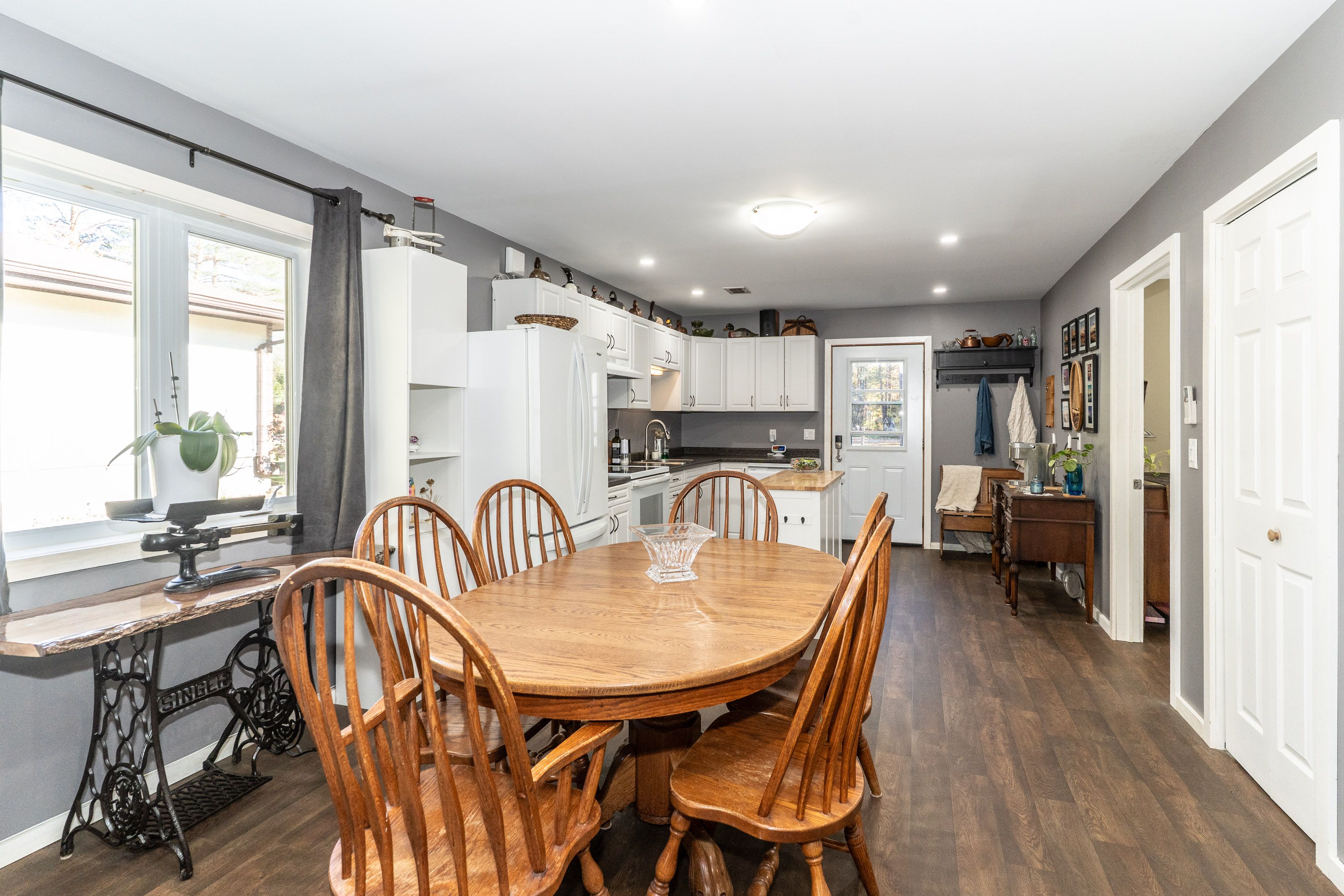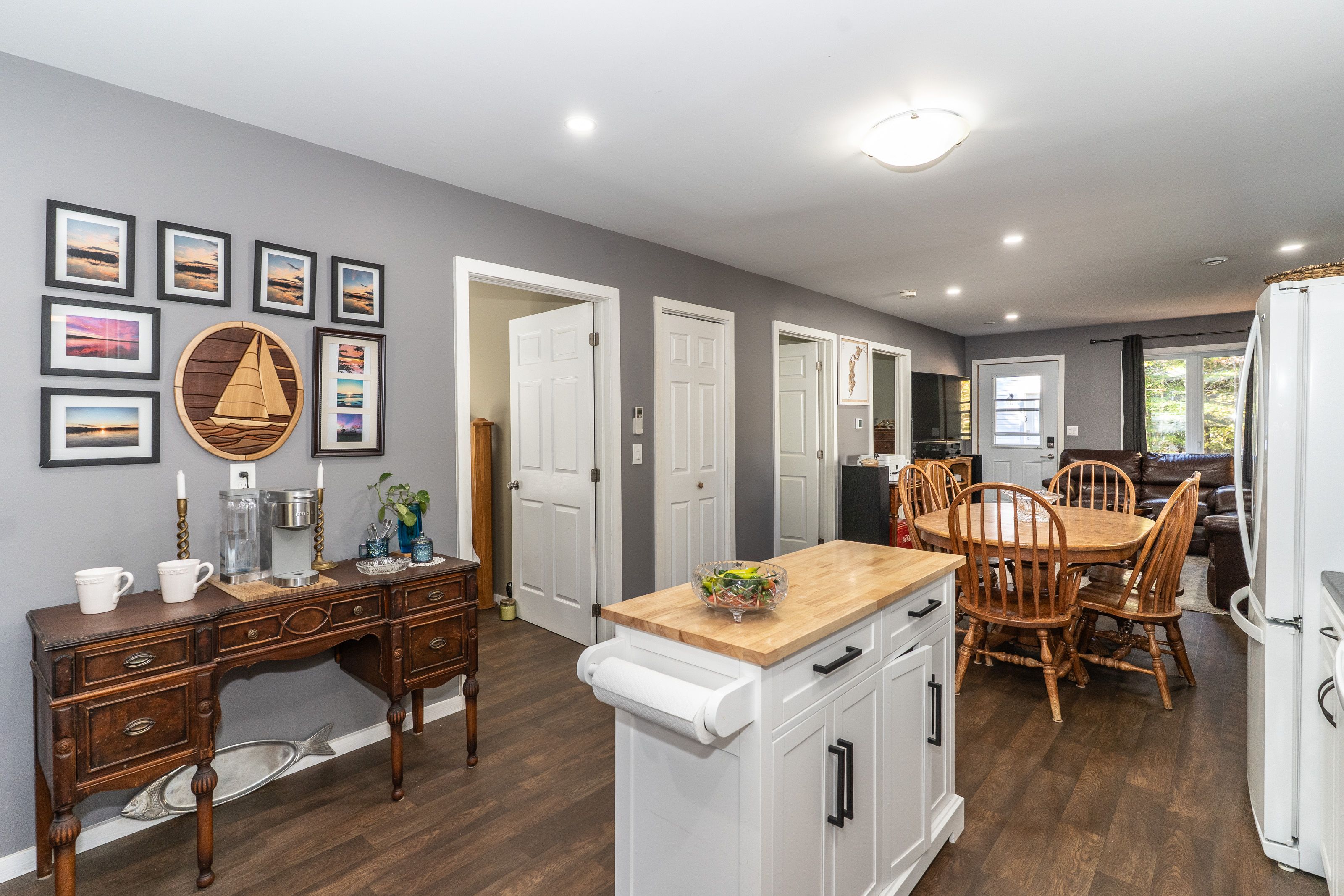 Sundridge bungalow- " move in ready" including many upgrades (list available). Radiant in floor heating system , large gas fired hot water tank, ( newer) heat pump provides a/c and back up heat. Newer appliances- bosch dishwasher, stackable washer/dryer, fridge, and stove. Outdoor additions of barbeque hooked up to gas, and frost resistant tap. Bonus upgrades- front and back garages have comfortable heated additional enjoyment spaces. F/a radiant (gas) heat, drilled well, municipal sewers, fiber optics internet. A perfect set up for young or old .... This is an opportunity that is not offered each day - easily a trouble free package good for many years !! Located on edge of town within walking distance to downtown and waterfront of popular lake bernard .
