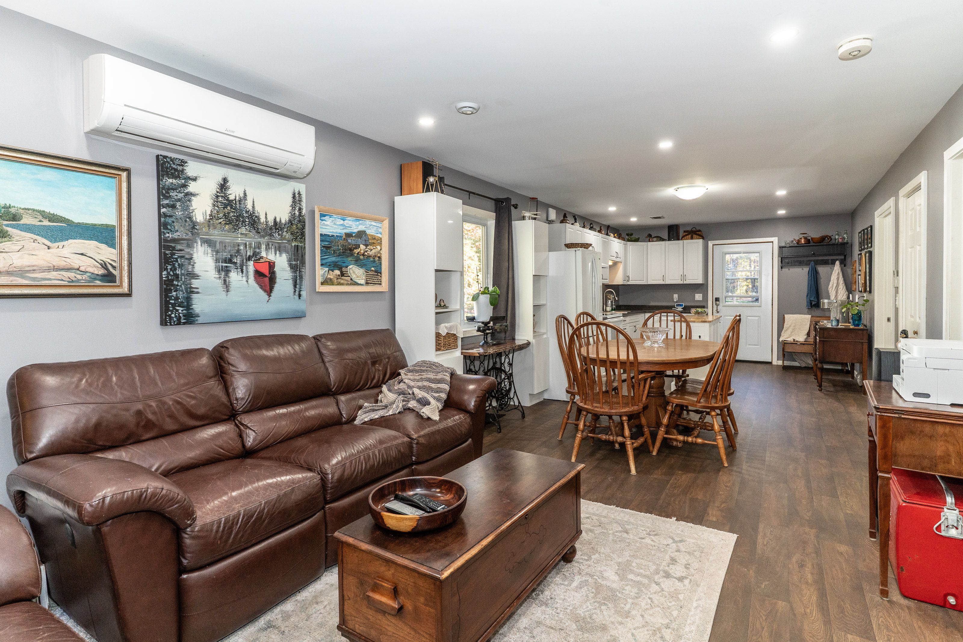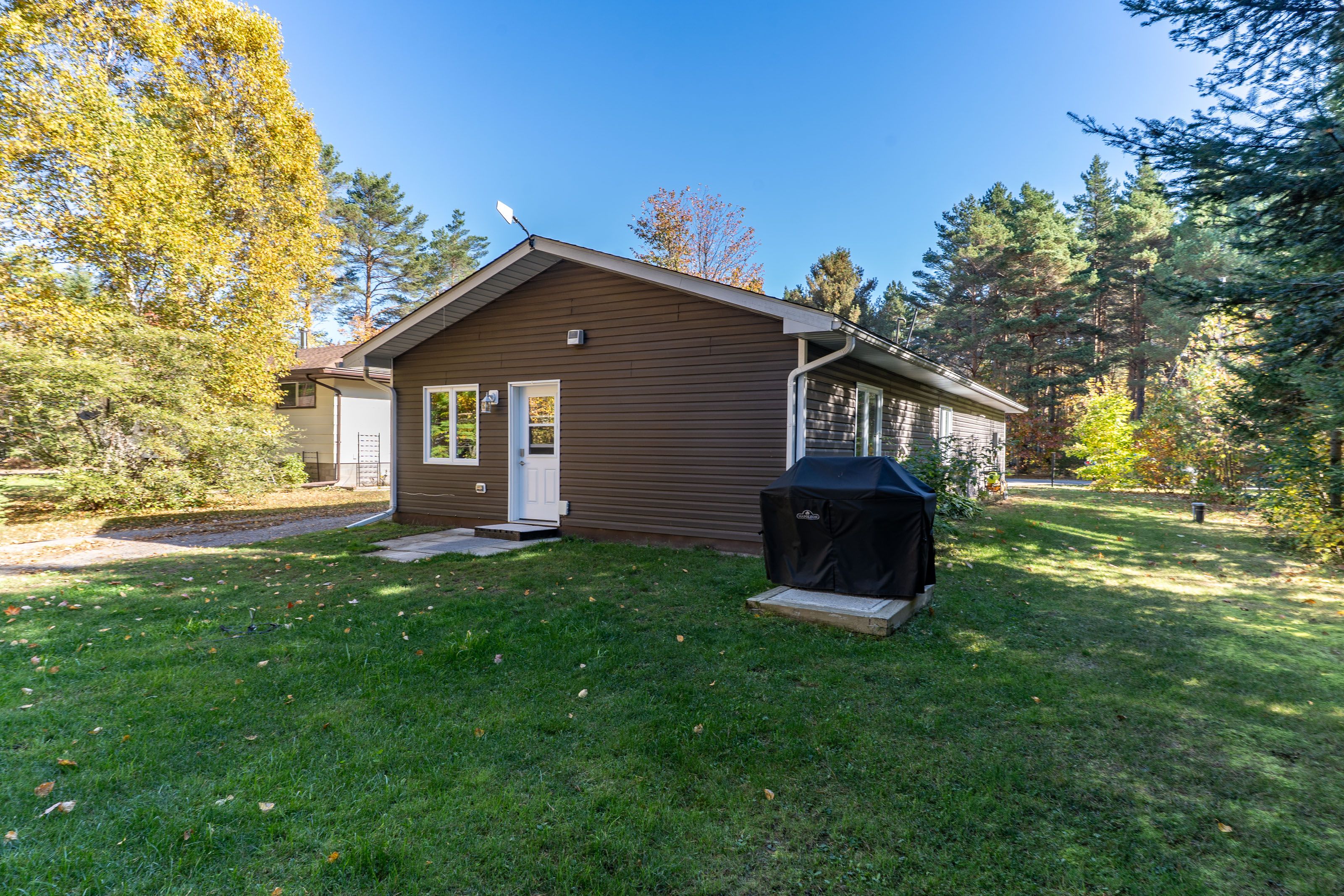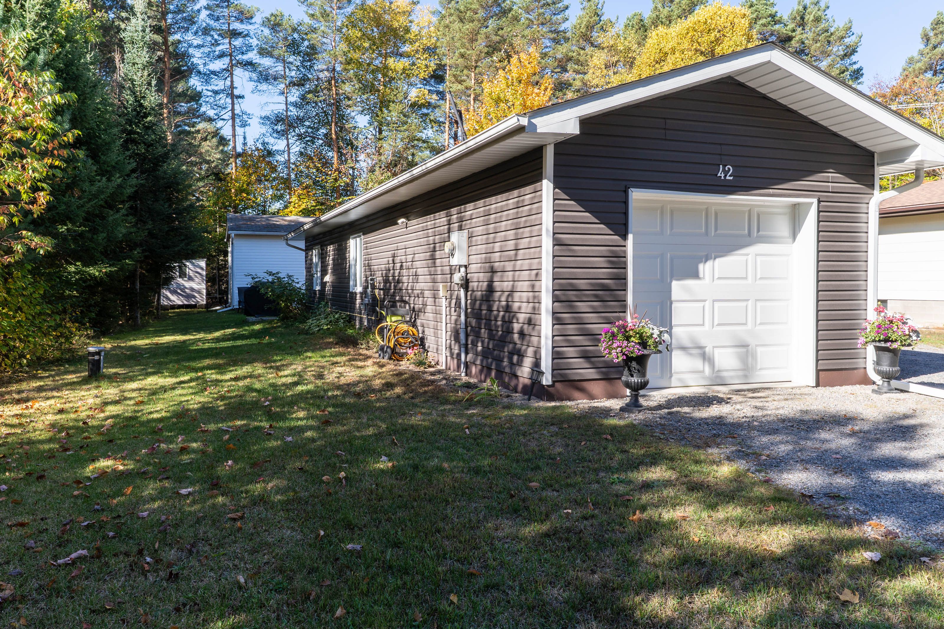 Sundridge bungalow- 2 bedrooms . Move in ready including many upgrades (list available) including heat pump for back up heat/ac, appliances, and outdoor additions of barbeque hookedup to gas, and frost resistant tap. Front and back garages have comfortable heated additional enjoyment spaces. F/a radiant (gas) heat, drilled well, municipal sewers, fiberoptics internet. A perfect set up for young or old .... This is an opportunity that is not offered each day ! Located on edge of town within walking distance to downtown and waterfront of popular lake bernard .