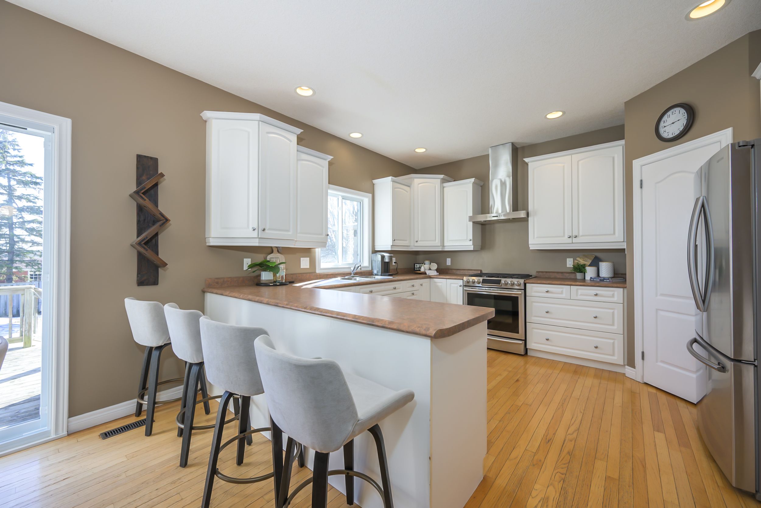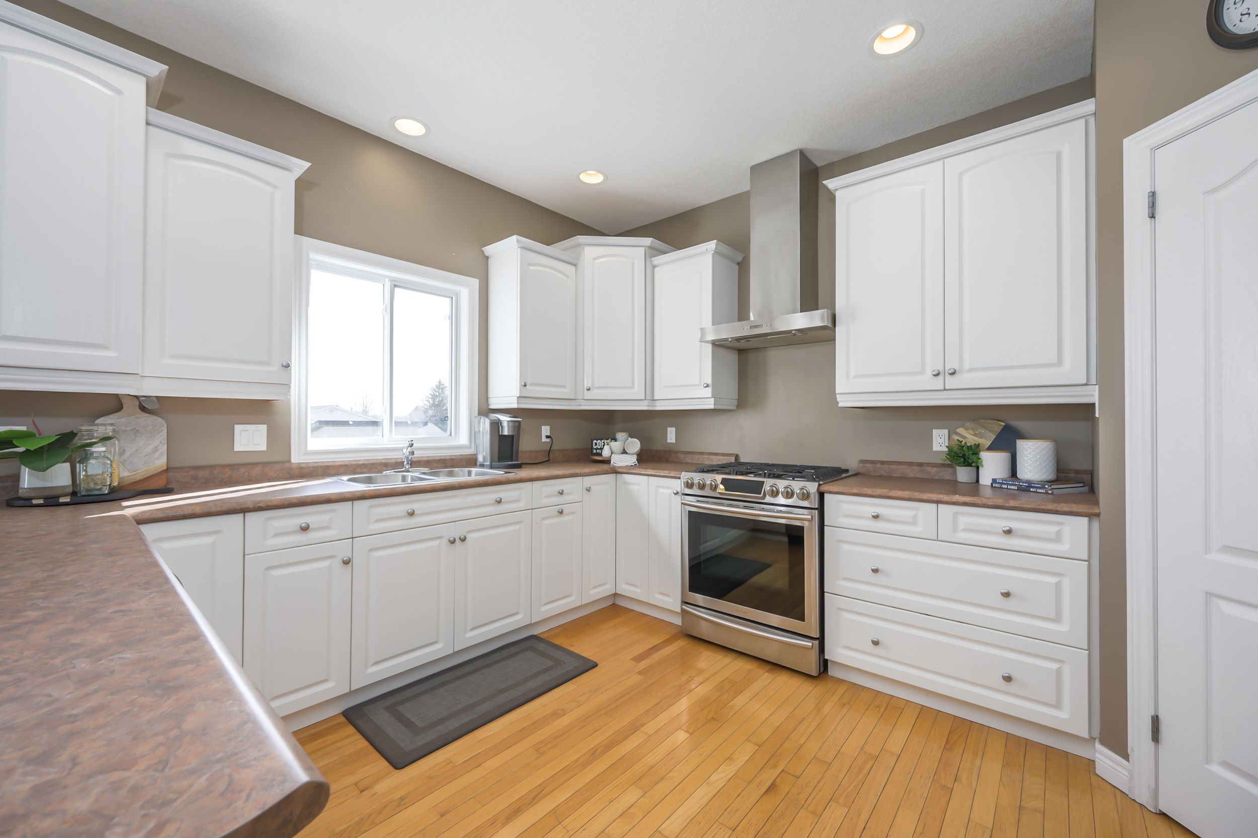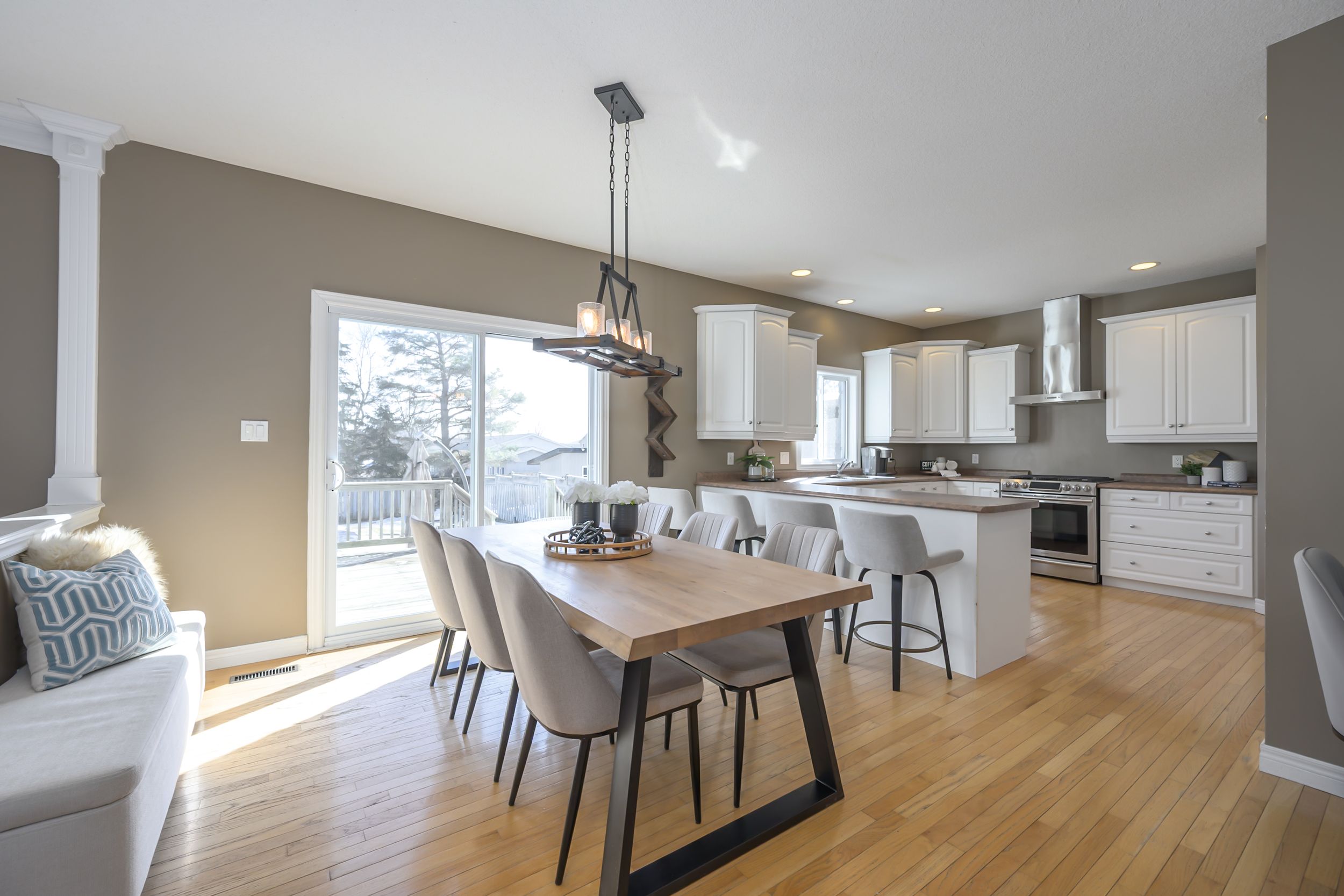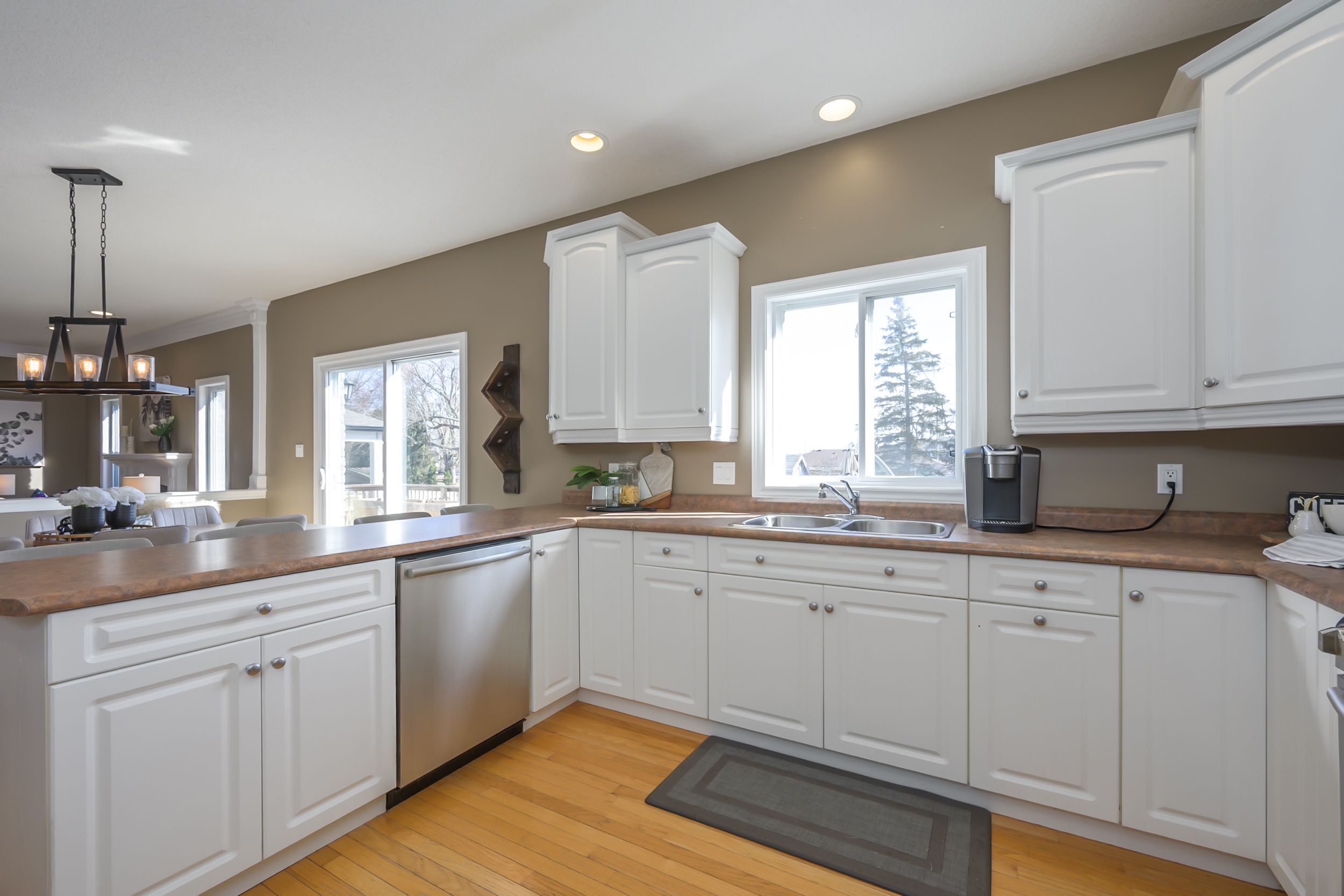 • Bright kitchen with ample cabinetry and a large eating area.