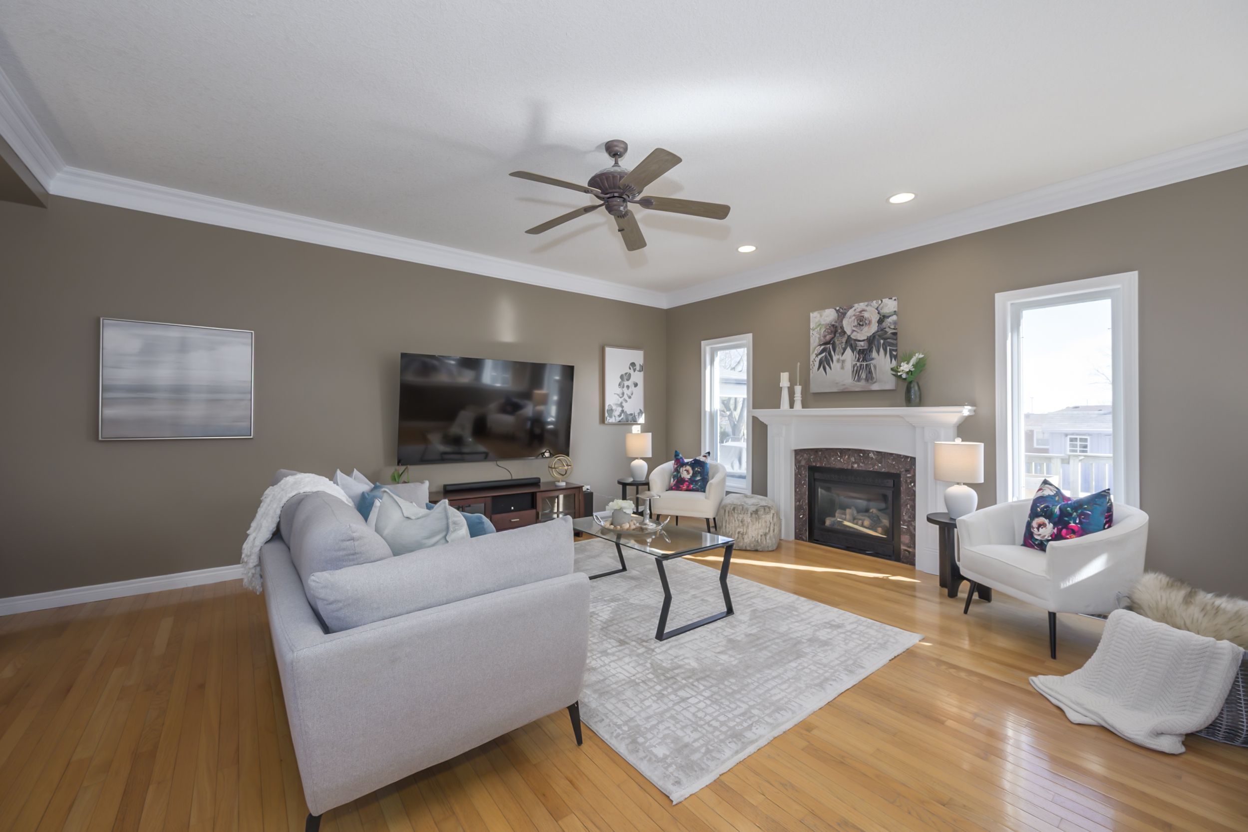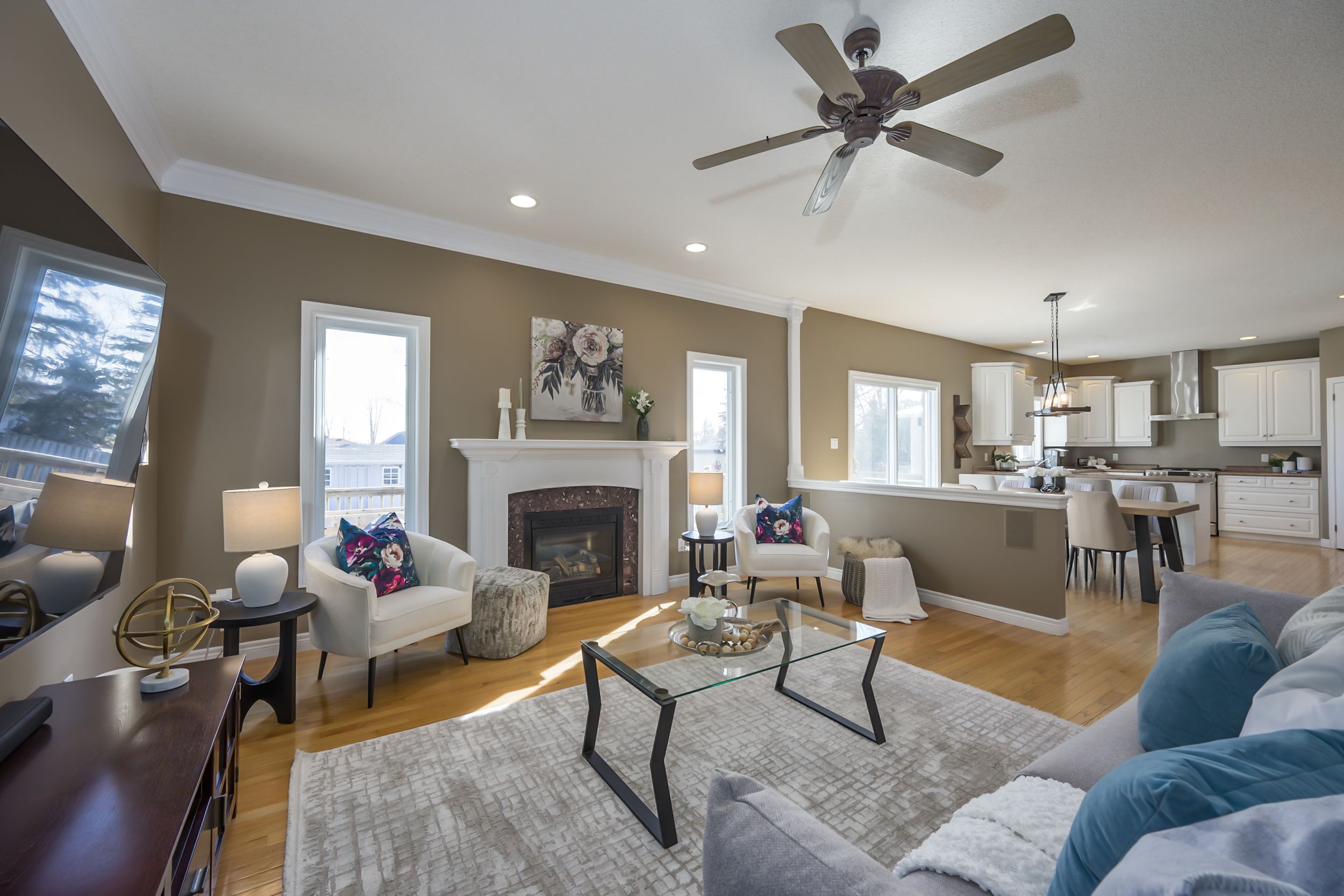• Spacious great room with a fireplace, perfect for gatherings.
