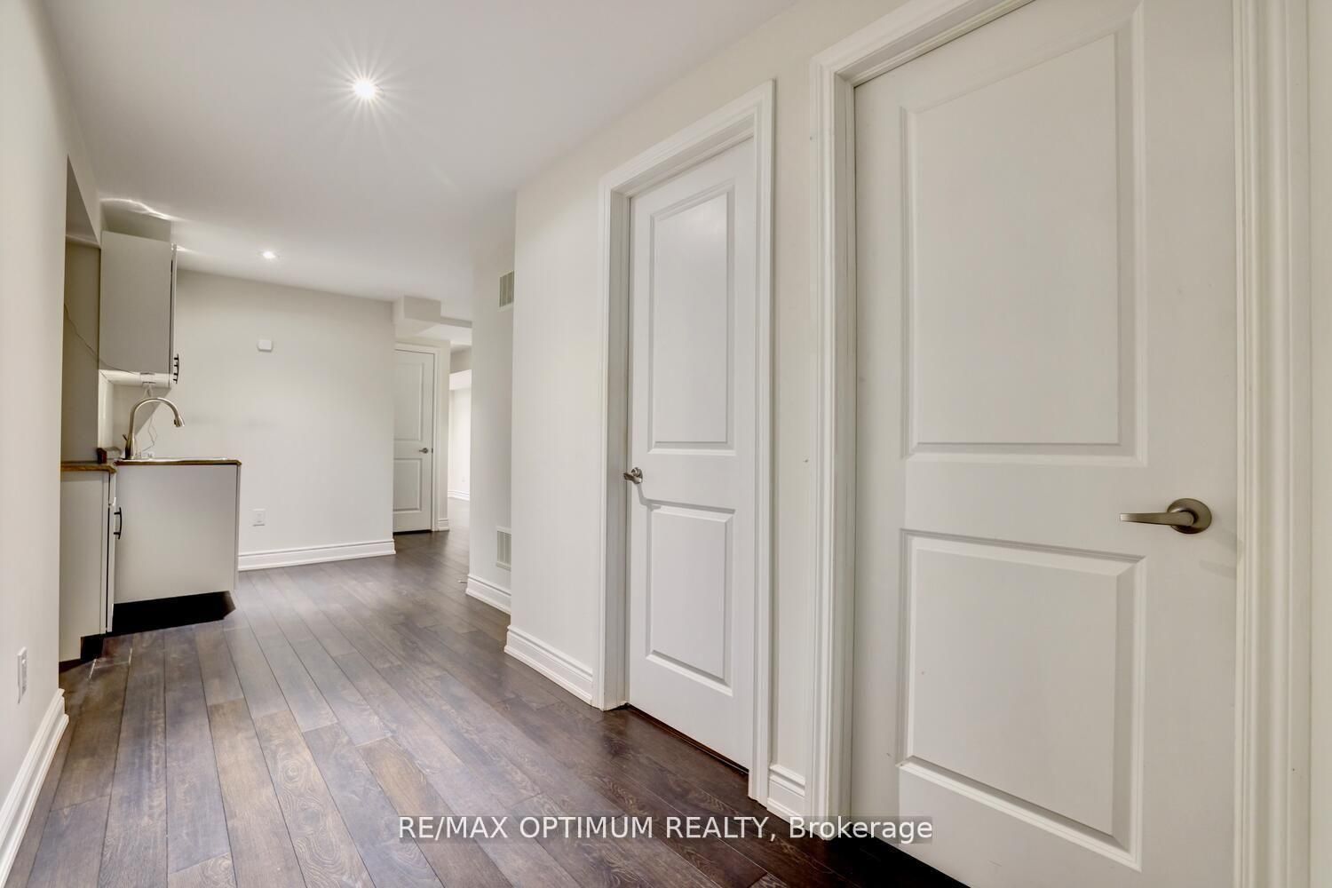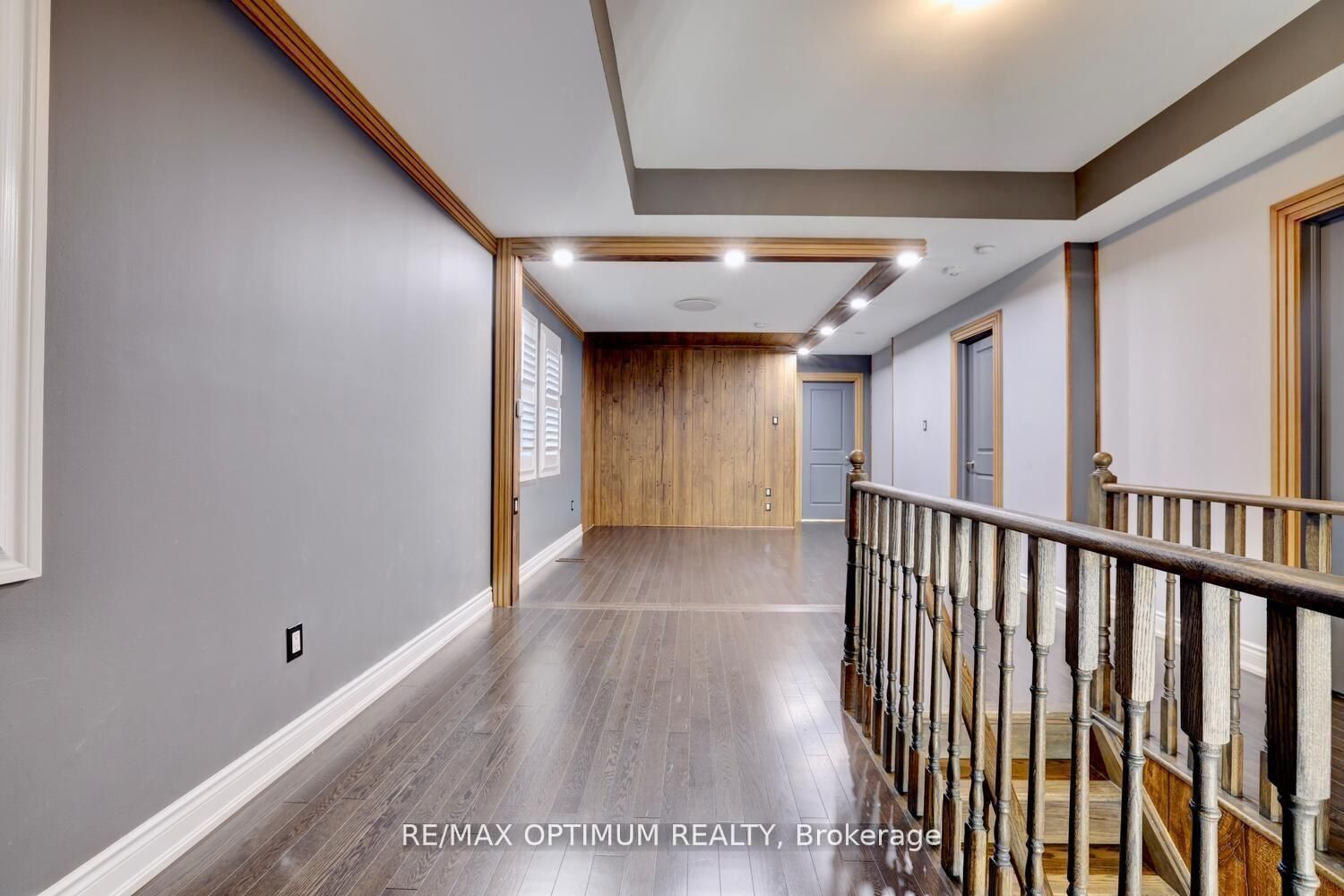 • Spacious open-concept layout with hardwood floors and custom wall paneling.