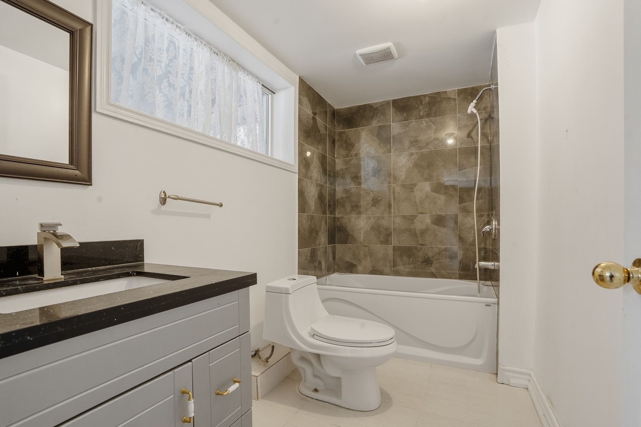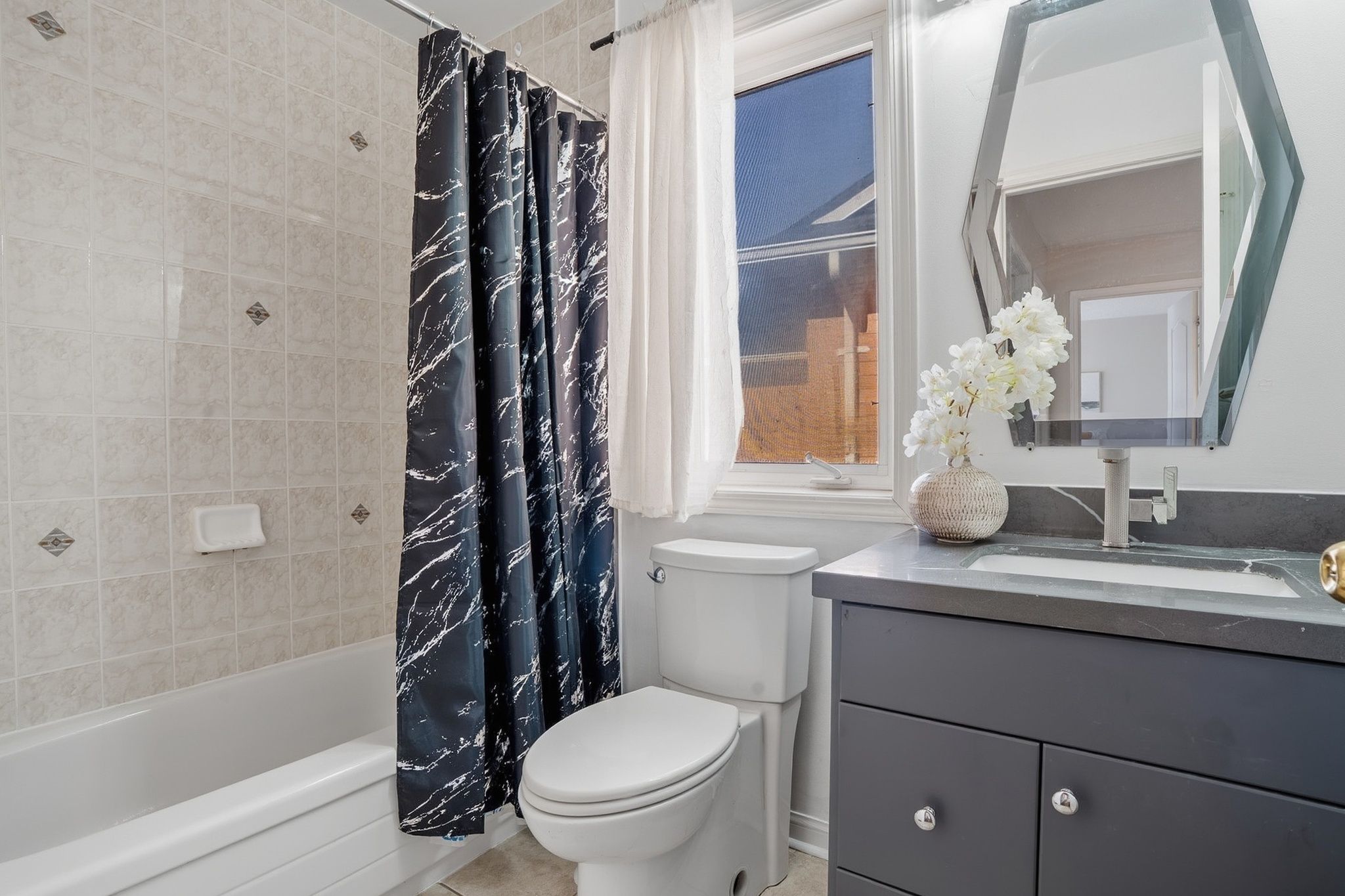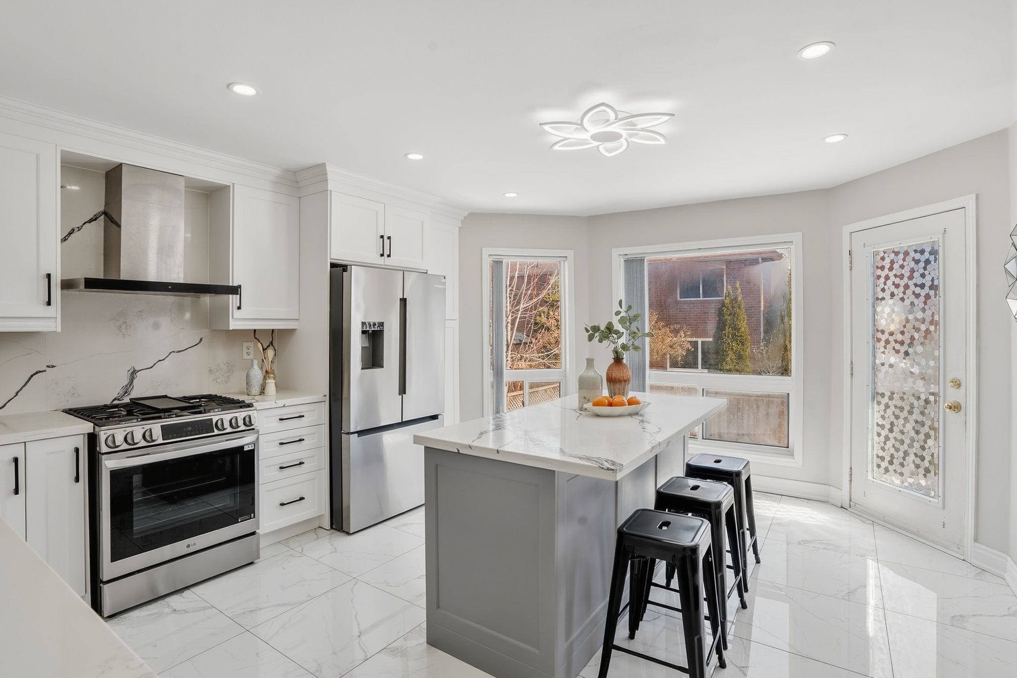 Welcome to 42 panda square - a beautifully renovated detached home in the heart of the rouge community. This move-in-ready 4-bedroom home is upgraded top to bottom with abundant natural light, designer pot lights, and new flooring throughout. The custom chef's kitchen features stainless steel appliances, ample cabinetry, waterfall stone countertops, and a large center island perfect for entertaining. A walk-out leads directly to a private backyard, ideal for summer bbqs. Upstairs offers four spacious bedrooms with generous closet space and a fully renovated main bathroom. Convenient second-floor laundry adds everyday ease. The finished walk-out basement includes a separate entrance, full 3-piece bathroom, second fridge, and additional laundry-perfect for an in-law suite, teens, or potential rental income. Enjoy an interlocked driveway with parking for multiple cars and no sidewalk for added convenience. Roof replaced within the last 5 years. Prime location steps to joyce trimmer park, ttc, toronto zoo, rouge national urban park, and top-rated schools including alvin curling p. S. Just move in and enjoy.