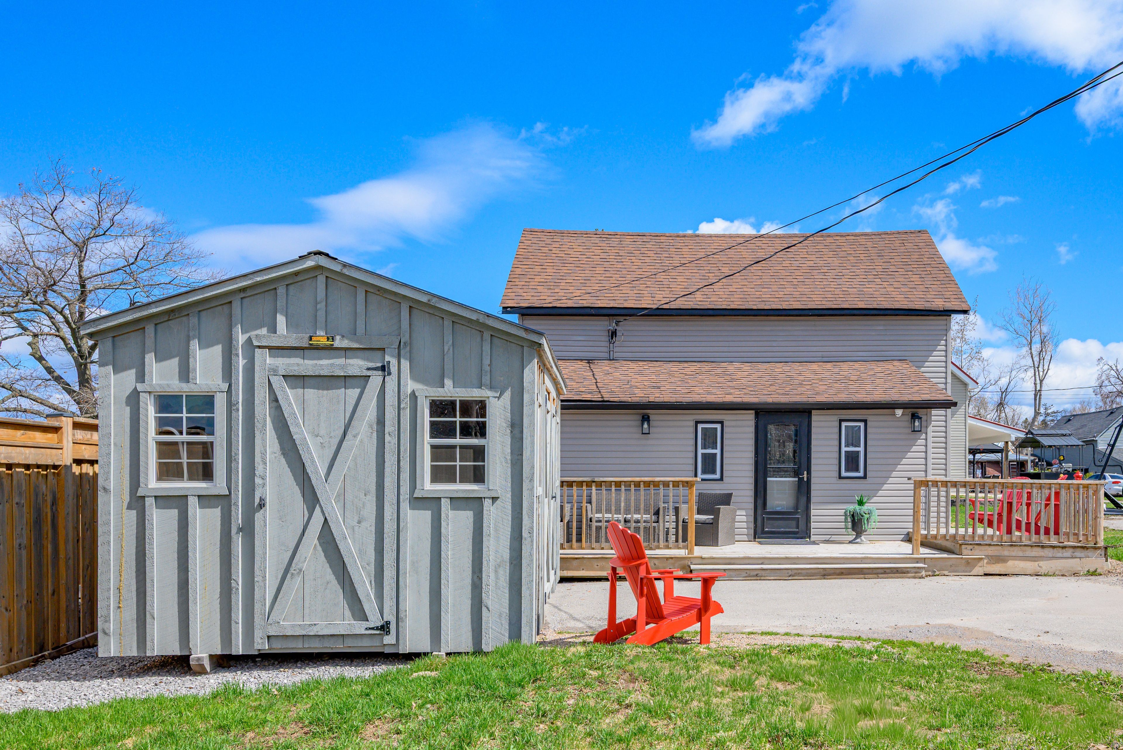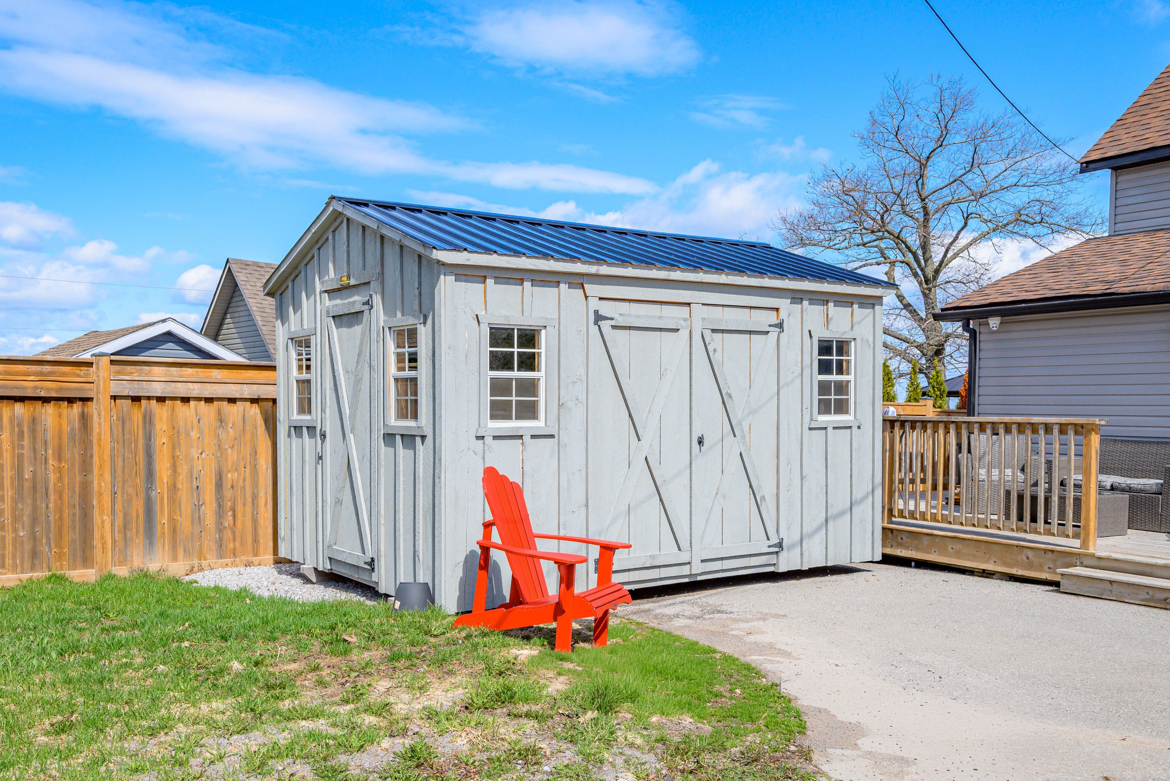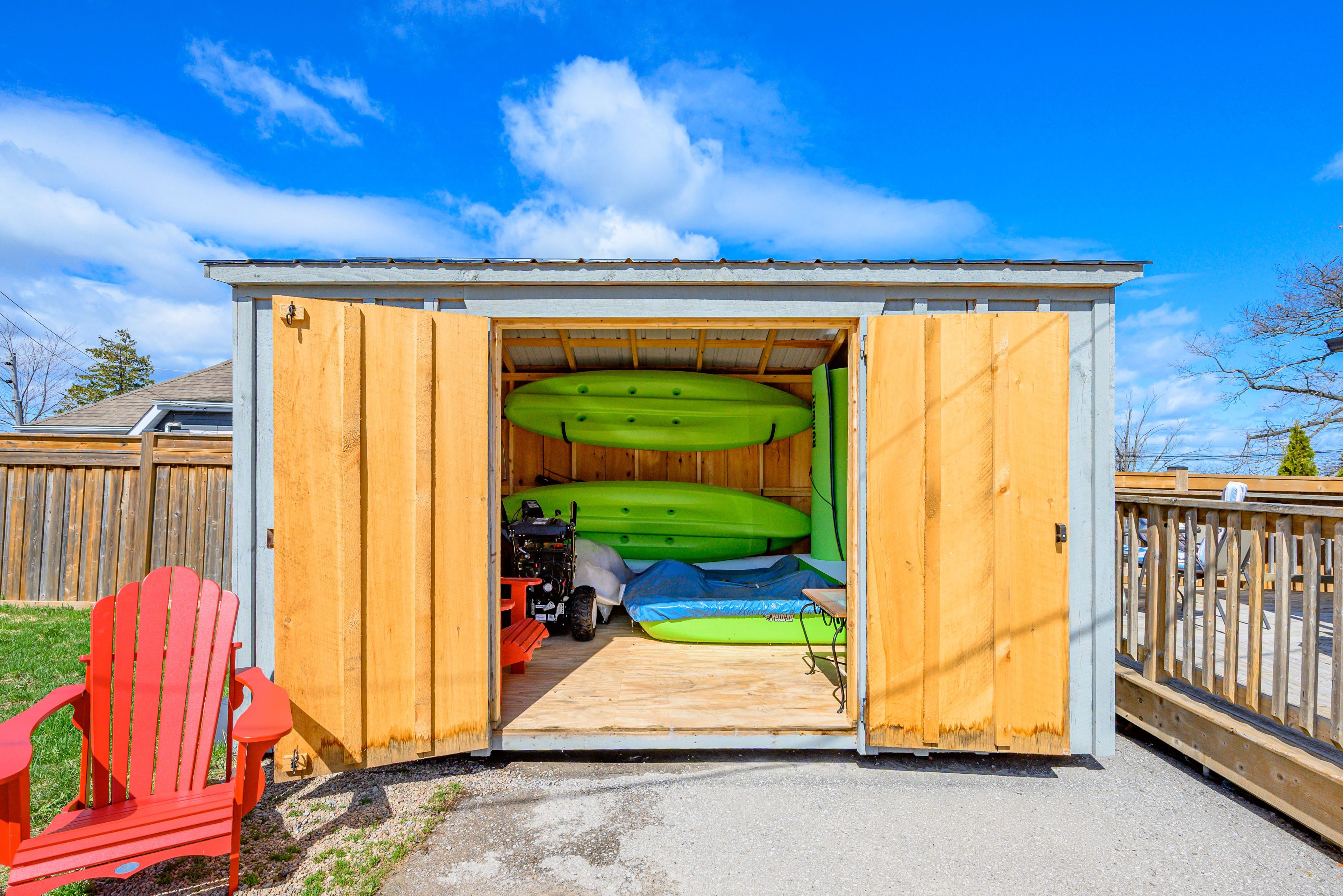 • Fully fenced yard with firepit and storage shed for outdoor gear.