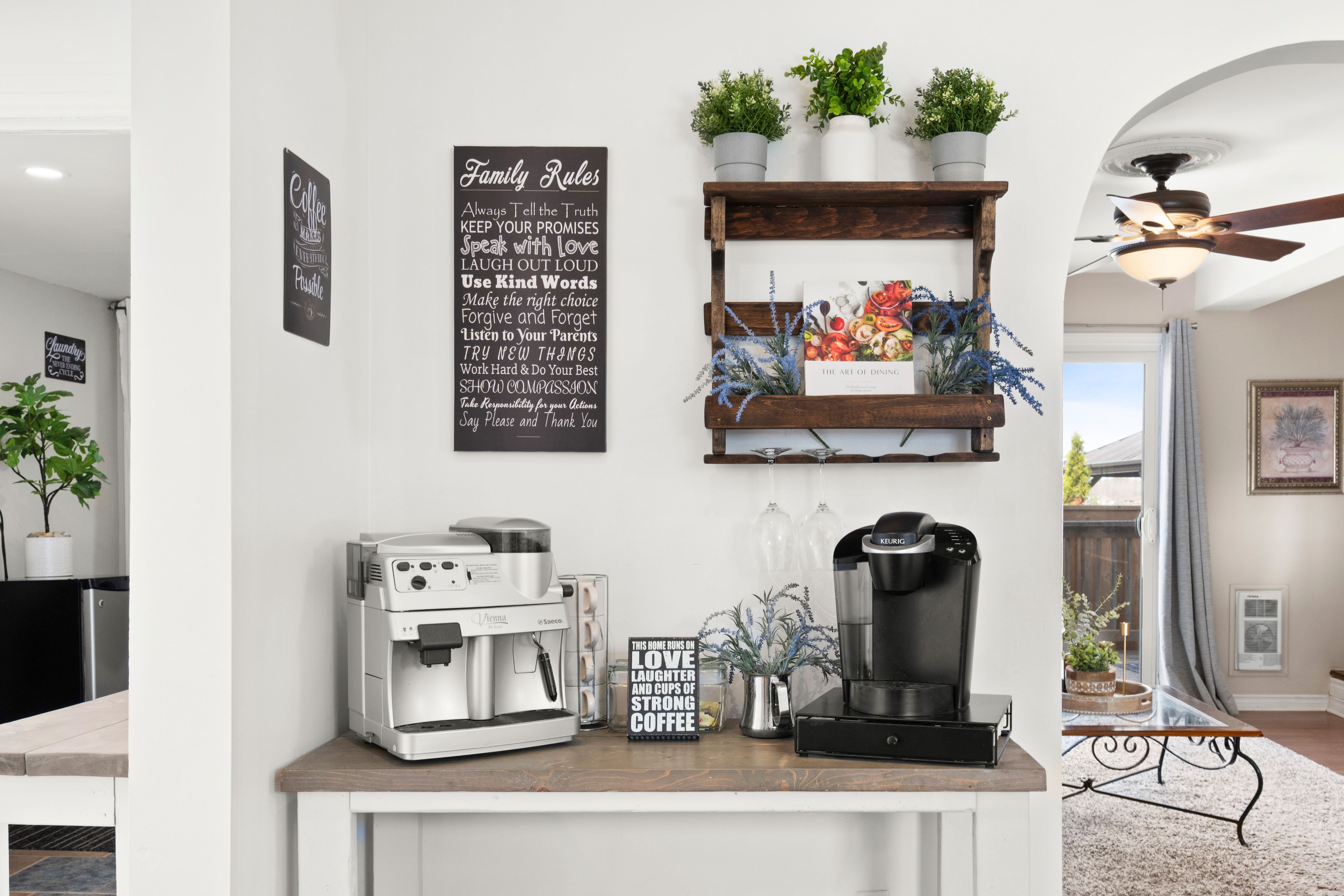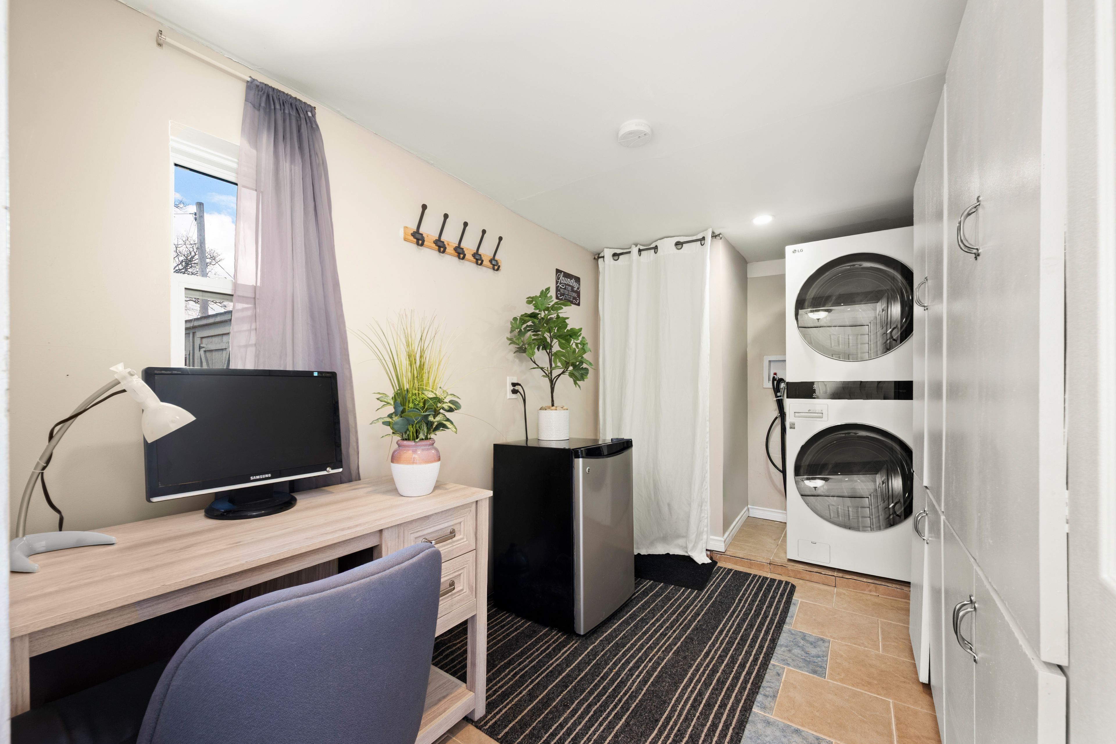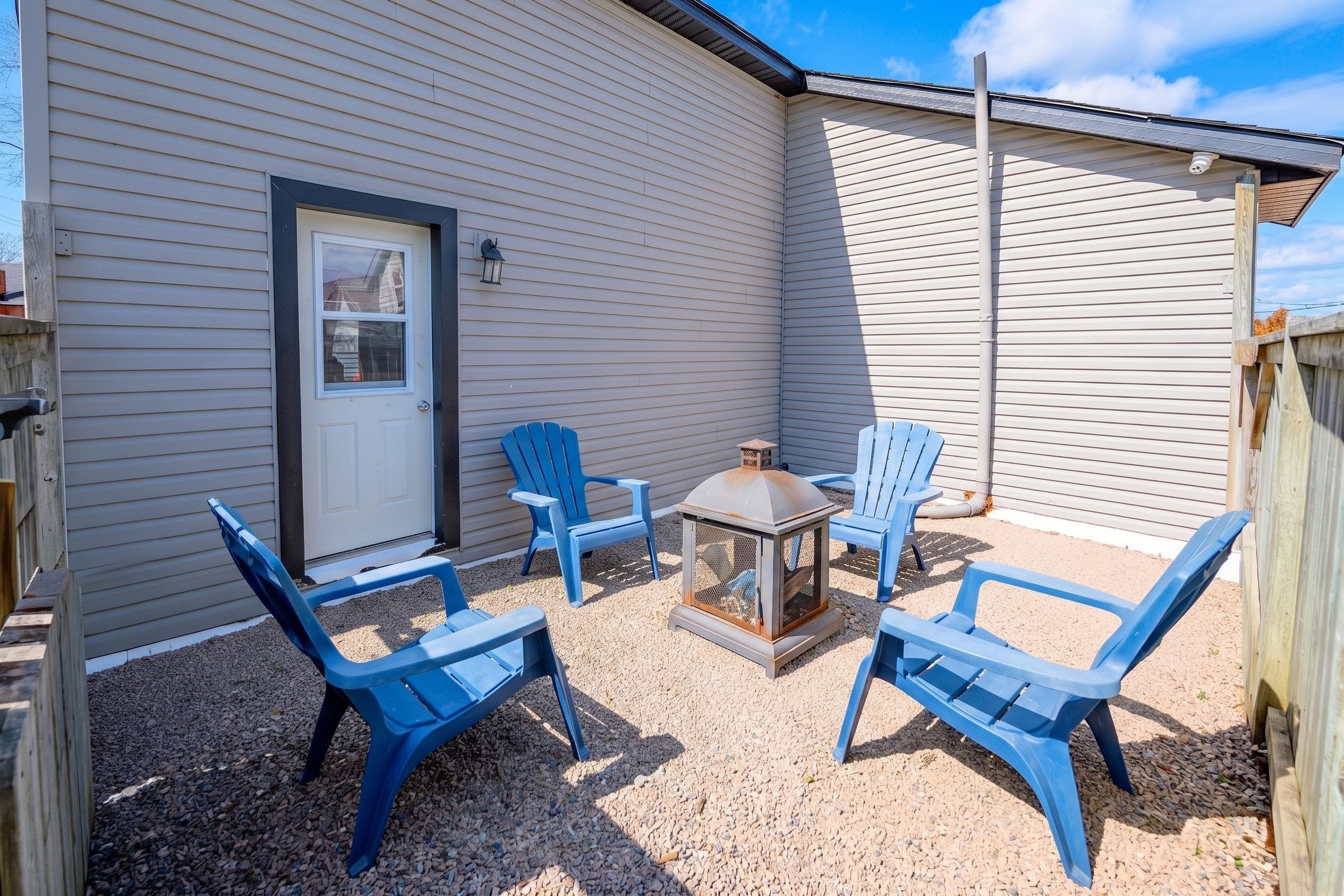 • Fully fenced yard with firepit and storage shed for outdoor gear.