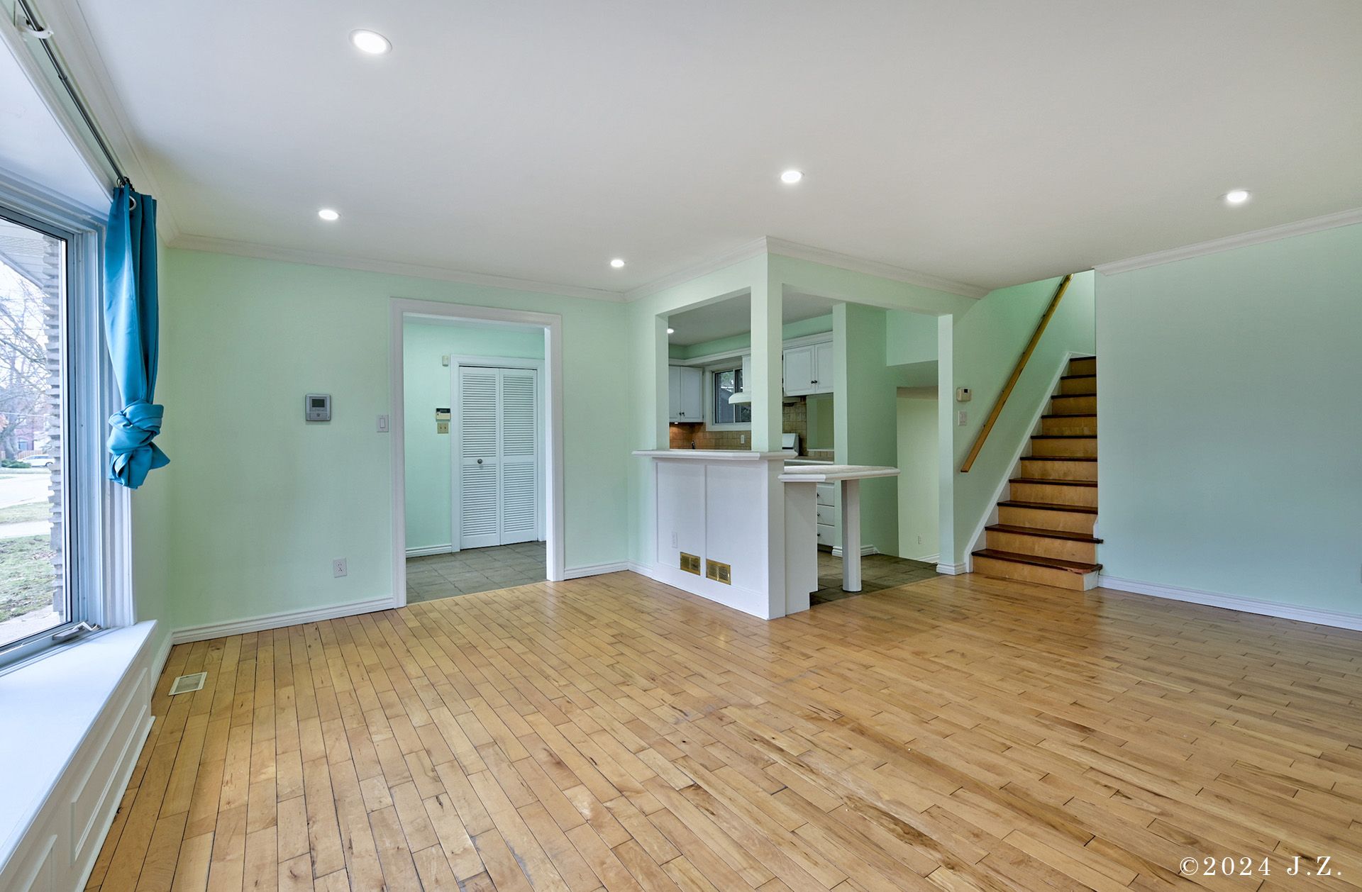 • Hardwood flooring throughout main and upper levels for easy maintenance.