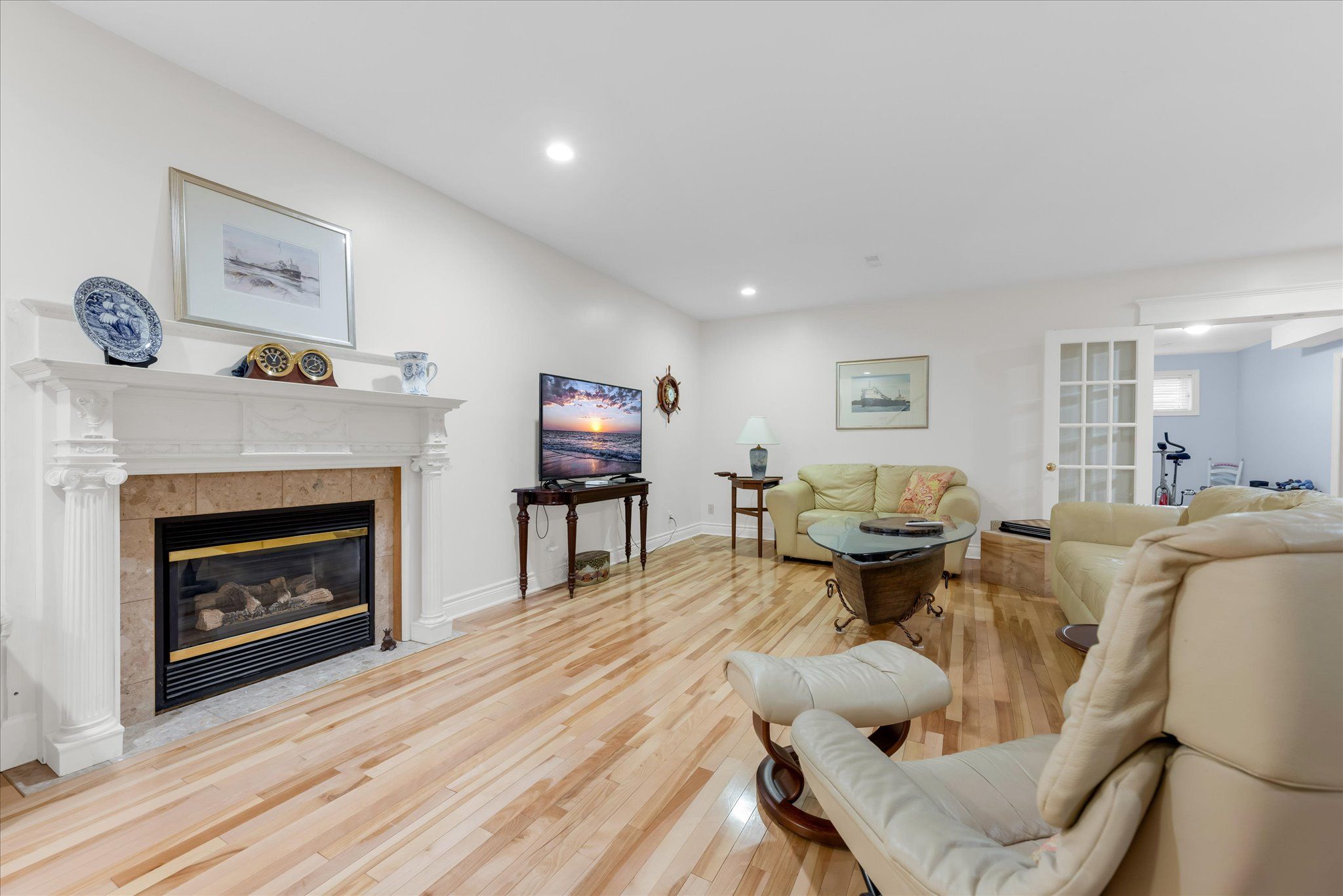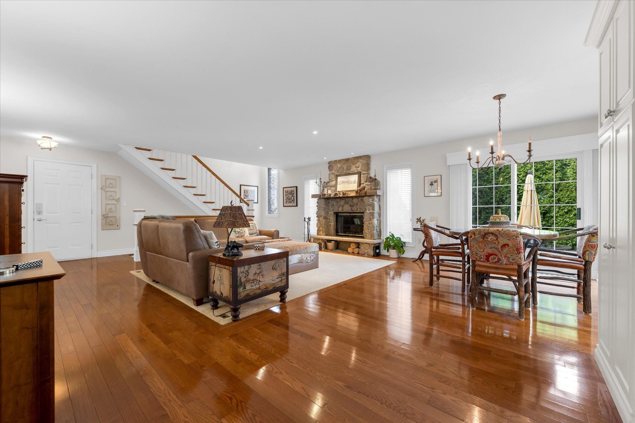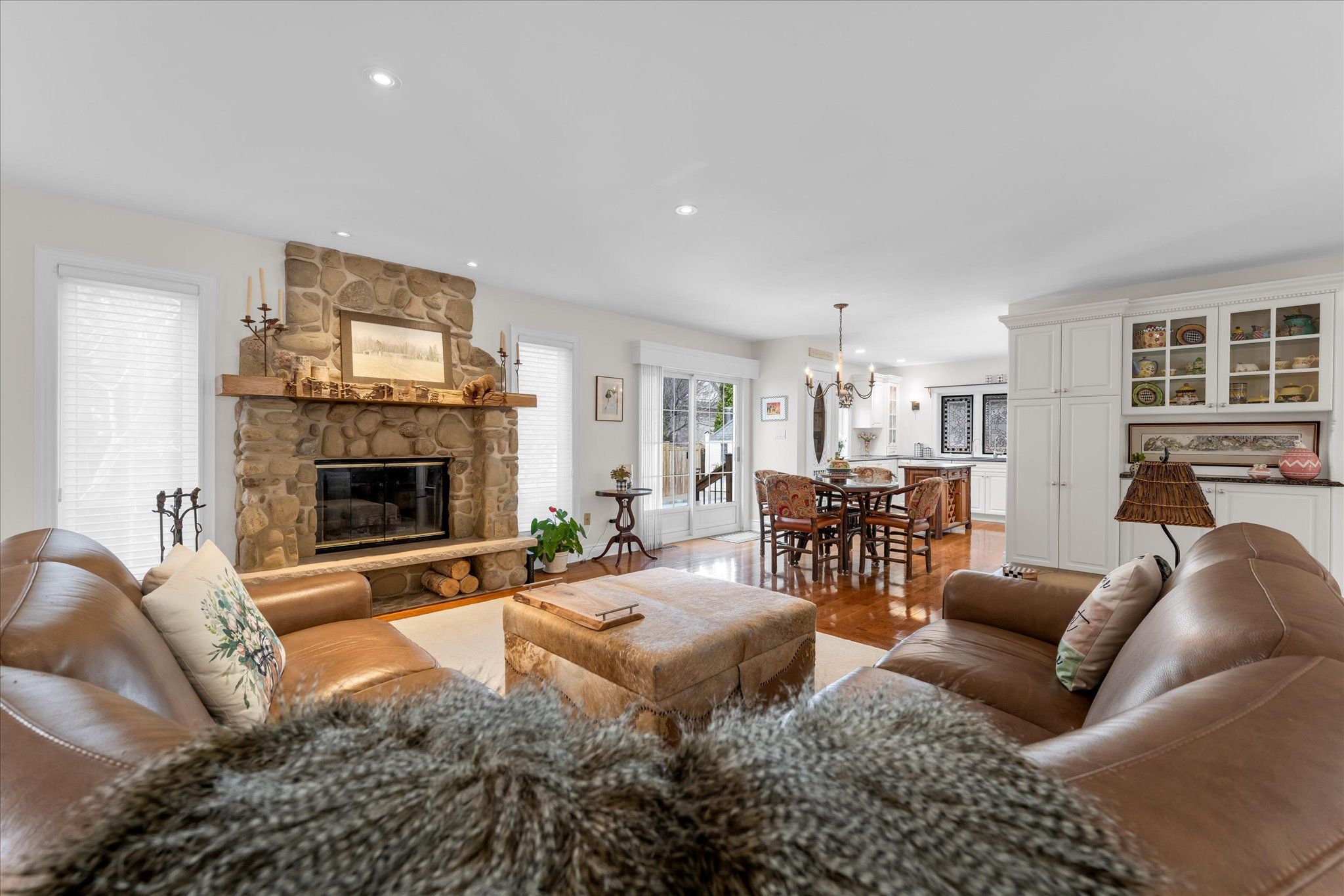 • Spacious great room with a cozy wood-burning fireplace and elegant details.