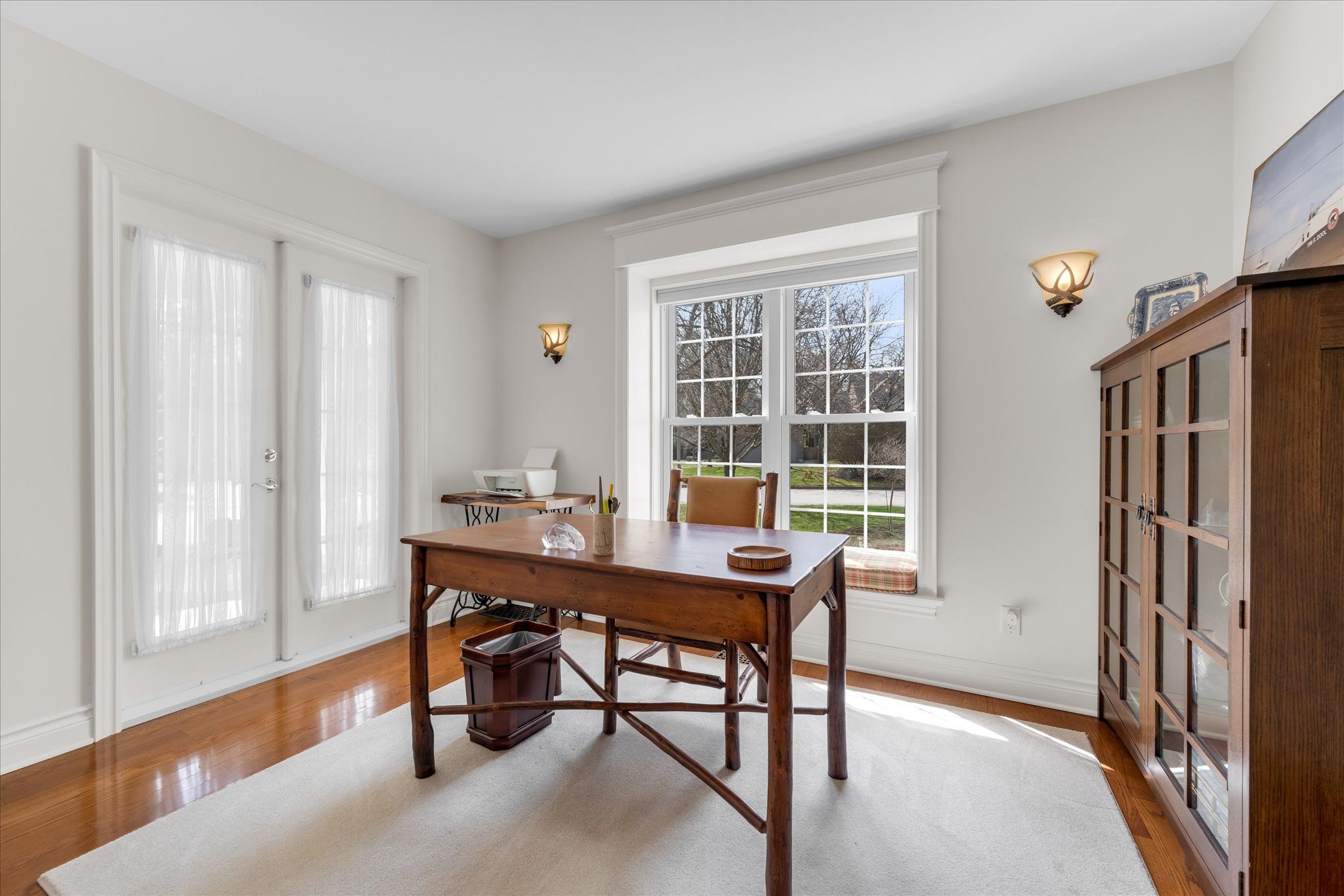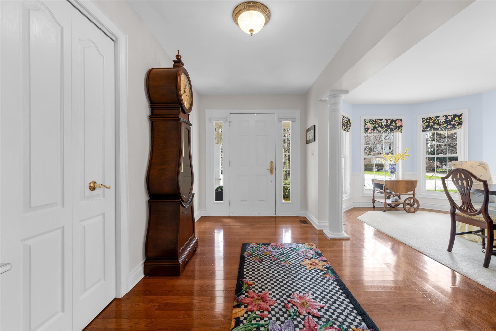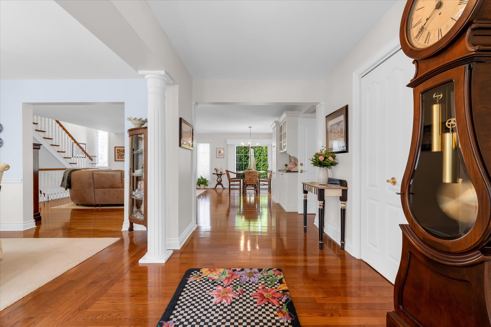 • Spacious great room with a cozy wood-burning fireplace and elegant details.