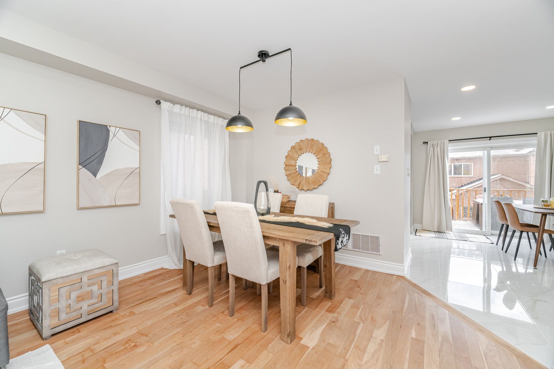 Welcome to this 3+1 detached home with finished w/o basement apartment in the fletcher's meadow area. Combined living and dining room, family room has gas fireplace, hardwood floors throughout, oak staircase. Eat in kitchen with breakfast area and walkout to deck. Basement converted to apartment with 1 bedroom and 1 full bath. Close to schools, public transit and plaza.