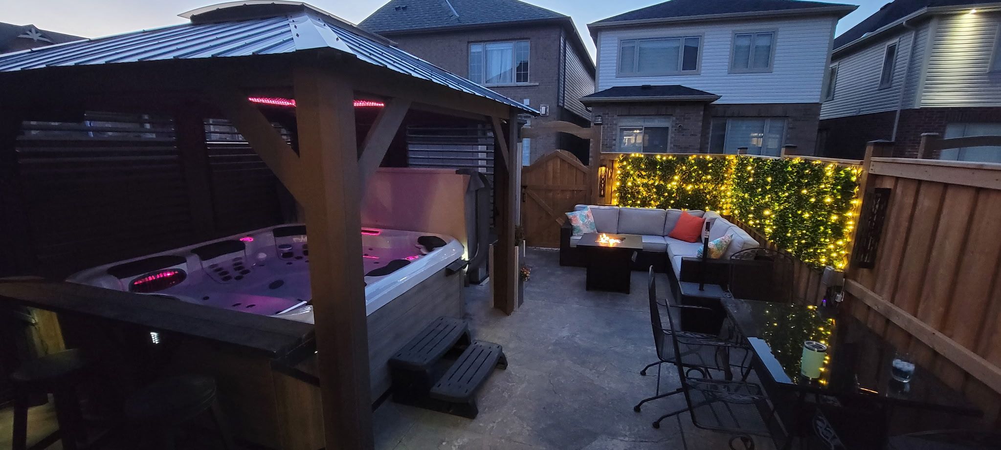 • Fully landscaped backyard with hot tub, gazebo, and BBQ line.