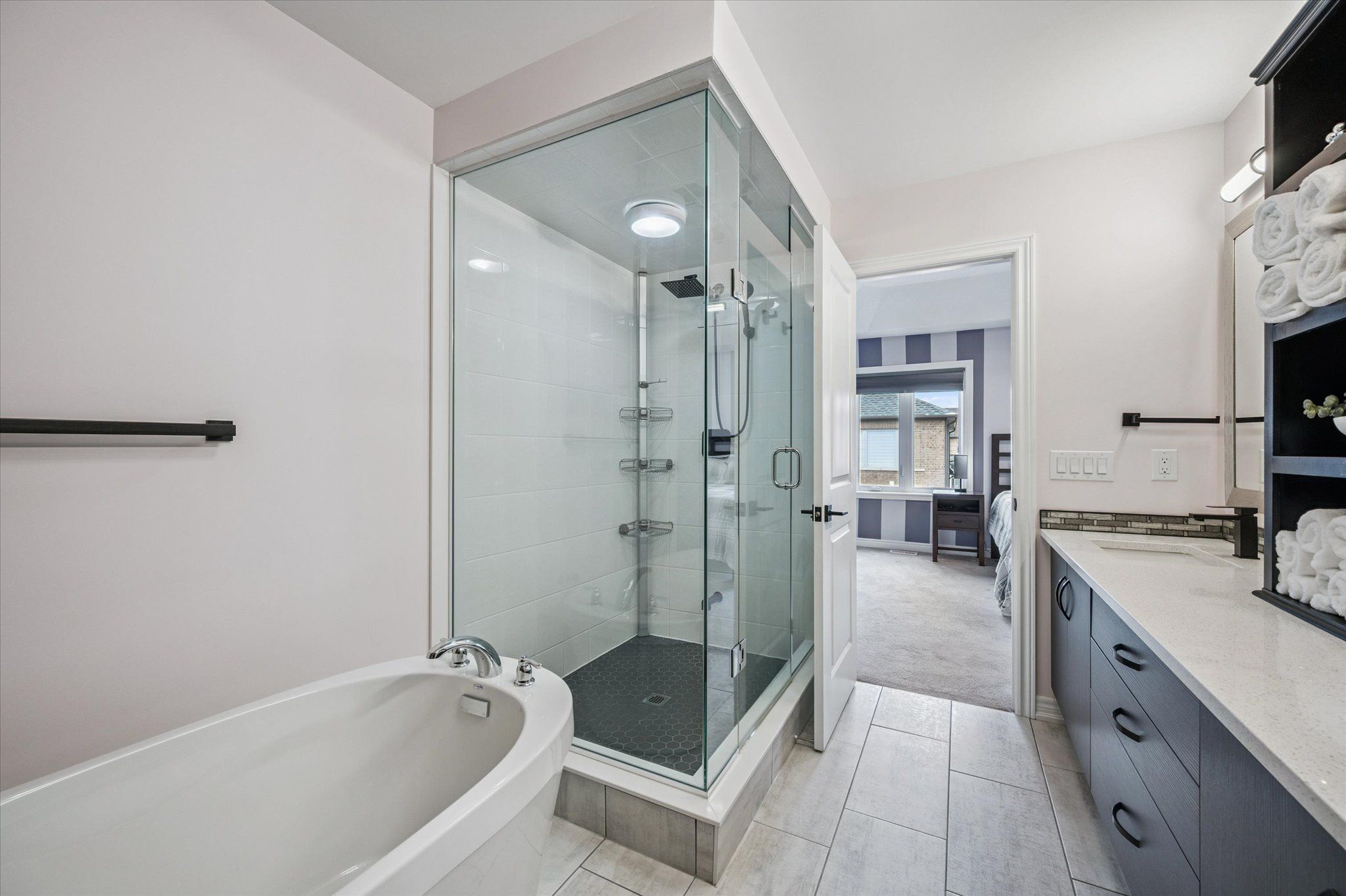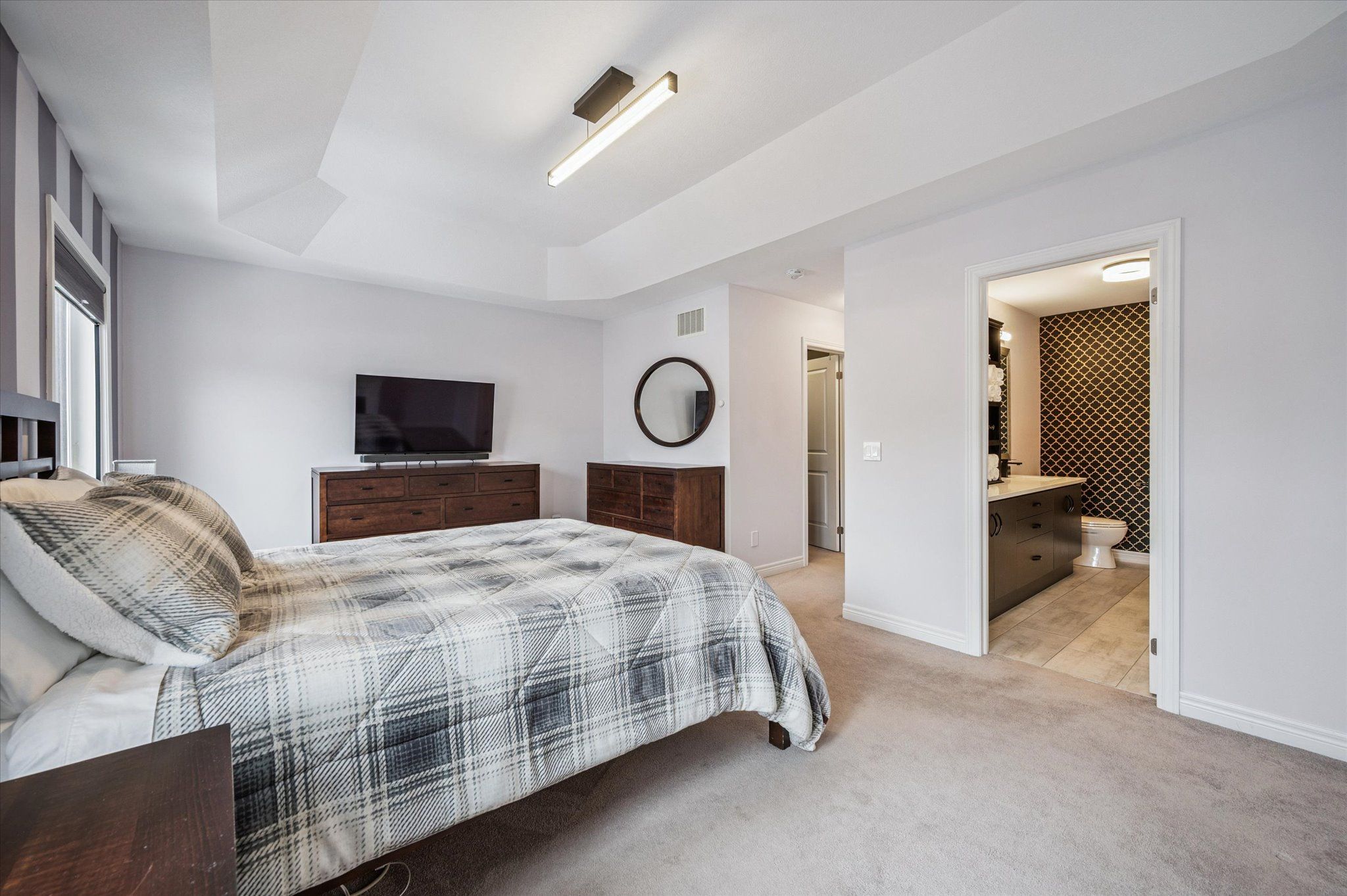 Welcome to 42 stonehill avenue - an impeccably upgraded, move-in ready freehold home offering 1,797 sq ft of thoughtfully designed living space, plus a fully finished basement with an additional 443 sq ft, bringing the total to 2,240 sq ft. With over $40,000 in premium builder upgrades, this home is crafted for modern living. The bright, open-concept layout showcases 9-foot coffered ceilings, refined lighting, sleek pot lights, and rich 5-inch hardwood flooring throughout the main level. The stunning kitchen is complete with an extended island, granite countertops, black stainless steel appliances, induction range, custom built-in pantry, upgraded hood fan, and under-cabinet lighting. Upstairs offers 3 spacious bedrooms, including a primary room with a spa-like ensuite featuring double sinks, quartz counters, a frameless glass shower, and a cozy electric fireplace. The additional bathroom also includes double sinks and quartz finishes. Enjoy the convenience of an upper level laundry room with built-in cabinetry, plus a versatile bedroom with a murphy bed - perfect for guests or a home office. The professionally finished basement by the builder provides additional flexible living space ideal for a rec room, gym, or family area. Step outside to a fully landscaped, low maintenance backyard featuring stamped concrete, a gazebo, premium bullfrog hot tub, shed, gas bbq line, and full fencing - perfect for relaxing or entertaining. This home also comes loaded with smart home features including thermostat, door locks, and ring system. Includes 40 amp ev charger (tesla) in garage and 50 amp service for the hot tub. Ideally located close to the sportsplex, schools, and easy highway access. This home is truly turnkey living at its finest. Its a great home, in a great neighbourhood. Book your tour today!