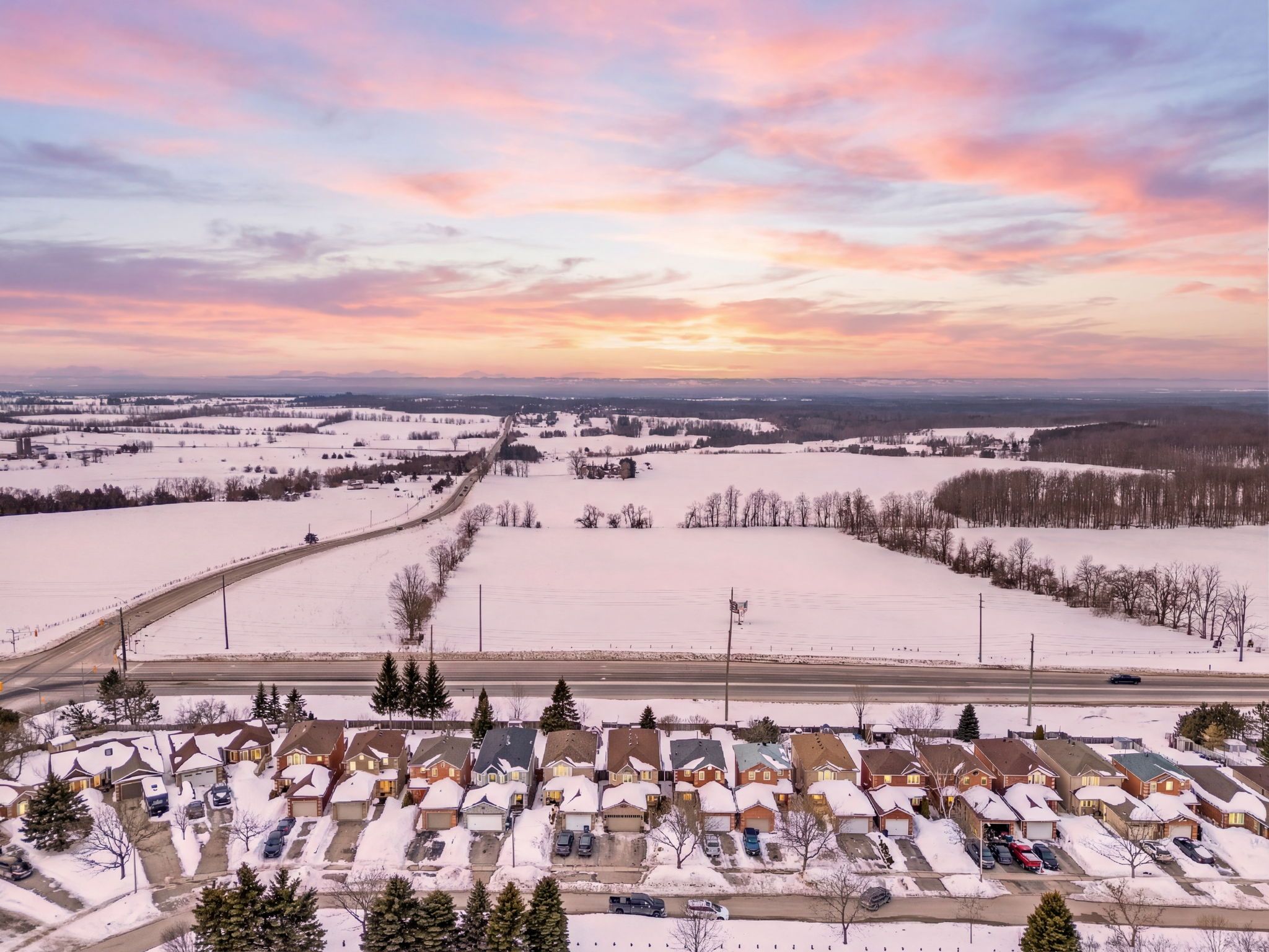 Welcome to 42 sundew drive! A beautifully maintained all-brick two-storey home set in an unmatched location overlooking open farm fields and skyline. Enjoy west-facing sunsets right from your living room or backyard. This spacious home offers 4 bedrooms and an updated main bathroom, with numerous improvements including updated windows, roof, and a new garage door. The finished basement features a large rec room with gas fireplace, abundant storage, and a walkout to the fully fenced backyard. Outside, enjoy mature landscaping and a new shed. Two walkouts that make indoor-outdoor living easy. A rare opportunity to own a home with stunning views in a highly desirable location. Walking distance to both elementary and secondary schools.