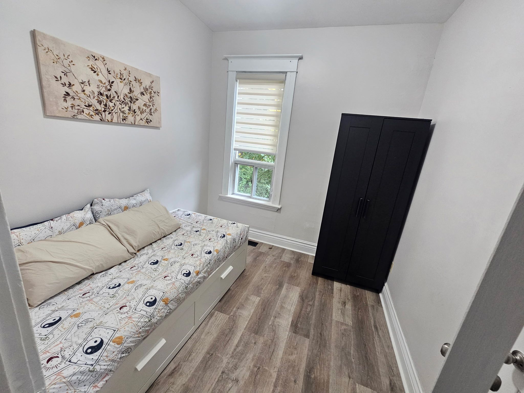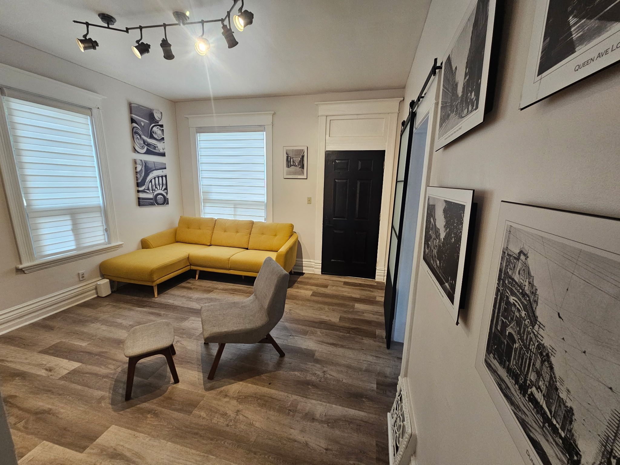 This licensed duplex offers the perfect setup for house hacking - live in one unit and let the rental income offset your mortgage. The spacious 2-bedroom main floor unit is vacant, move-in ready, and freshly updated with brand-new flooring throughout, a stylish accent wall with an electric fireplace, a frosted sliding barn door, and modern window coverings. It even features a new all-in-one washer/dryer and smart thermostat for added convenience. The main floor can also be sold fully furnished - complete with beds, couches, artwork, tv, and a security system - making this a true turnkey option. The upper bachelor unit and garage are already leased, providing steady income from day one. The basement has been professionally interior waterproofed and includes a new sump pump with warranty, offering peace of mind and potential for added value with future finishing. Located on a corner lot with two parking spaces, a large backyard, and close proximity to victoria hospital, transit, and major amenities, this property combines comfort, income potential, and smart ownership all in one.