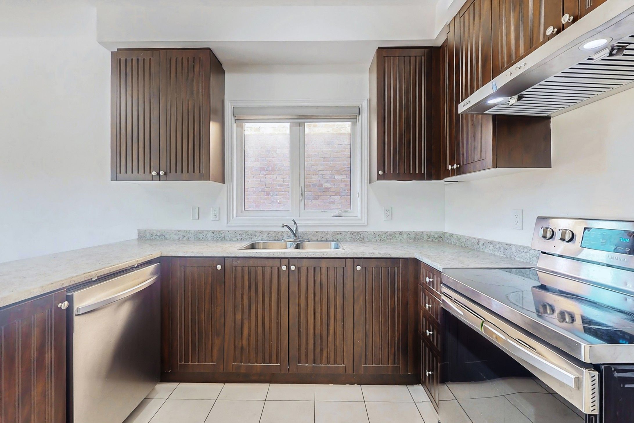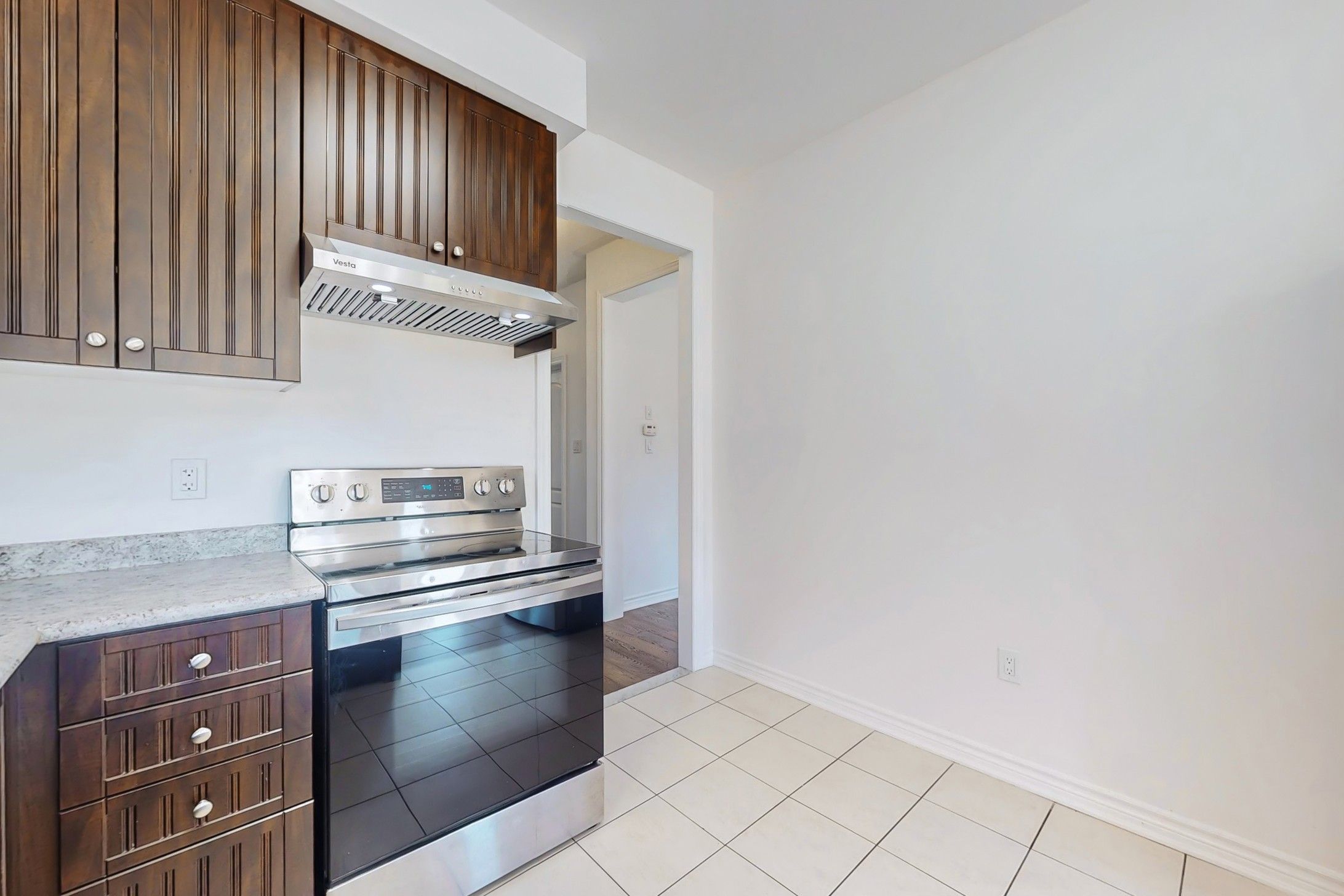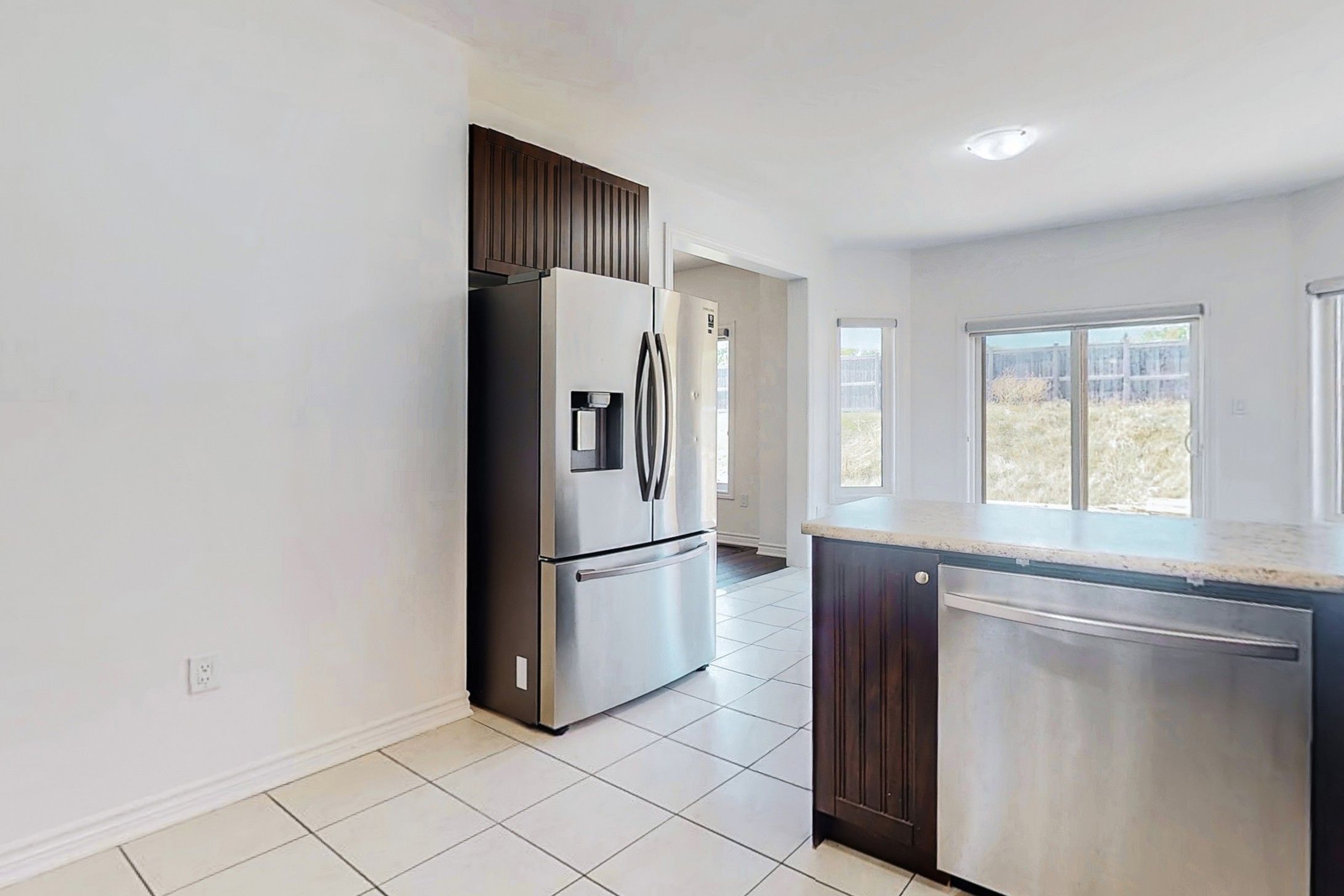 • Sun-filled kitchen with stainless steel appliances and deck access.