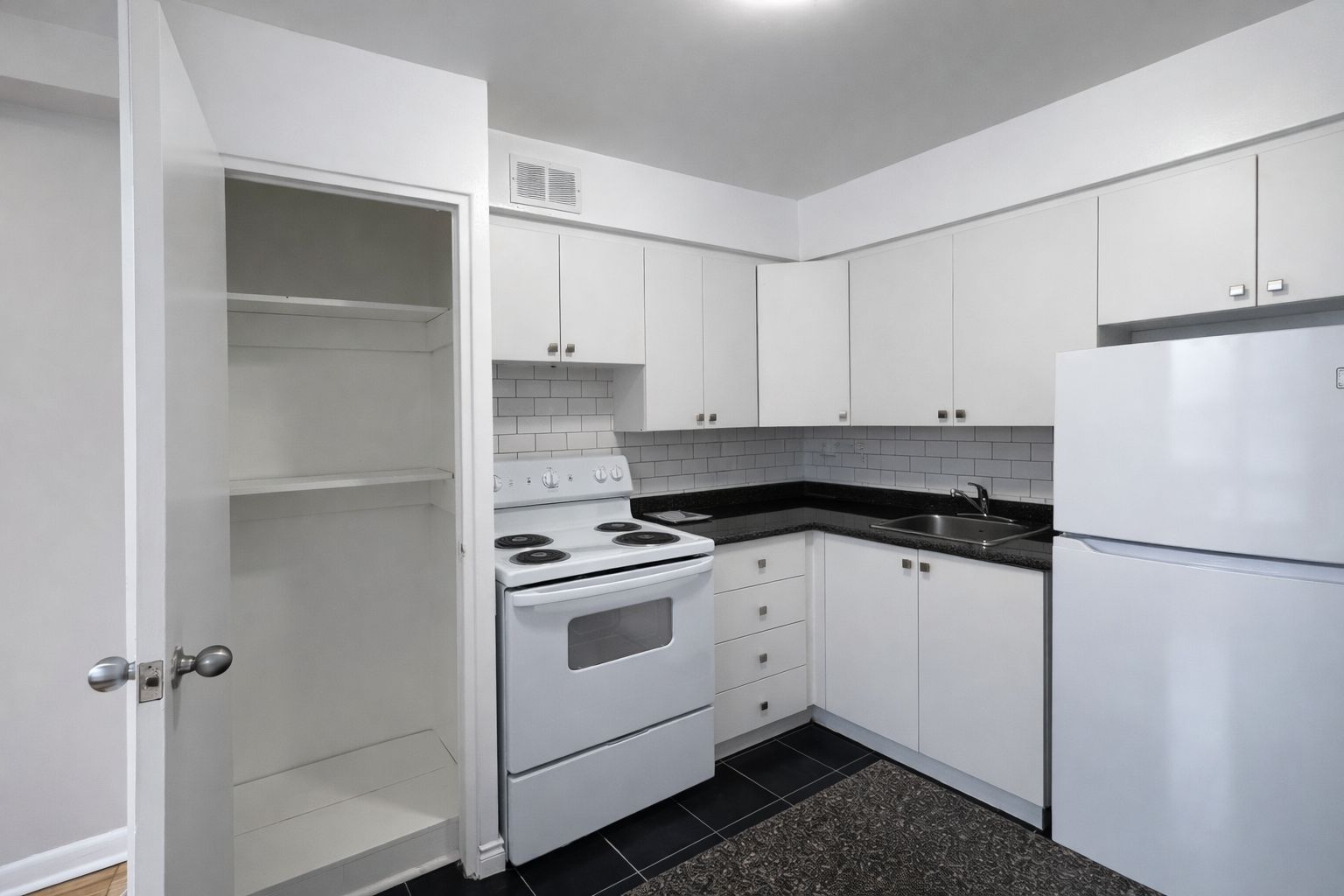 • Bright open-concept kitchen and living area with carpet-free flooring.