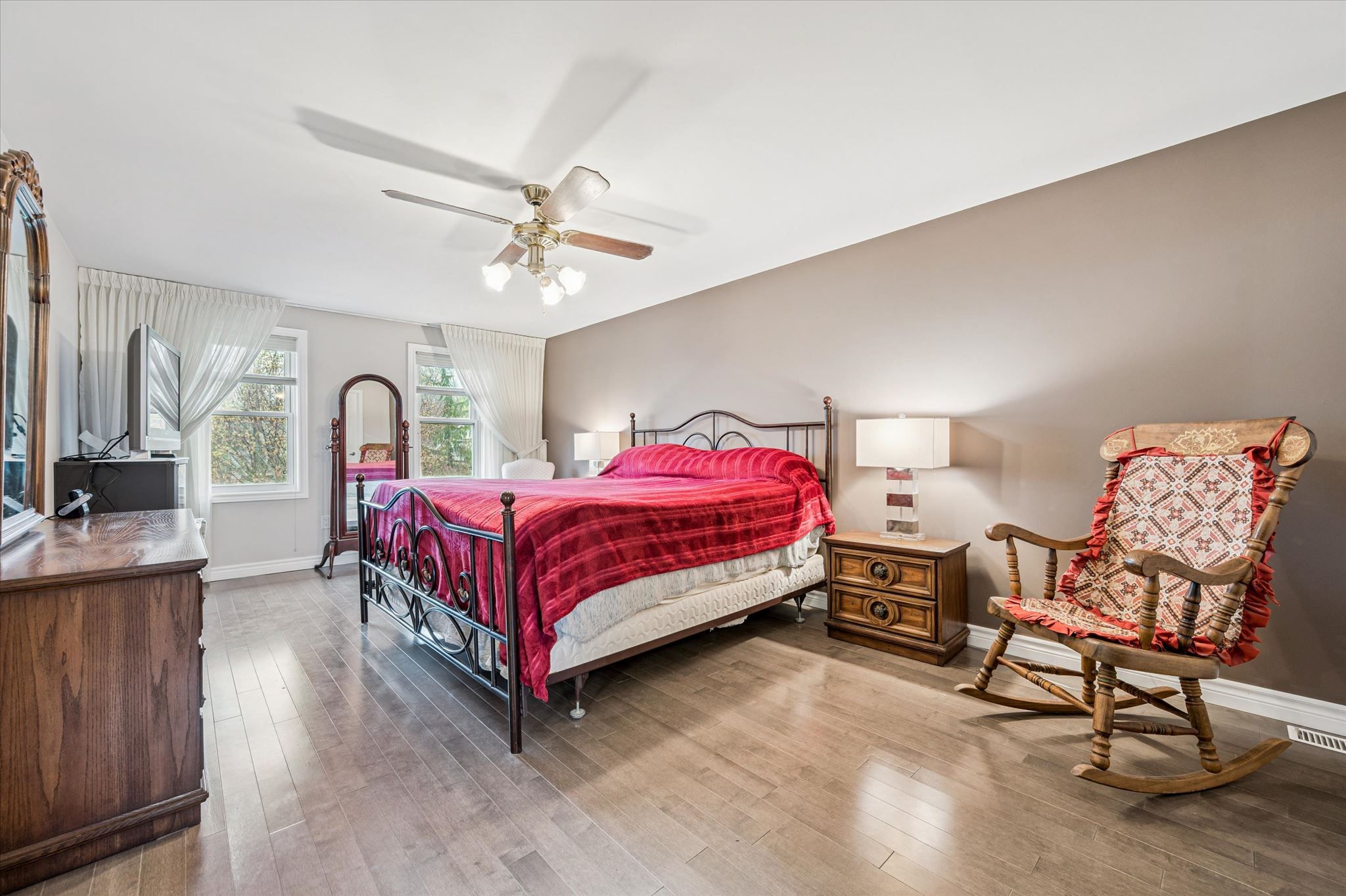 Welcome to the desirable forest heights neighbourhood. This well-maintained, all-brick two-storey home is set on a quiet, tree-lined street close to parks and green space. Pride of ownership is evident throughout. The home offers 4 bedrooms, 4 bathrooms, and a double car garage-ideal for a growing family. The main floor features a spacious entry, separate living and dining rooms, an oak kitchen with a bright dinette, and a comfortable family room with a gas fireplace. There's also a convenient laundry/mudroom and a powder room on this level. From the family room, step out to a private, fully fenced backyard with a large cedar deck, mature trees, and a garden shed. Upstairs, a curved staircase leads to four good-sized bedrooms and a main bathroom. The primary bedroom includes a walk-in closet and a private ensuite with a corner tub. Hardwood flooring runs throughout the upper levels. The finished basement adds extra living space with a large recreation room, gas fireplace, wet bar, exercise area, bathroom, and a workshop/storage room. With direct access from the garage, there's potential for an in-law suite or rental setup. Key updates have been completed in recent years for added peace of mind. Conveniently located near the forest heights community trail, schools, shopping, and major routes including the expressway and highway 401.