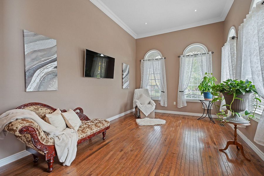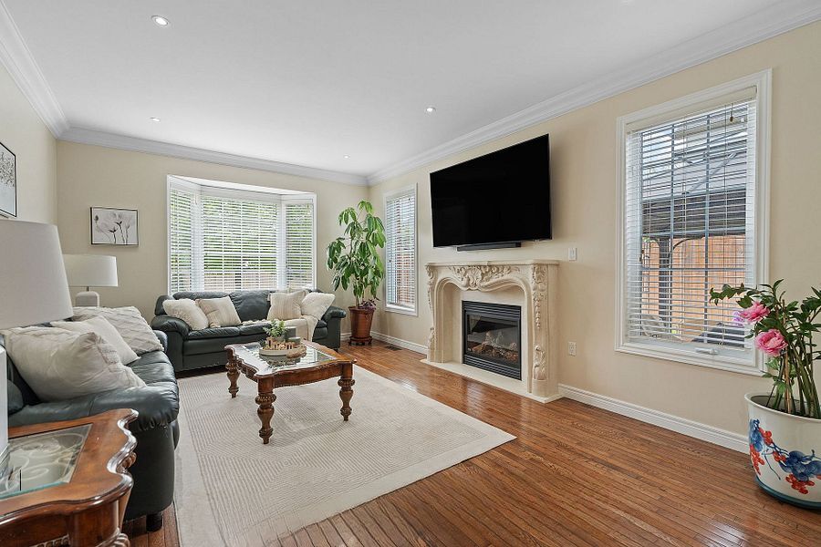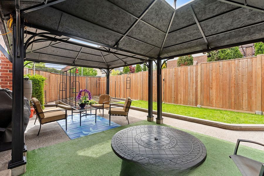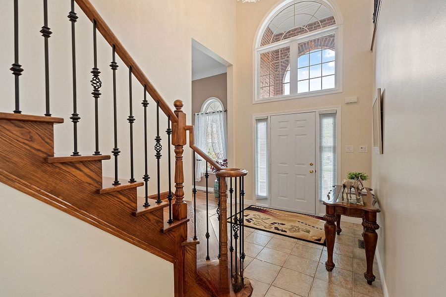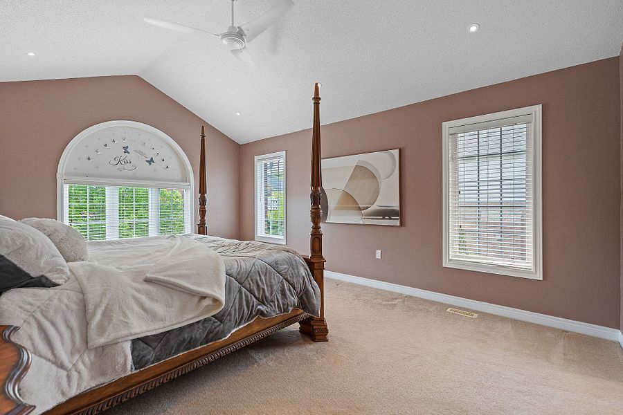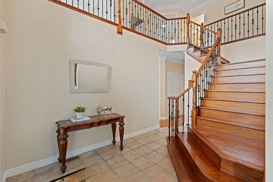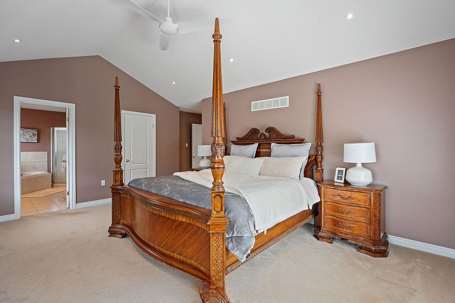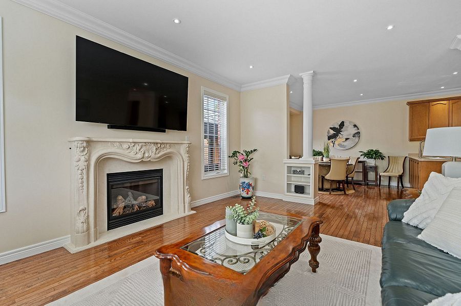 Located in the highly desirable vineyard valley neighborhood, this stunning 2-story built by the award-winning marz homes in 2004, offers over 4000 sqft of impressive living space. Greeted by a grand stone and brick facade, showcasing exceptional curb appeal with a charming wrap-around porch and beautifully landscaped stone flower beds. Step inside to discover an inviting foyer with soaring 18-ft ceilings and a striking crystal chandelier that sets a tone of sophistication. The great room features a 12-ft ceiling and oversized windows that flood the space with natural light. The rest of the main level boasts 9 ft ceilings, creating an airy and inviting atmosphere. Enjoy cozy evenings by the gas fireplace in the family room or host memorable dinners in the large formal dining room. The kitchen is equipped with a corner pantry. An adjoining breakfast area that flows into the living and onto the patio. Venture upstairs to find 3 generous bedrooms, each with a walk-in closet, and a bright loft that overlooks the foyer, which could easily be converted into a 4th bedroom. The primary bedroom features a vaulted ceiling, while the ensuite boasts double sinks, a corner tub, and a separate shower. A 2nd bath and a conveniently located laundry room complete the upper floor. The basement offers in-law potential with a separate entrance from the garage. It features a spacious rec room with a fireplace, a spare bedroom, and roughed-in bath and wet bar. Step outside to your private, fully fenced yard, which includes a double gazebo covered concrete patio, and a garden area perfect for relaxation. Freshly painted, central vac and 2018 steel roof from metstar. This prime location provides easy access to farmers markets, lake ontario, and a wealth of parks and walking trails. Explore nearby restaurants and charming towns along the niagara escarpment. Families will appreciate the proximity to the ymca, schools and hospitals, with a quick drive to downtown and just a minute to the qew.