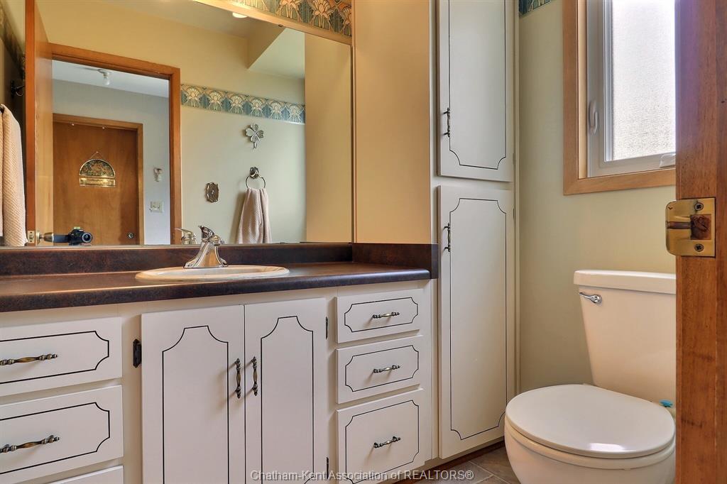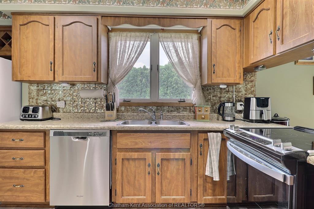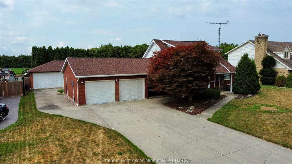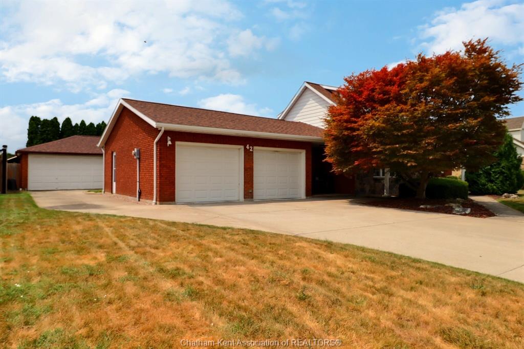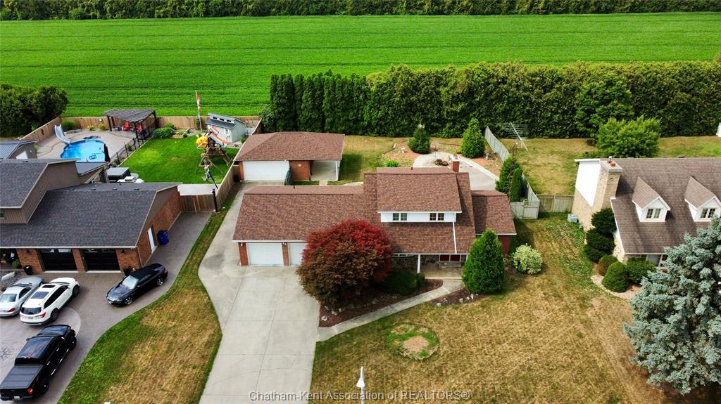 Nestled on a generous lot in south west chatham, this spacious two-storey home offers the perfect blend of rural tranquility and modern convenience. With a thoughtful layout and abundant living space across three levels, it’s ideal for families, professionals, or anyone seeking room to grow. The main floor welcomes you with a warm and inviting atmosphere, featuring a large eat-in kitchen anchored by a cozy gas fireplace—perfect for casual meals and family gatherings. Adjacent to the kitchen, the living room and den provide flexible spaces for entertaining, relaxing, or working from home. A convenient two-piece bath adds functionality, while the main floor also boasts a private bedroom complete with its own ensuite bath, offering comfort and accessibility for guests or multi-generational living. Upstairs, you’ll find two additional bedrooms and a full three-piece bath, providing ample space for children, visitors, or a home office setup. Natural light fills each room, enhancing the sense of openness and comfort throughout. The full lower level expands the living area even further, featuring a spacious recreation room with a walkout to the attached double car garage. Whether you envision a home theatre, gym, or playroom, this versatile space is ready to adapt to your lifestyle. Also on the lower level is a dedicated office space or added extra storage. Outside, the property continues to impress with a separate detached double car garage, offering additional storage, workshop potential, or parking for extra vehicles. The expansive lot provides plenty of room for outdoor activities, gardening, or simply enjoying the peaceful surroundings. Located just minutes from everything in chatham, this home offers the best of both worlds: a private, spacious retreat with easy access to schools, shopping, and city amenities. With its flexible layout, multiple garage options, and serene setting, this property is a rare find that’s ready to welcome its next chapter.