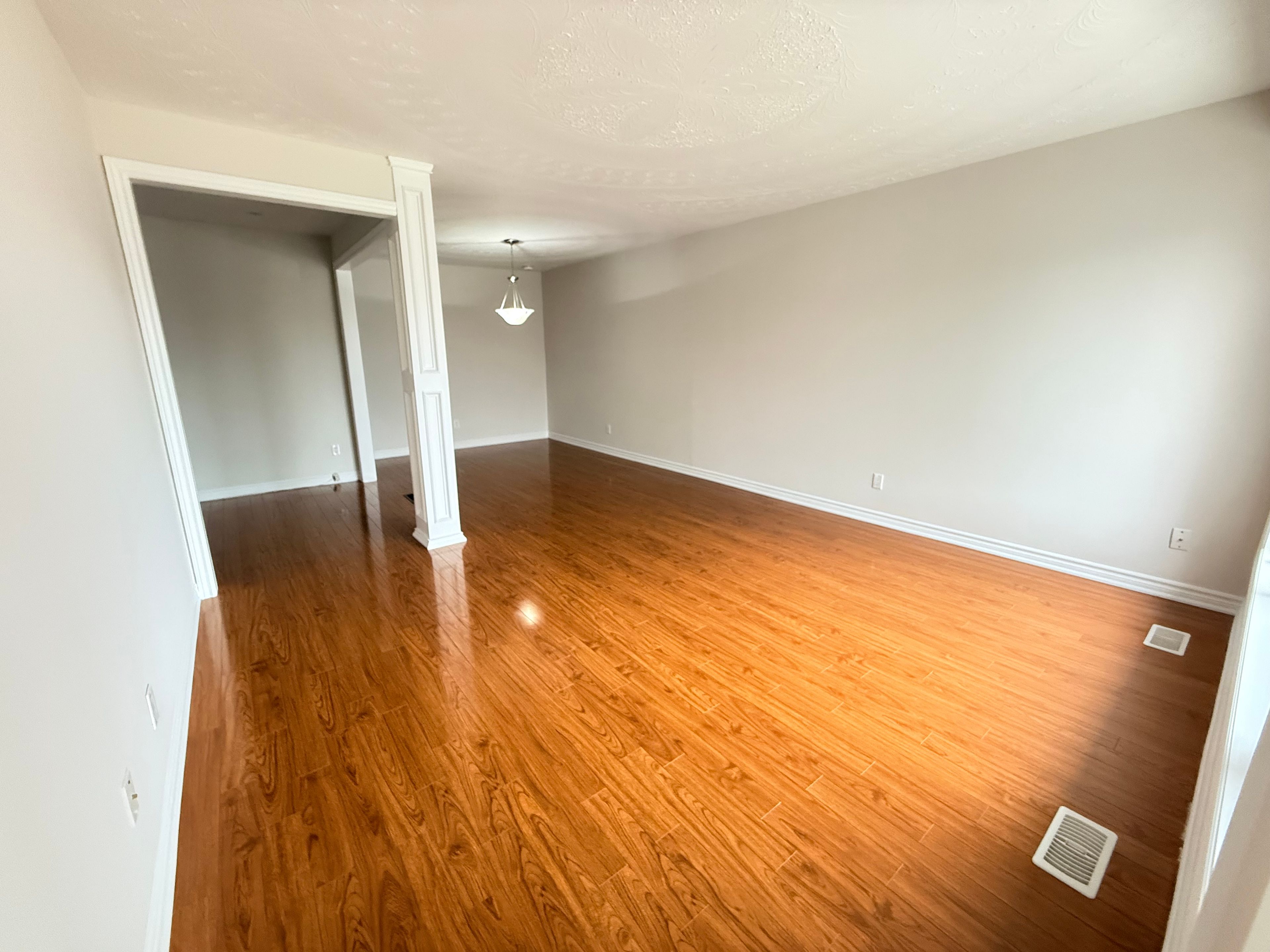 • Durable hardwood and laminate flooring throughout for easy maintenance.