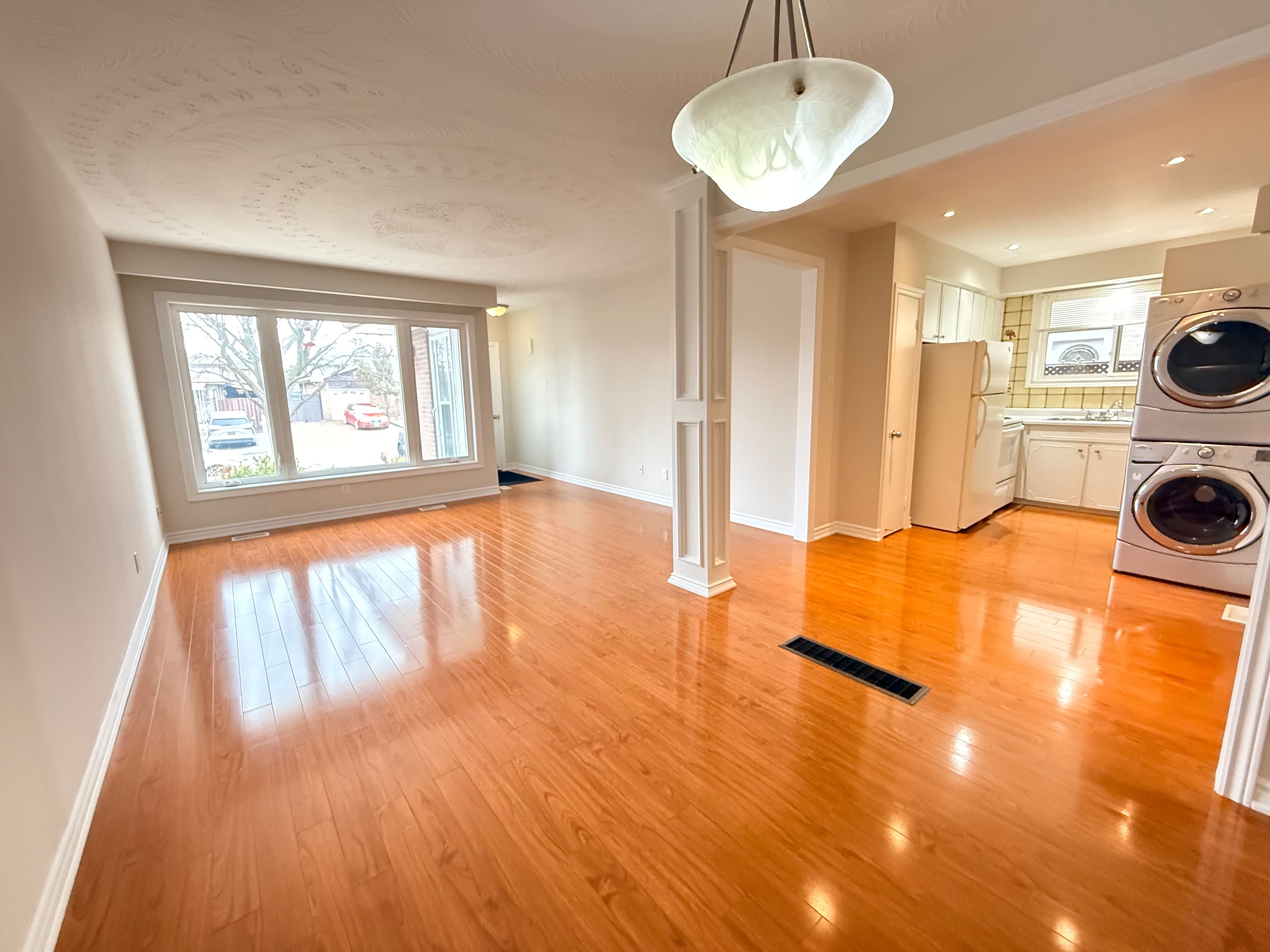 Freshly painted and move-in ready, this spacious four-level semi-detached home is a fantastic investment opportunity featuring a legal basement apartment. The bright main floor offers an inviting living and dining area, complemented by convenient main floor laundry. A separate side entrance leads to a well-appointed 2-bedroom in-law suite-ideal for rental income or extended family living. The home features hardwood and laminate flooring throughout, adding both style and durability. Enjoy ample parking with a driveway that accommodates up to 4 vehicles, plus a single-car garage. The exterior is enhanced with french curbs, along with a cemented front porch and walkway for added curb appeal. This versatile property offers exceptional flexibility for investors or multi-generational families alike.