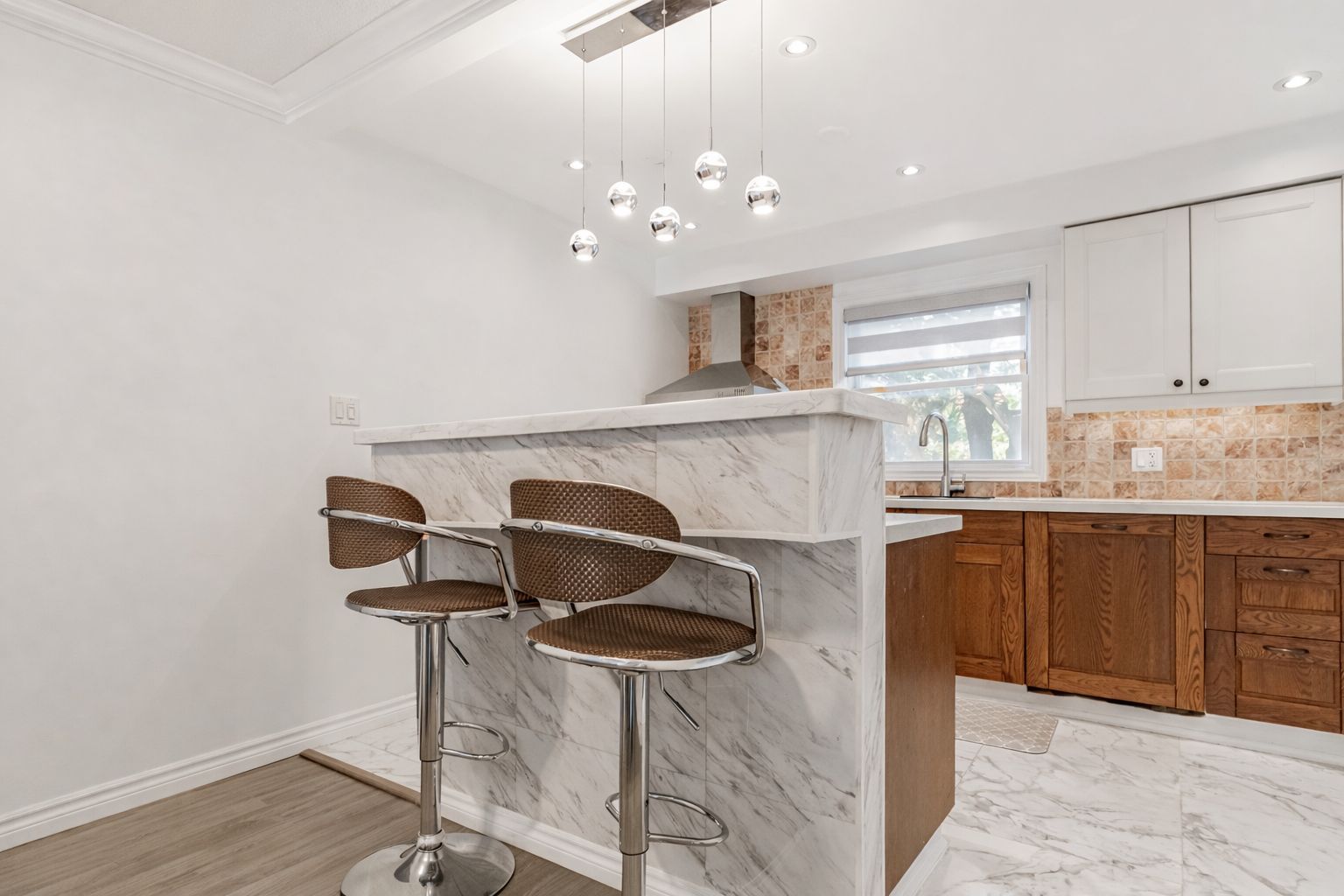 Stunning fully renovated end-unit townhome in high-demand german mills! Bright & spacious layout feels like a semi-detached with extra windows & abundant natural light. Functional open-concept design with ceramic flooring in kitchen & hallways. Including a spacious primary suite with a walk-in closet and a 4-piece ensuite. Open-concept kitchen featuring granite centre island, perfect for everyday living & entertaining. Modern 4 bathrooms. Including brand new blinds throughout, plus 3 motorized blinds for added convenience. Custom staircase chandelier with dual lighting modes (bright & ambient blue). Finished lower-level family room with walk-out to private backyard, plus an added bathroom for extra convenience. Backs onto park-like setting with direct access to green space featuring outdoor entertaining area & playground. Quiet, nature-filled community surrounded by mature trees. Enjoy exclusive residents-only outdoor pool for a private, resort-style experience. Garage with direct entry. Prime location close to top-ranked schools including german mills public school, thornlea secondary school and st. Michael's academy catholic school, st. Robert catholic high school. Transit, hwy 404/407 & shopping. Rare opportunity to own a luxury- finished end unit townhome in a prestigious german mills neighbourhood - move in ready! **some photos are virtually staged**