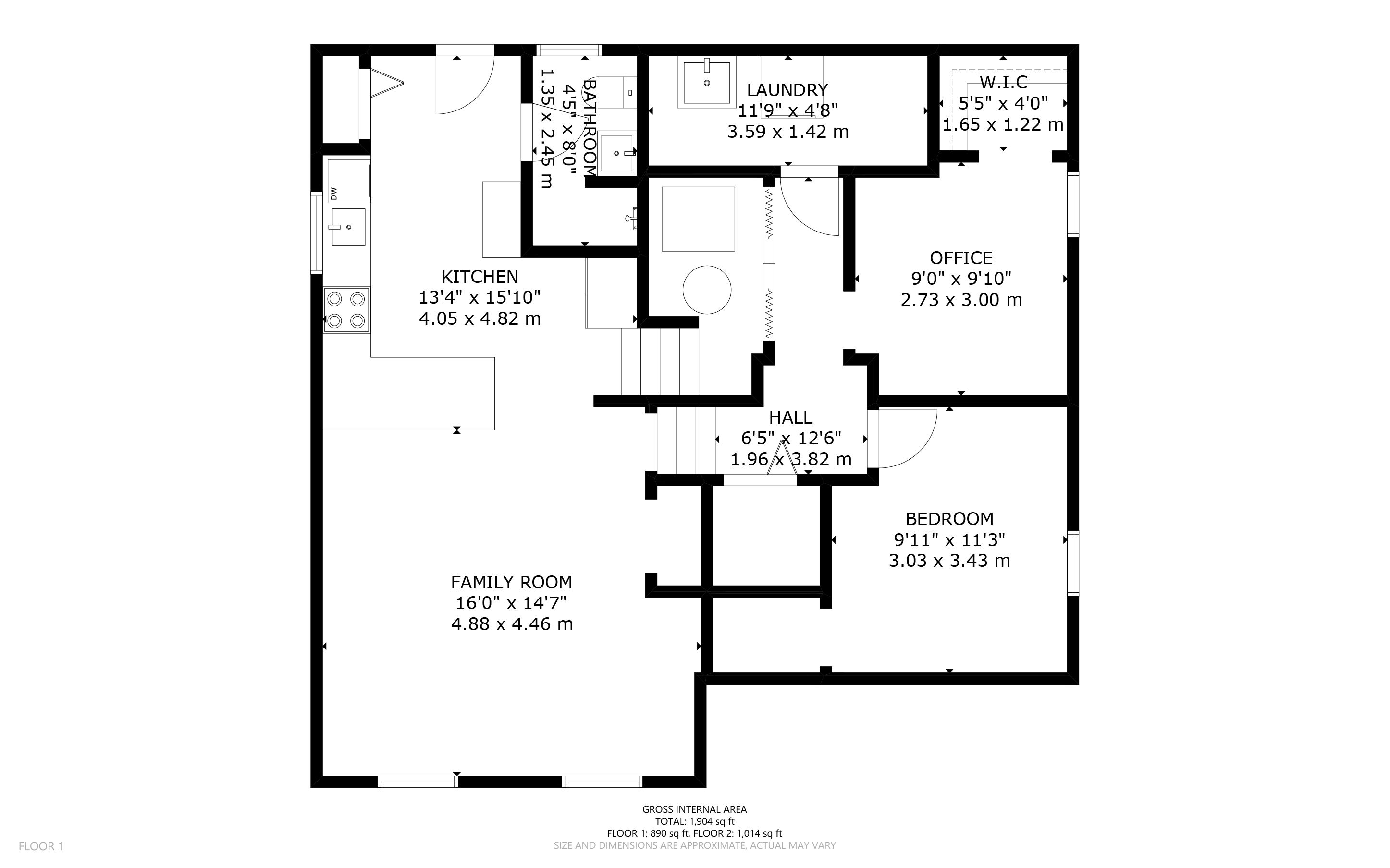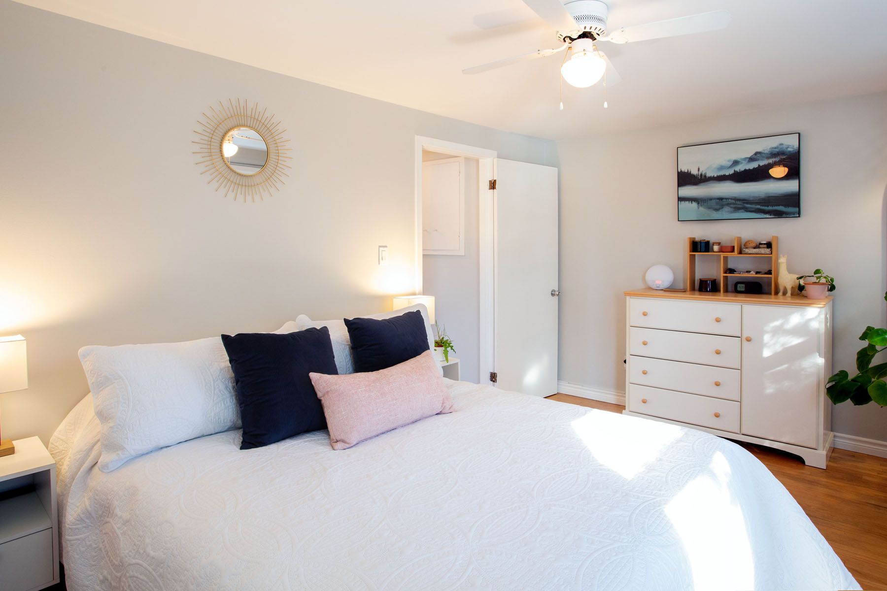 • Fully fenced yard with parking for four vehicles, near amenities.