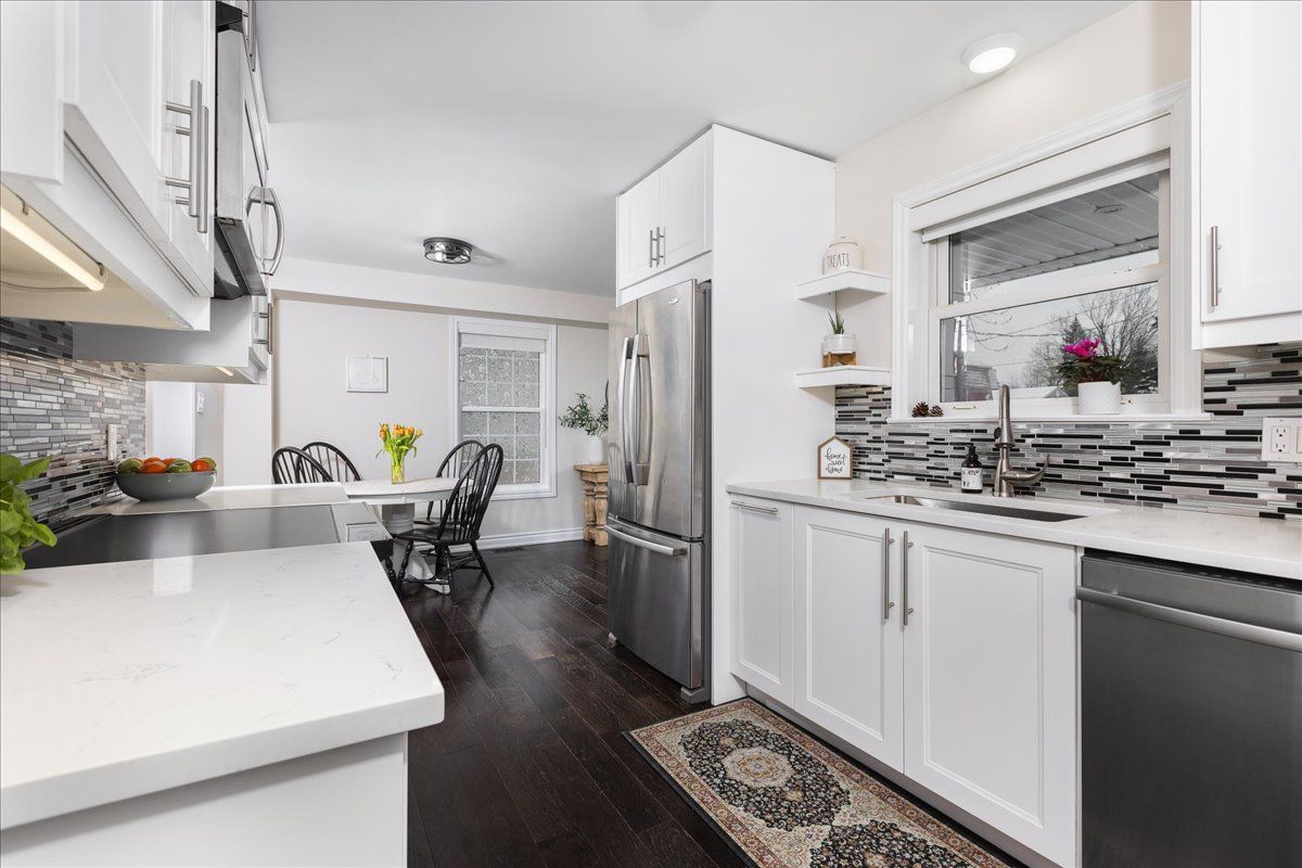 • Bright eat-in kitchen renovated in 2022 with quartz countertops.