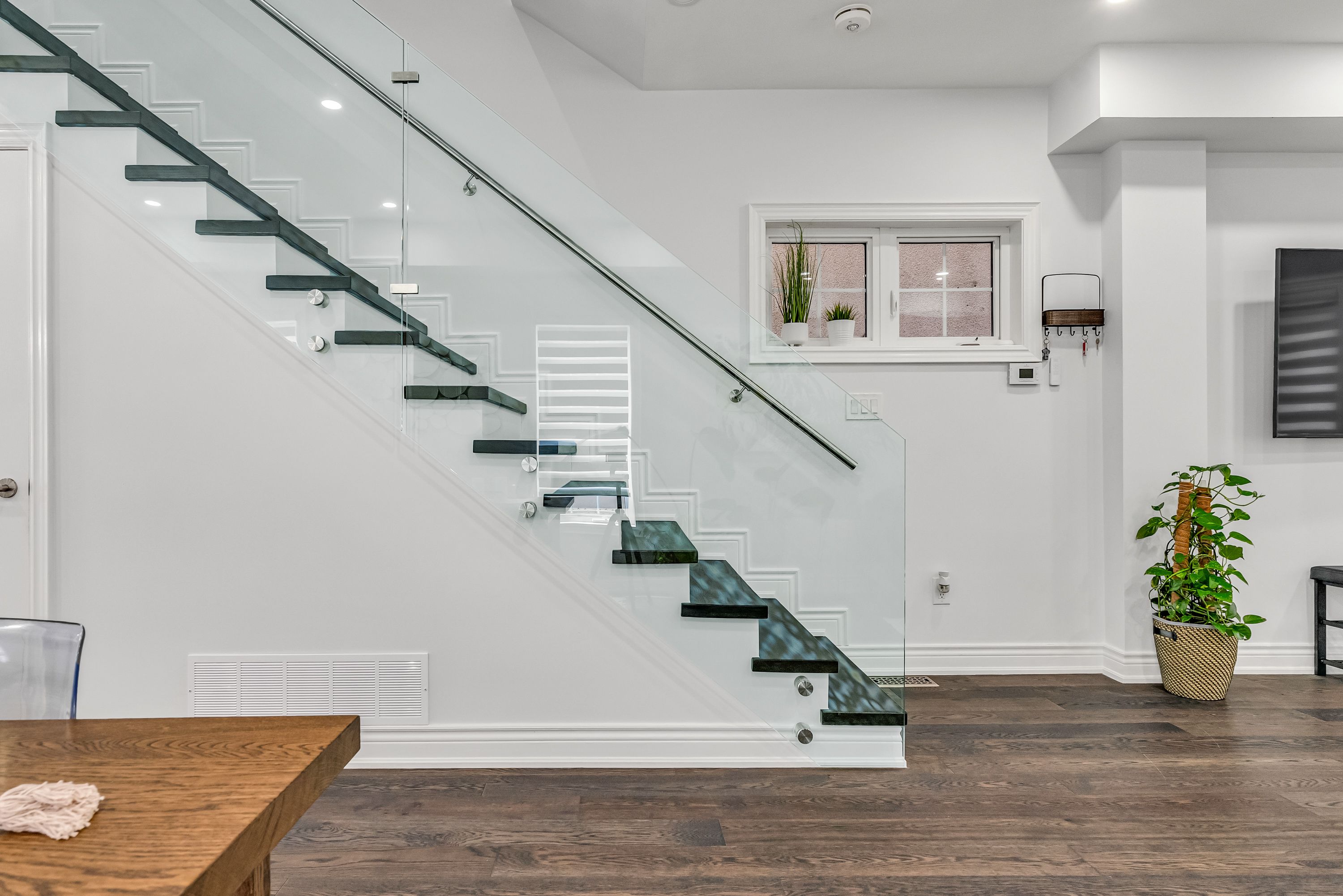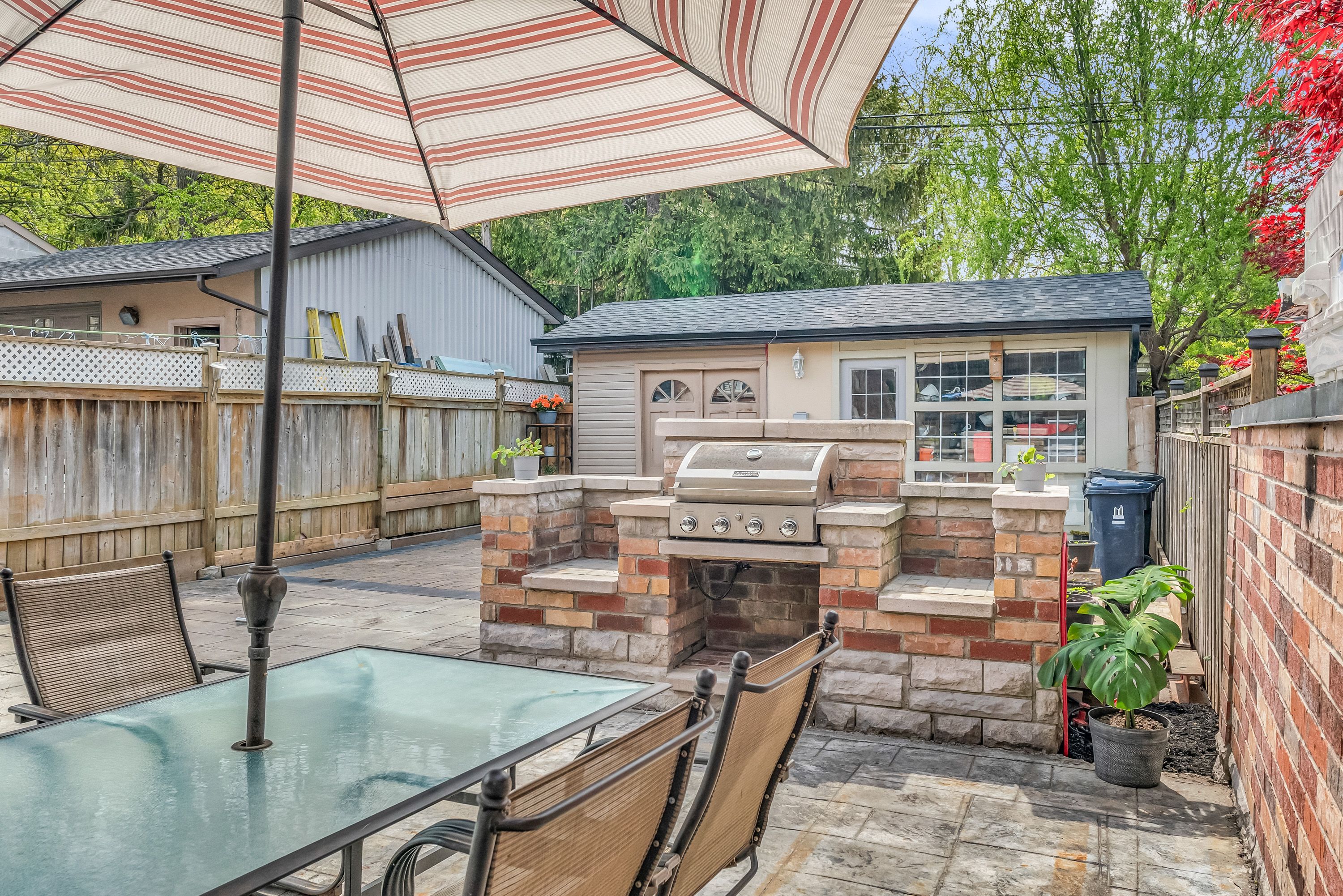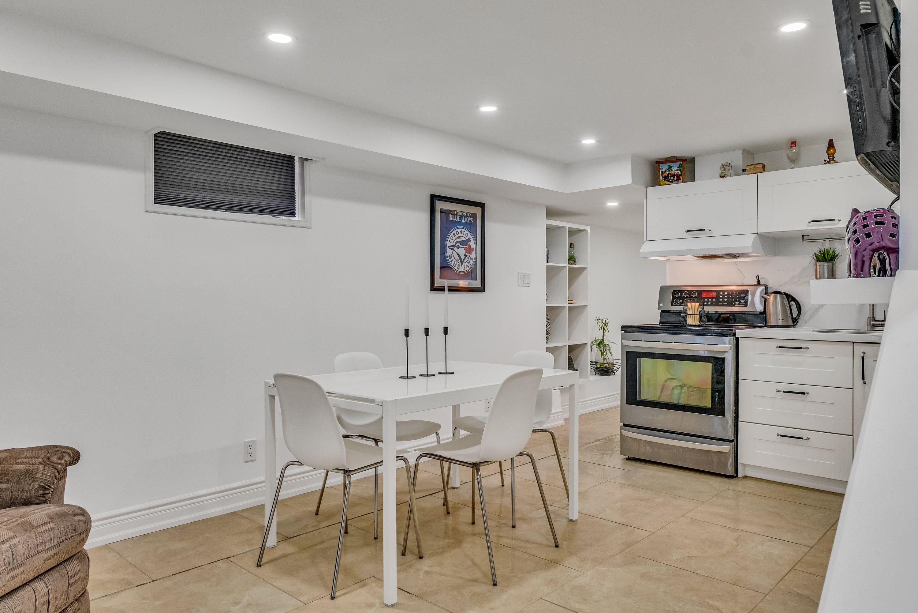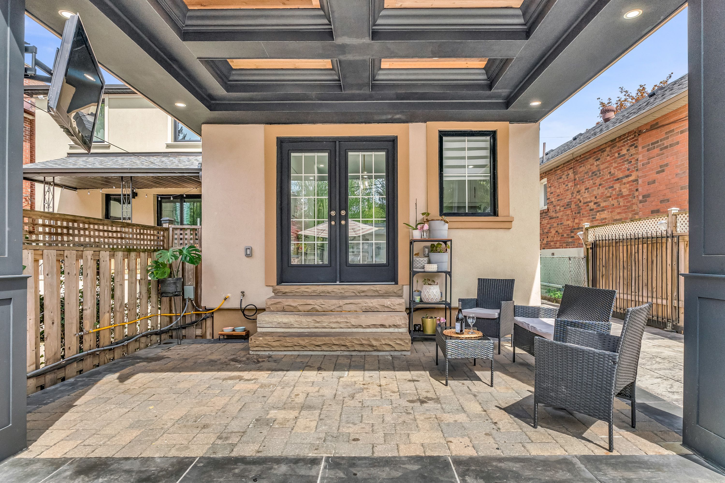 Fantastic detached family home in a caledonia-fairbank neighborhood! This truly custom-built home features an open-concept main floor designed for entertaining and everyday living. Enjoy soaring 9-foot ceilings on both the main and second floors, with an impressive 83-inch basement ceiling height. The gourmet modern kitchen is a chef's dream, complete with a large island featuring a quartz waterfall countertop and backsplash, a dedicated coffee station, and direct access to a covered patio. Elegant details include glass railings, 43-inch-wide stairs, potlights throughout, 5 inch baseboards, and classic colonial doors. All bedrooms boast double closets, and the convenience of second-floor laundry adds to the home's functionality. Electric blinds on the main floor complement the abundance of natural light streaming in from east and west exposures through numerous windows. The finished basement includes a separate 1 bedroom apartment with ensuite laundry and side access, while the main-floor stairs remain intact for easy conversion back to a single-family layout if desired. Currently rented to reliable tenant sat $2,000 per month, who will stay or vacate. Step outside to an amazing backyard oasis featuring patterned concrete, a covered patio with custom millwork, a built-in charcoal bbq(gas line available), a garden area, and two sheds. Additional amenities include rough-in for a central vacuum system. Located directly across from charles caccia park, enjoy easy access to a playground and wading pool. This home offers the perfect blend of style, comfort, and location-don't miss this exceptional opportunity!