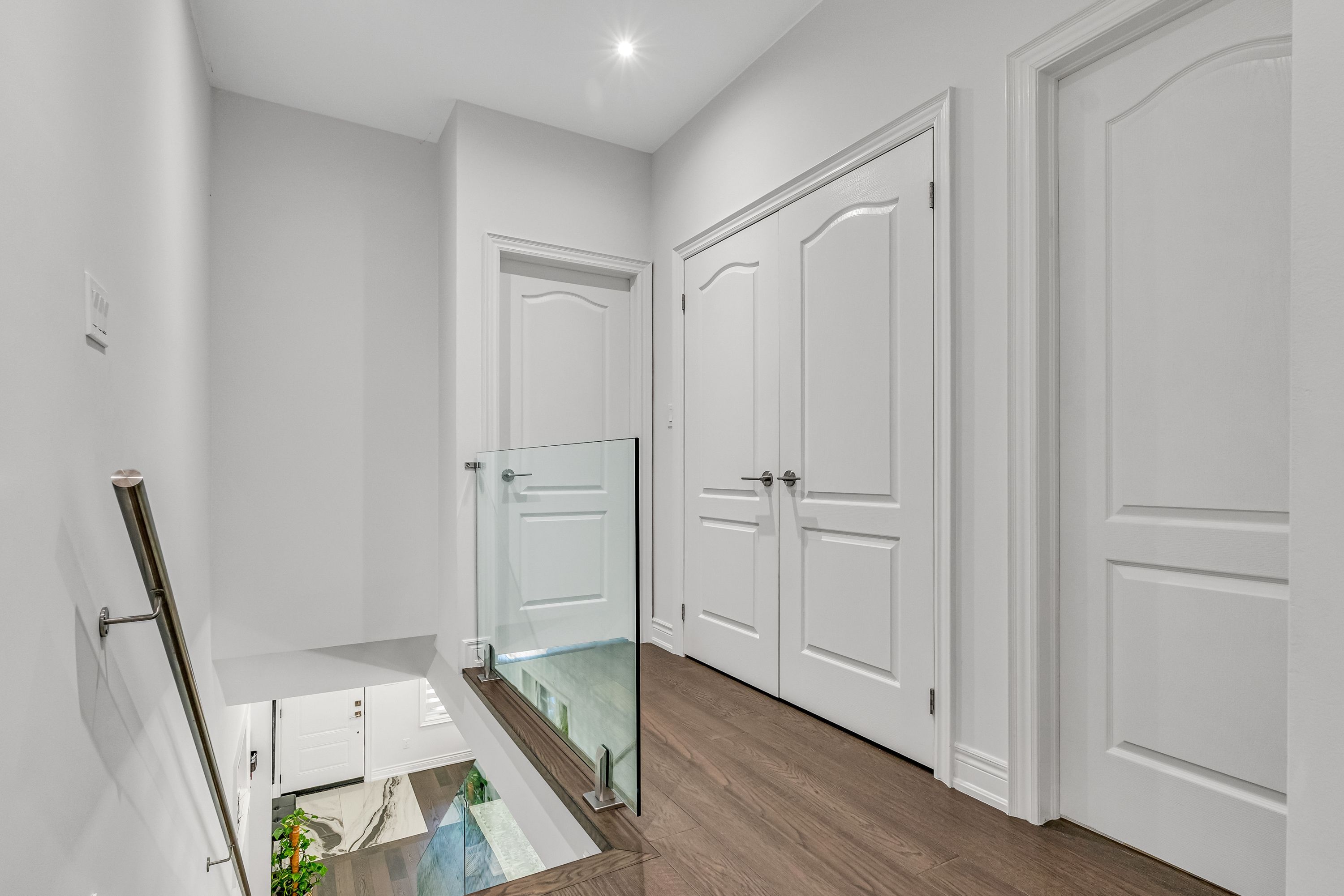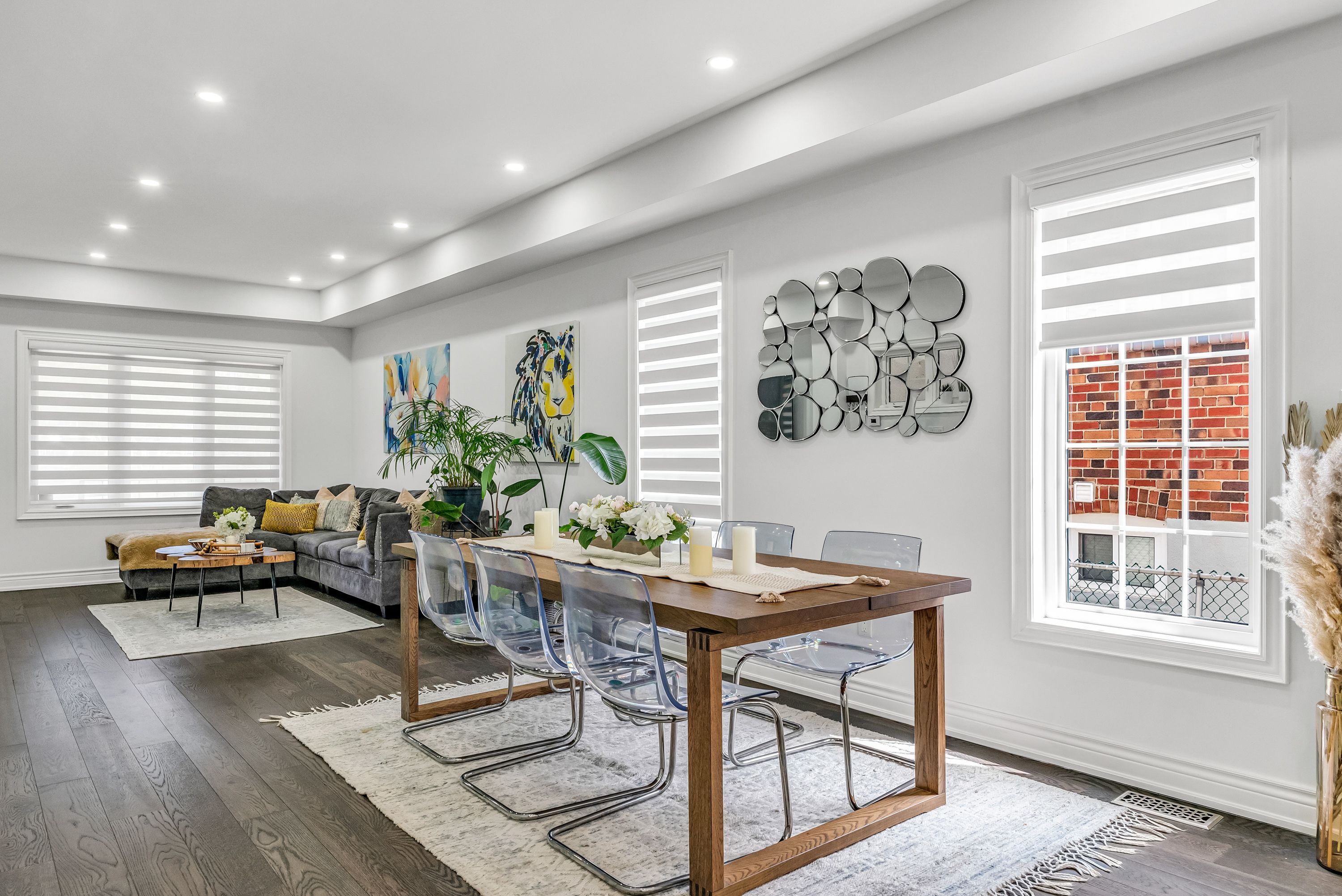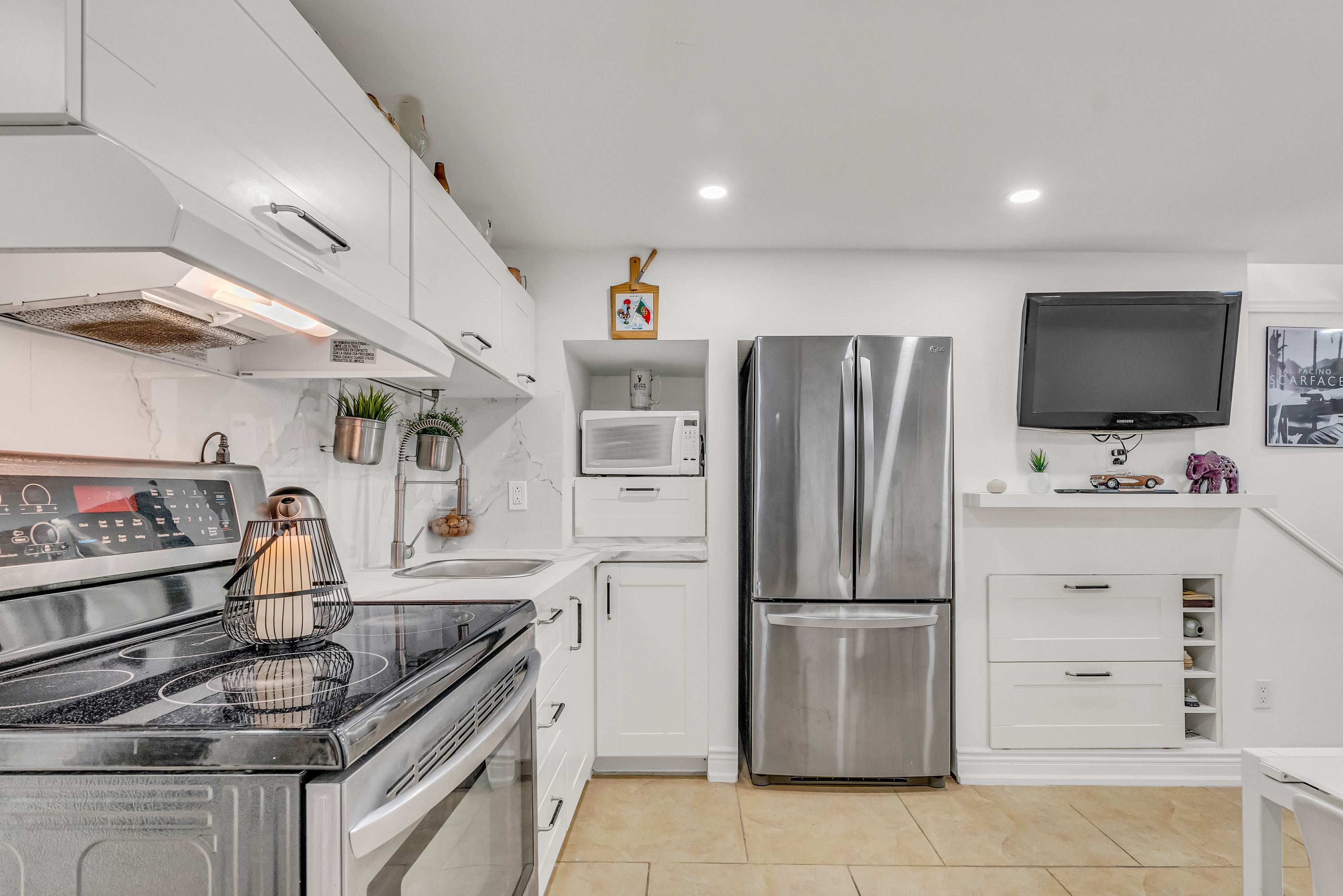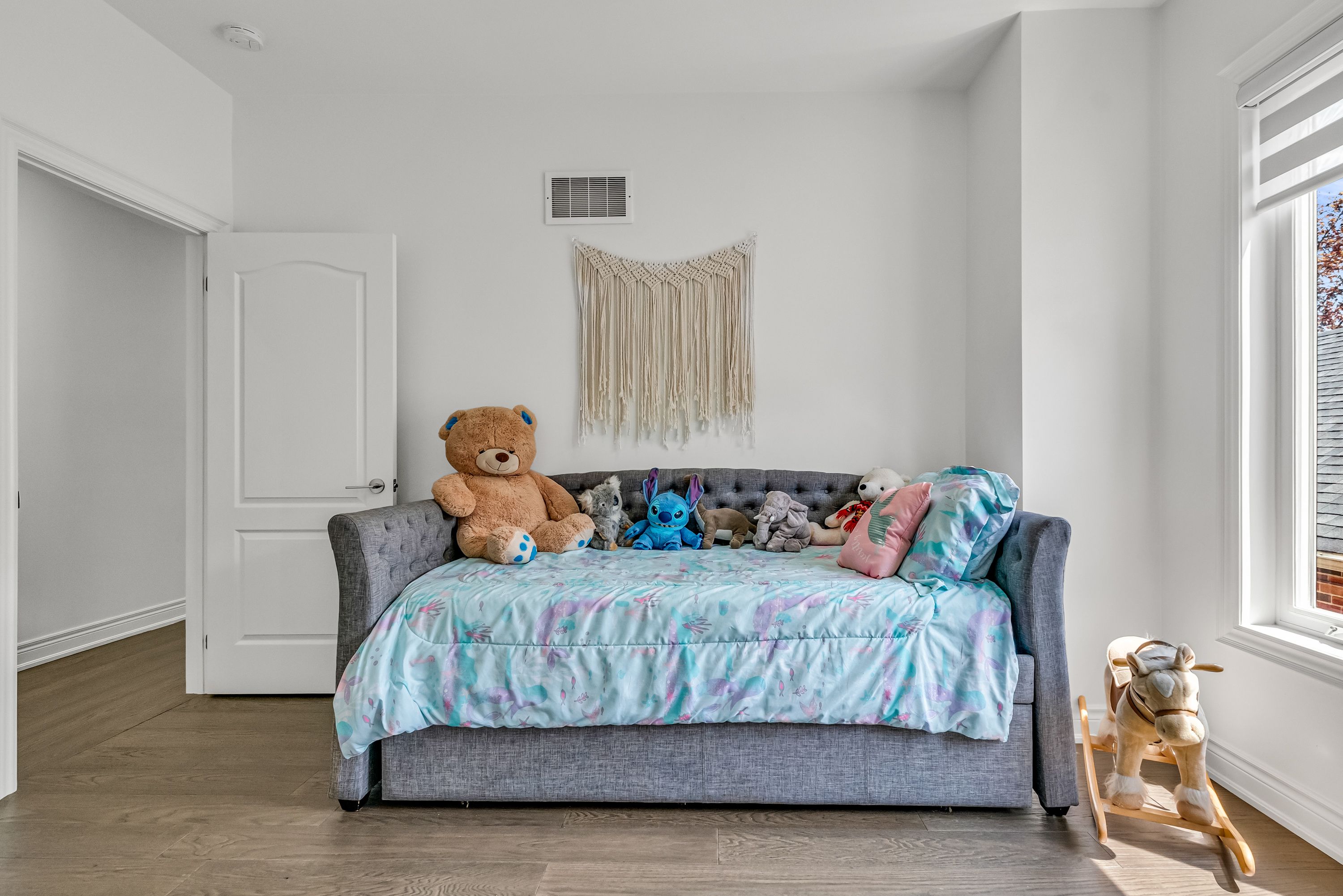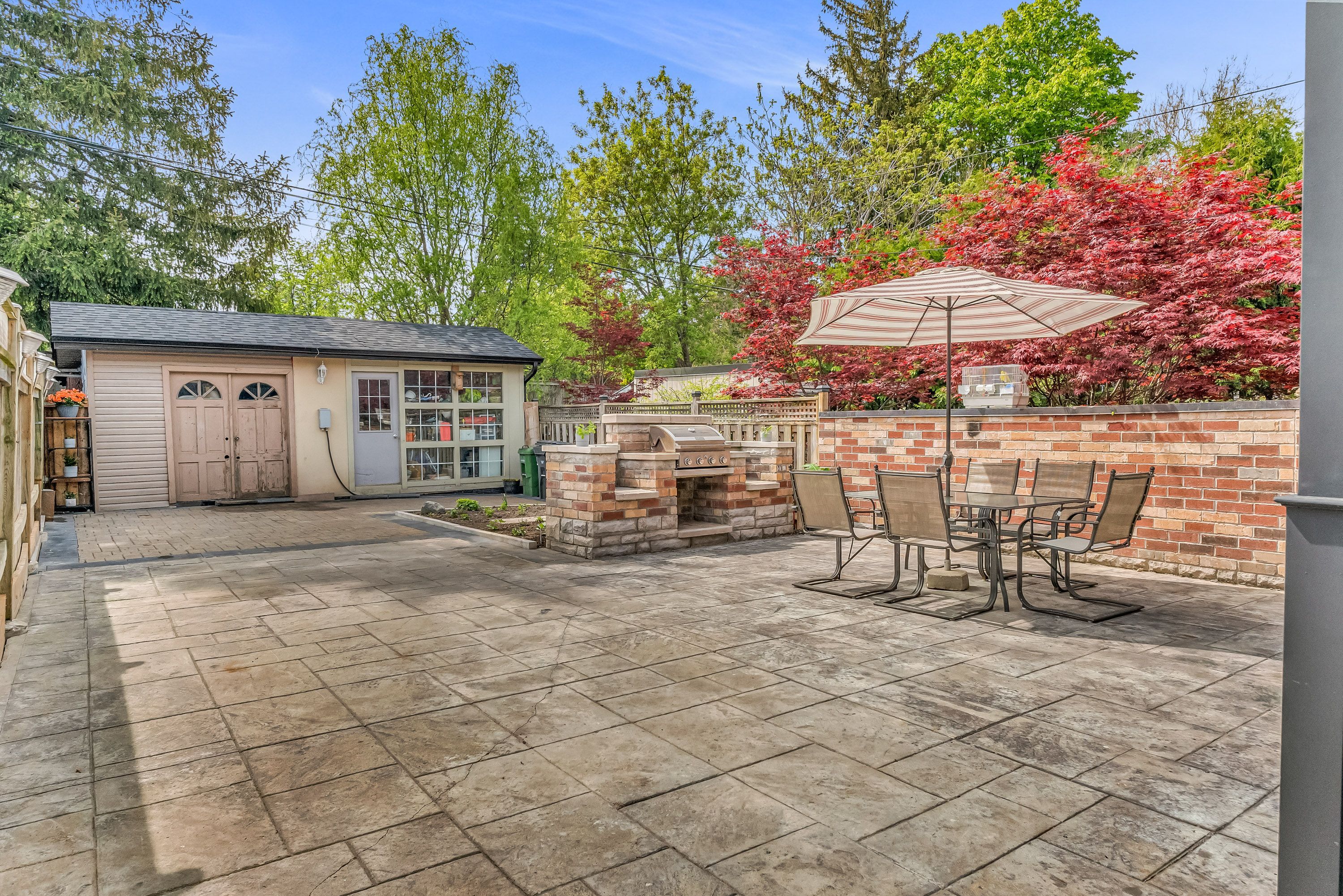 Fantastic detached family home in a caledonia-fairbank neighborhood! This truly custom-built home features an open-concept main floor designed for entertaining and everyday living. Enjoy soaring 9-foot ceilings on both the main and second floors, with an impressive 83-inch basement ceiling height. The gourmet modern kitchen is a chef's dream, complete with a large island featuring a quartz waterfall countertop and backsplash, a dedicated coffee station, and direct access to a covered patio. Elegant details include glass railings, 43-inch-wide stairs, potlights throughout, 5 inch baseboards, and classic colonial doors. All bedrooms boast double closets, and the convenience of second-floor laundry adds to the home's functionality. Electric blinds on the main floor complement the abundance of natural light streaming in from east and west exposures through numerous windows. The finished basement includes a separate 1 bedroom apartment with ensuite laundry and side access, while the main-floor stairs remain intact for easy conversion back to a single-family layout if desired. Currently rented to reliable tenant sat $2,000 per month, who will stay or vacate. Step outside to an amazing backyard oasis featuring patterned concrete, a covered patio with custom millwork, a built-in charcoal bbq(gas line available), a garden area, and two sheds. Additional amenities include rough-in for a central vacuum system. Located directly across from charles caccia park, enjoy easy access to a playground and wading pool. This home offers the perfect blend of style, comfort, and location-don't miss this exceptional opportunity!