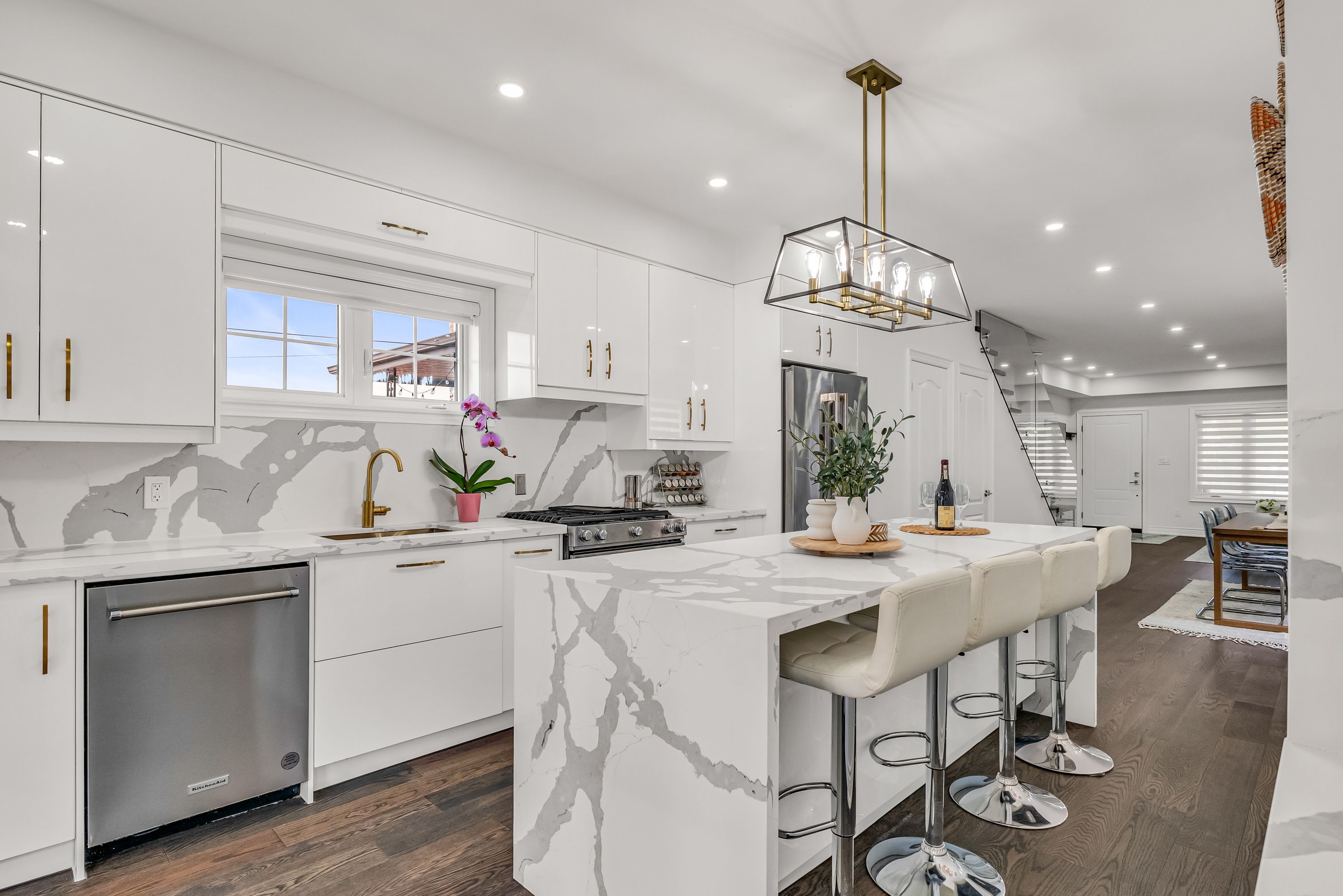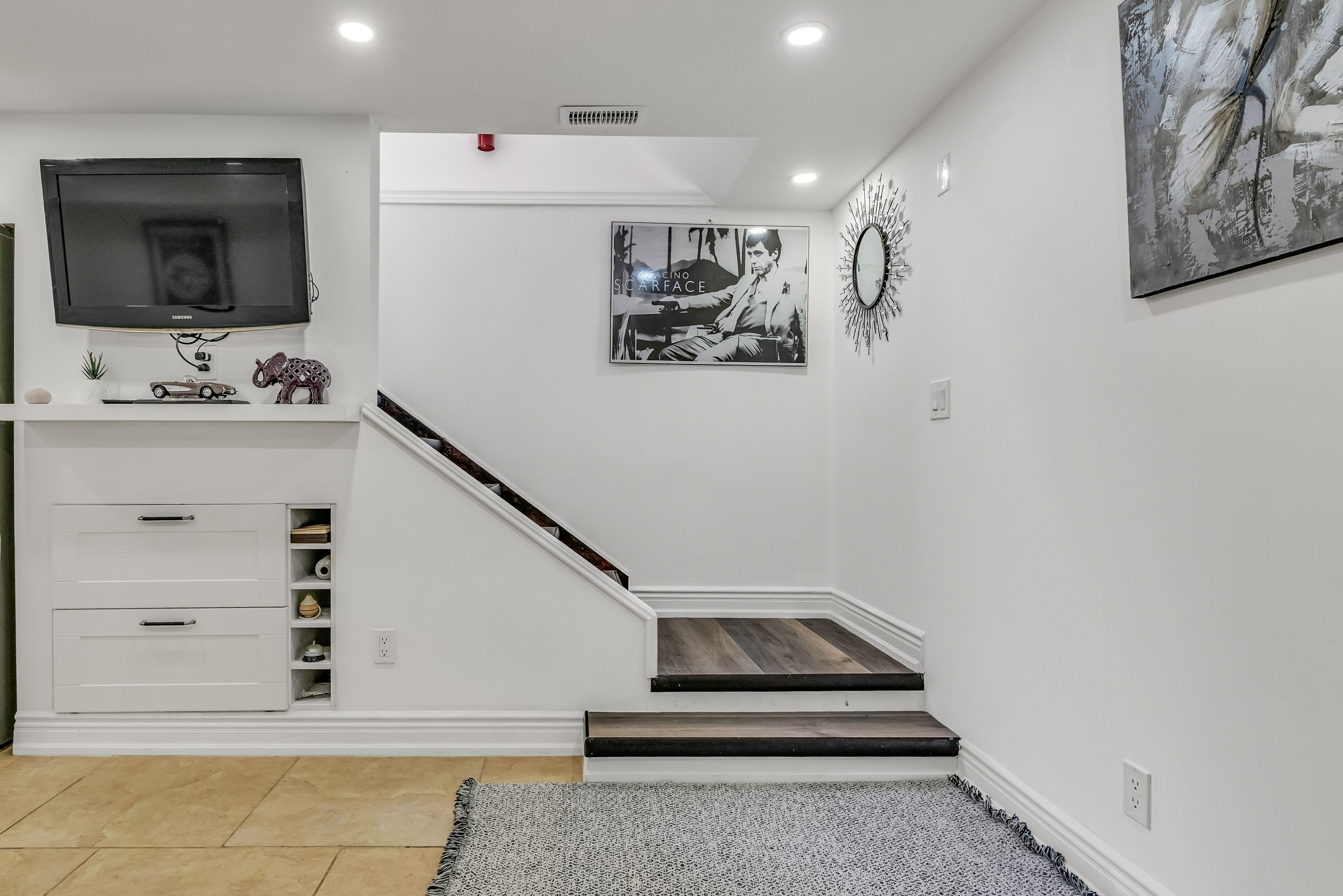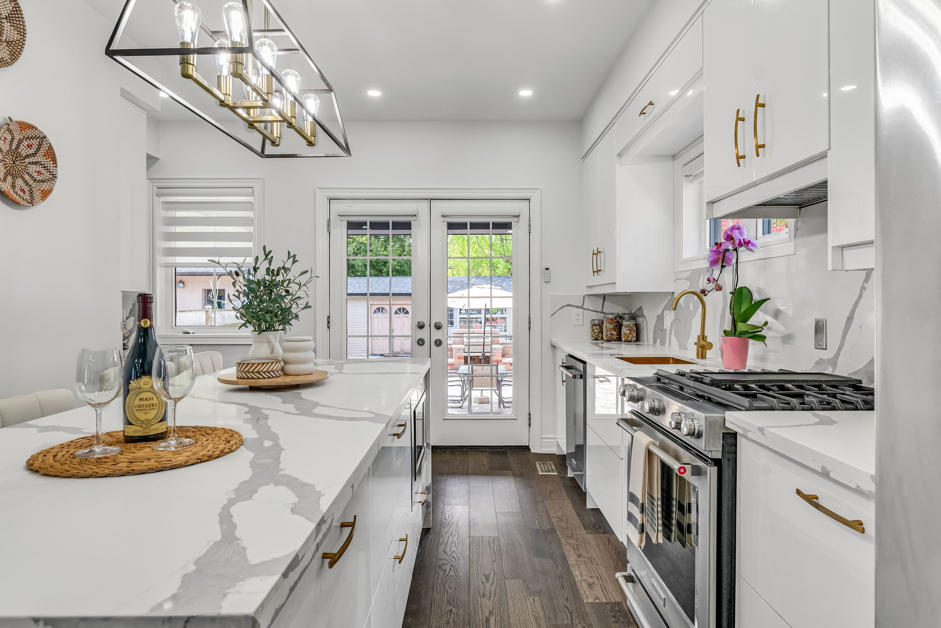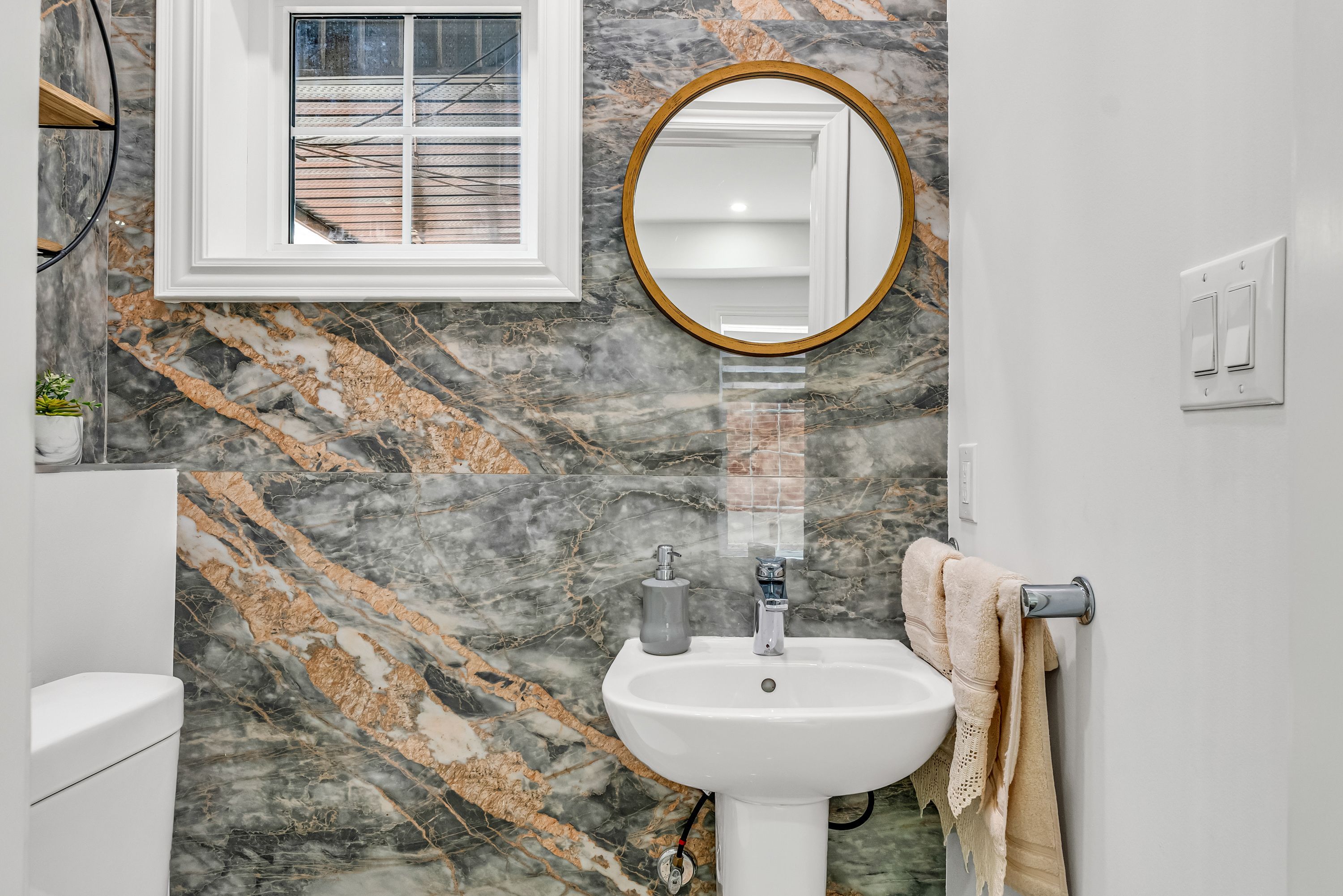 Fantastic detached family home in a caledonia-fairbank neighborhood! This truly custom-built home features an open-concept main floor designed for entertaining and everyday living. Enjoy soaring 9-foot ceilings on both the main and second floors, with an impressive 83-inch basement ceiling height. The gourmet modern kitchen is a chef's dream, complete with a large island featuring a quartz waterfall countertop and backsplash, a dedicated coffee station, and direct access to a covered patio. Elegant details include glass railings, 43-inch-wide stairs, potlights throughout, 5 inch baseboards, and classic colonial doors. All bedrooms boast double closets, and the convenience of second-floor laundry adds to the home's functionality. Electric blinds on the main floor complement the abundance of natural light streaming in from east and west exposures through numerous windows. The finished basement includes a separate 1 bedroom apartment with ensuite laundry and side access, while the main-floor stairs remain intact for easy conversion back to a single-family layout if desired. Currently rented to reliable tenant sat $2,000 per month, who will stay or vacate. Step outside to an amazing backyard oasis featuring patterned concrete, a covered patio with custom millwork, a built-in charcoal bbq(gas line available), a garden area, and two sheds. Additional amenities include rough-in for a central vacuum system. Located directly across from charles caccia park, enjoy easy access to a playground and wading pool. This home offers the perfect blend of style, comfort, and location-don't miss this exceptional opportunity!