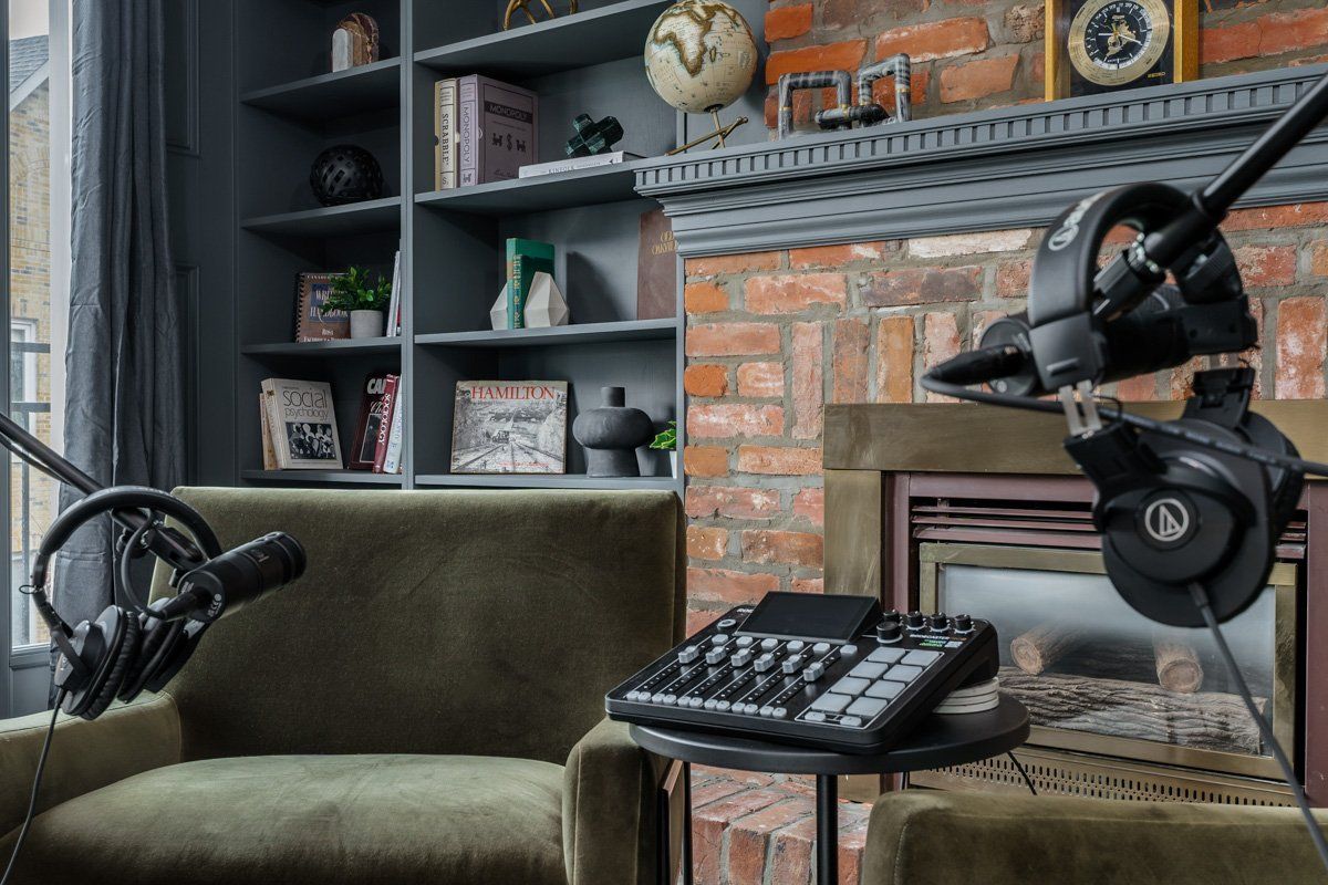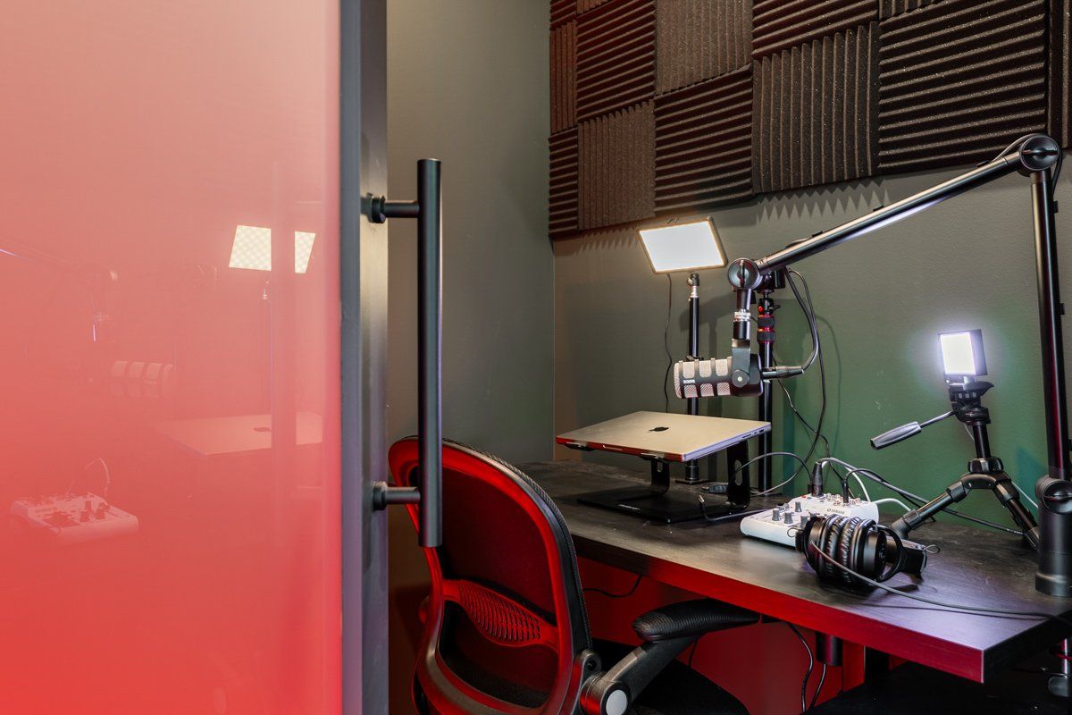 • Acoustically treated podcast room for high-quality recordings.