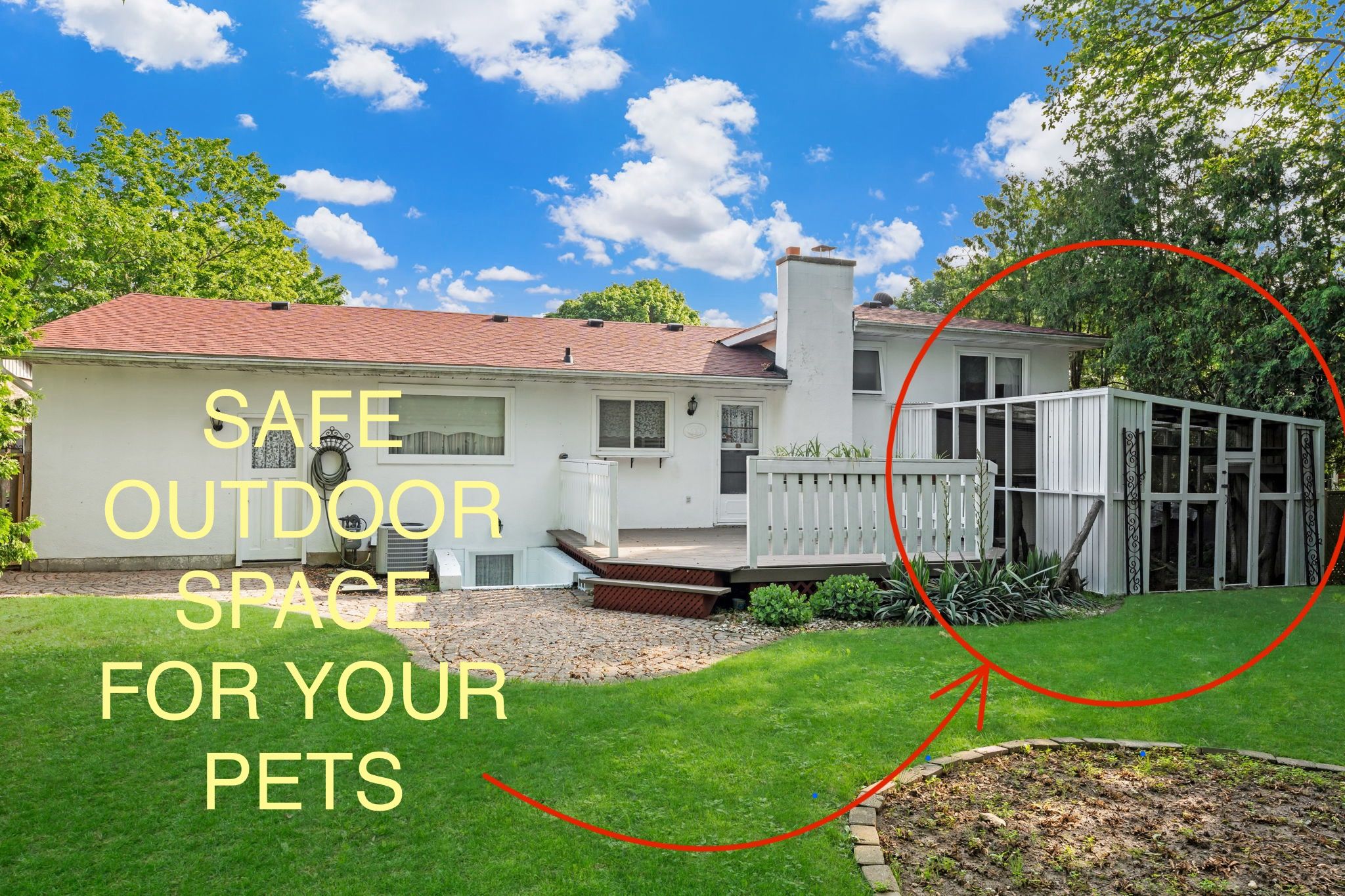 • Large outdoor cattery courtyard designed for pet safety and convenience.