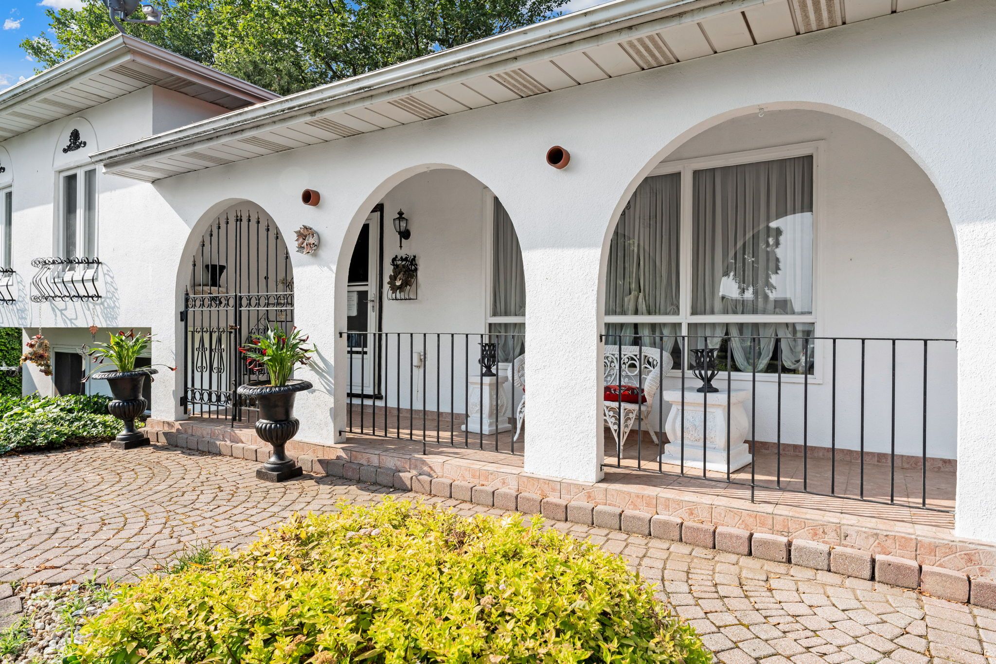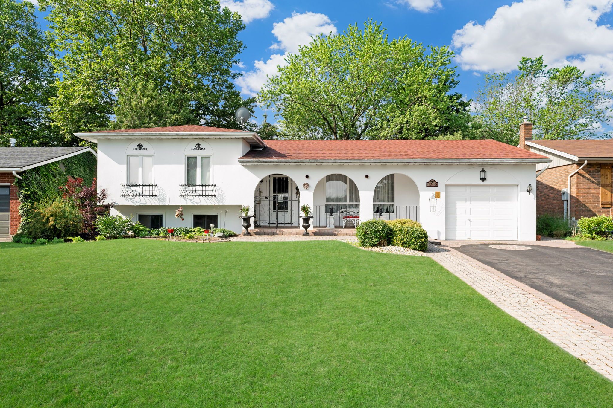 Exclusive, sought-after original cherry heights location in a prestigious cul-de-sac subdivision backing onto orchards with no through traffic. Ideal for families with pets, this property features a lrg, self-contained outdoor cattery courtyard with 2 levels, 2 entrances, & a partially covered steel roof-providing safe protection for all pets and pet parents who prefer crating options. Fantastic value, as a similar home nearby recently sold well above this list price. Some interior images are virtually staged to reflect modern décor rather than the owner's traditional or antique style. This unique hacienda-style house, circa 1973, sits on a lrg premium 65x134 ft lot with great curb appeal, archways, custom wrought iron gates, and a 6-car driveway resurfaced 2024. Features extensive interlock brick walkways, a lrg tandem 2 car garage ideal for a workshop. Within walking distance to town and shopping in niagara's wine country. The southern exposure offers a spacious deck overlooking a beautiful, mature, private, fenced, pool-sized yard surrounded by cedars in a park-like setting, perfect for entertaining. A lrg custom shed/change house with authentic mexican roof tiles adds charm. The home has four levels with lrg principal rms, a generous l-shaped liv/din rm, a lrg kitchen with space for an island, and a cozy sitting area in the spacious primary bedrm. It includes 5-piece and 3-piece baths, a family rm with a wood-burning fireplace, and a bright office/3rd bedroom. There's ample closet space throughout. The walk-out basement with a private entrance allows for a nanny suite, or extra living space & includes a cold cellar vented to the garage. Recent upgrades include a new a/c unit, black & white marble-look floor tiles and kitchen countertops, exterior painting (2024), upgraded attic insulation, 30-year roof shingles (2018), and gutter guards for easy maintenance (2023). Offering privacy, character, & charm in a prime location-make this home your own!