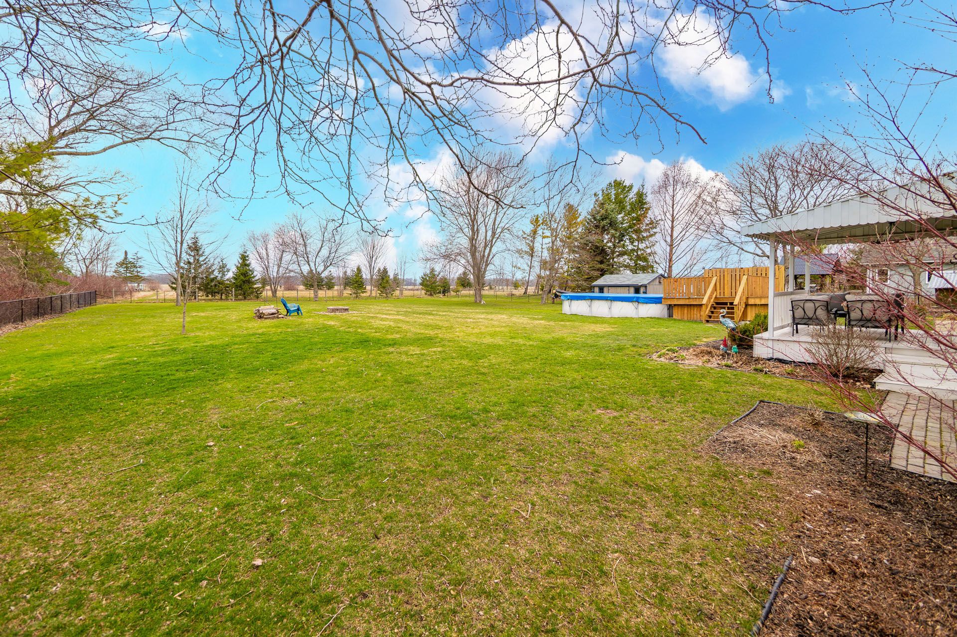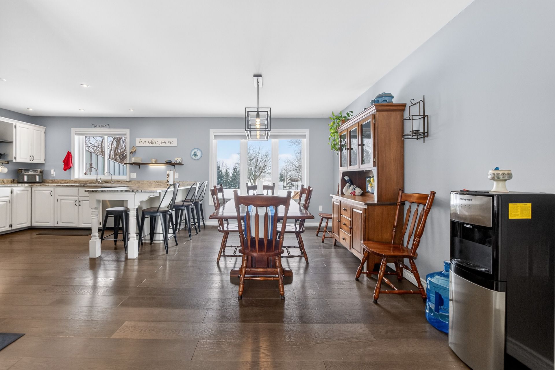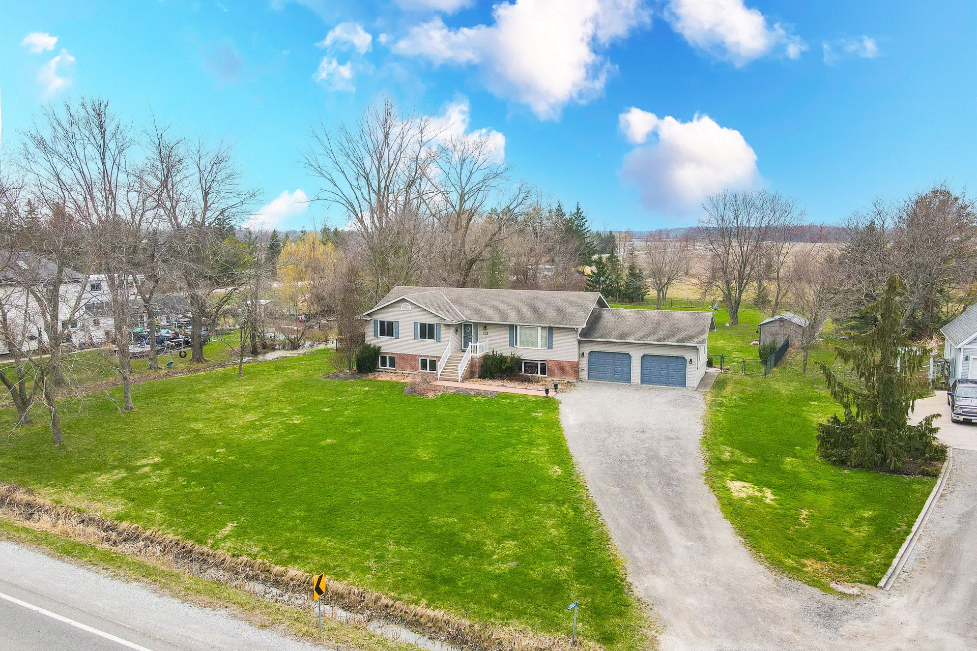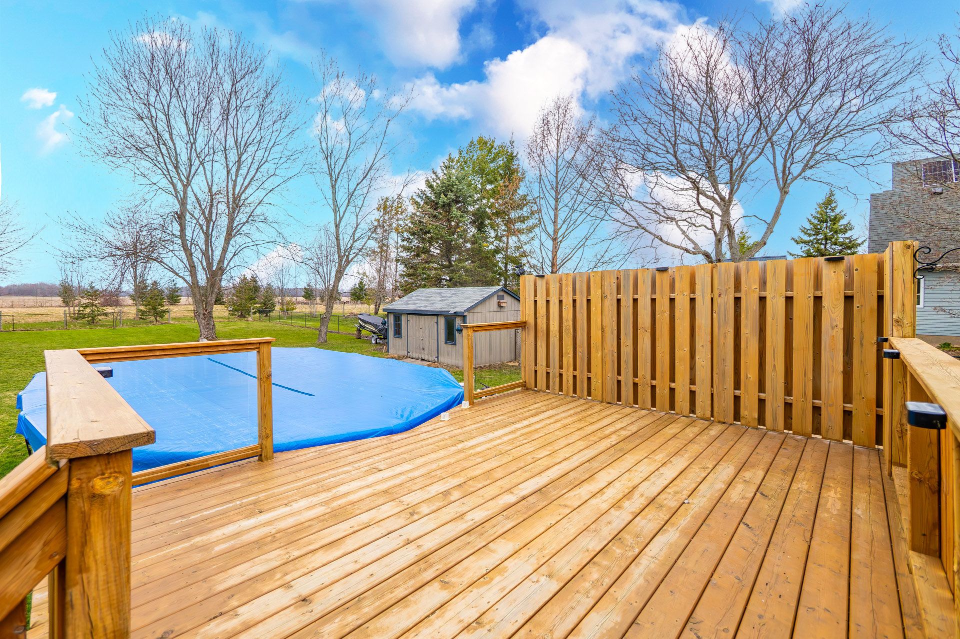 Immaculate raised brick bungalow in the heart of wainfleet, just a short walk to schools, library, playgrounds, sports fields and the arena. Set on just over 1 acre with no rear neighbours, this beautifully maintained home offers privacy, open views and incredible sunsets. The inviting main floor features an open concept layout with a bright kitchen and dining area, spacious living room, and three generous bedrooms including a primary with walk-in closet. Wide plank hardwood floors add warmth throughout. The finished lower level offers large windows, a spacious rec room with gas fireplace, an additional large bedroom, bonus room and 3-piece shower. Ideal potential for an in-law suite setup. Exterior highlights include a private covered porch overlooking the expansive backyard, 15x24 pool with deck (2022), and chainlink fence (2021). Major updates provide peace of mind: furnace (2021), water heater (2024), full home filtration system (2025), three pumps replaced (2023), rear windows (2023), extended kitchen island with granite counters (2022), and generac generator maintenance (2024). Attached double car garage completes this move-in ready property. Meticulously cared for inside and out.