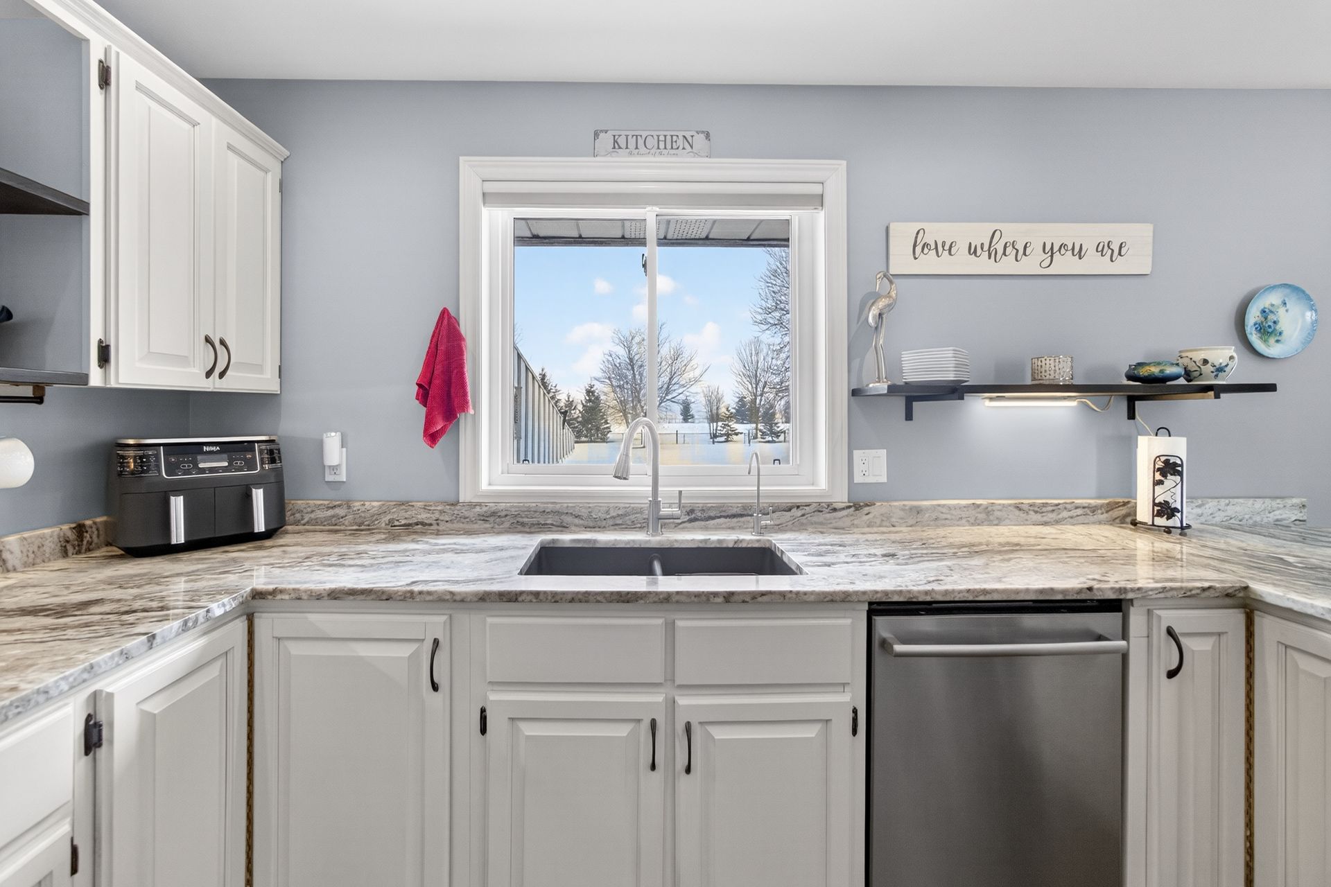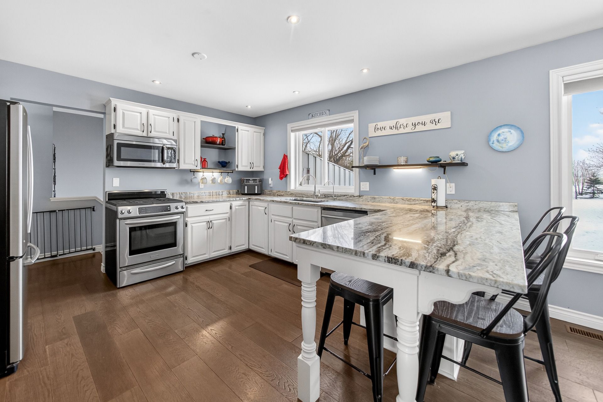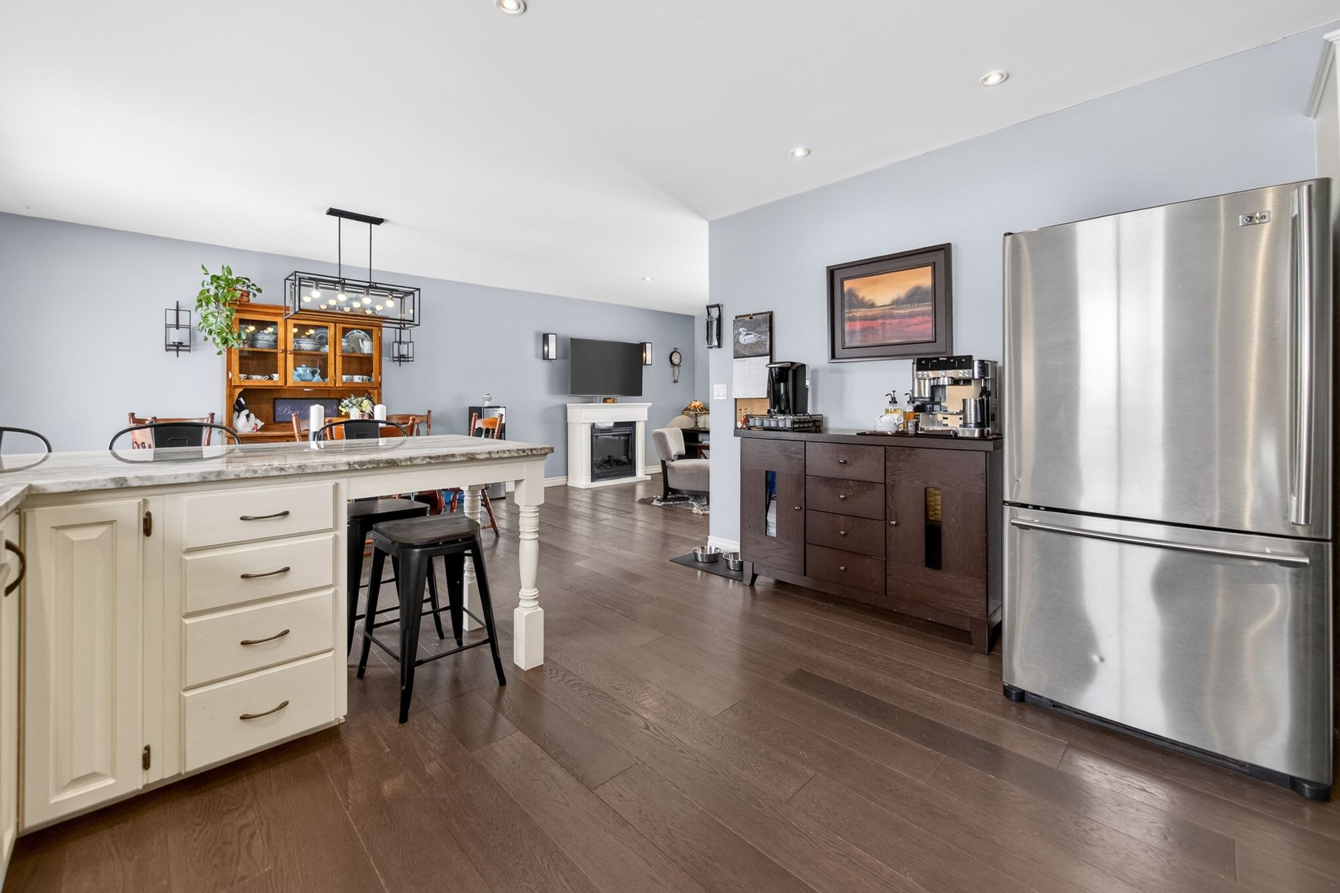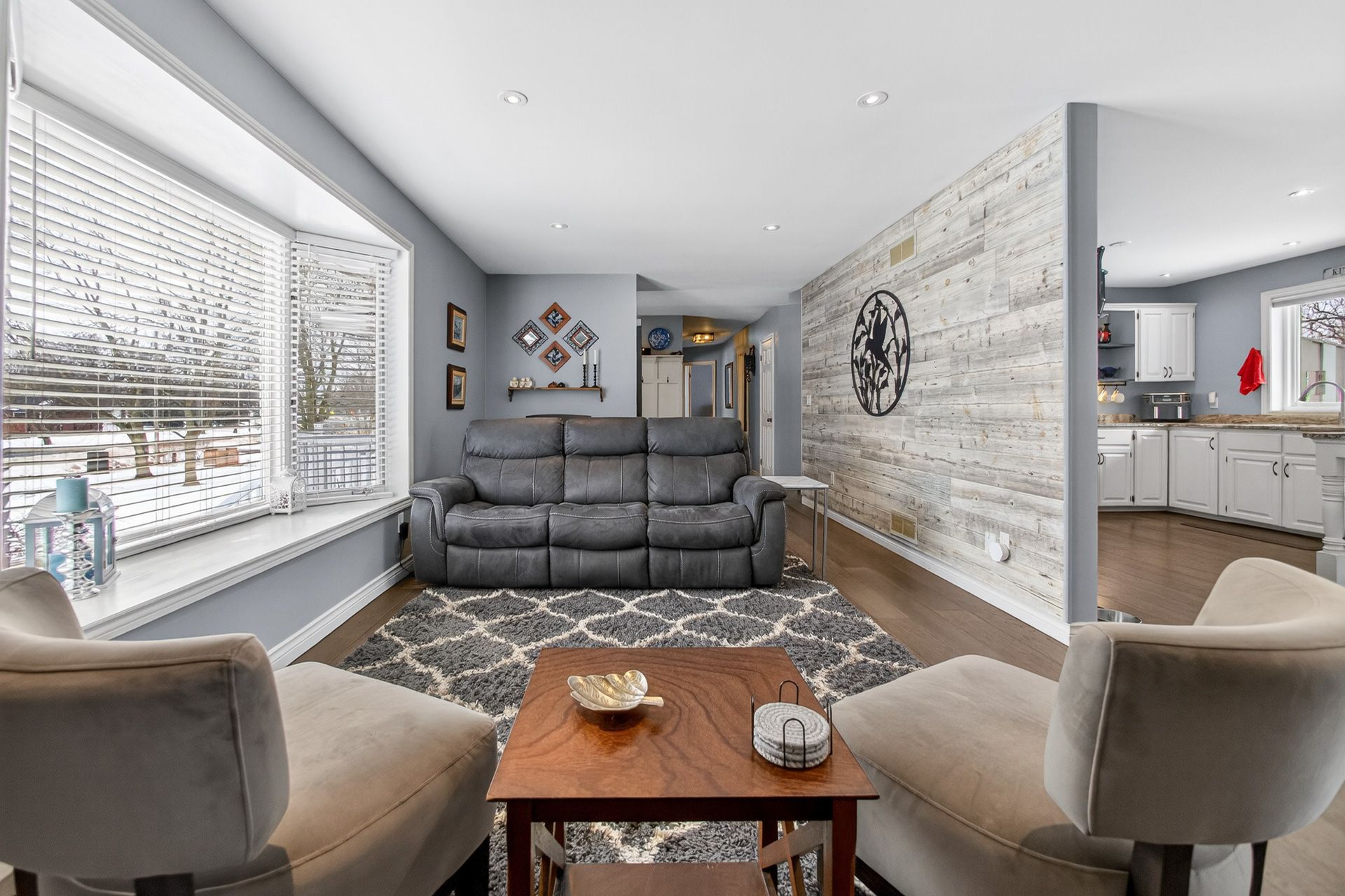 Immaculate raised brick bungalow in the heart of wainfleet, just a short walk to schools, library, playgrounds, sports fields and the arena. Set on just over 1 acre with no rear neighbours, this beautifully maintained home offers privacy, open views and incredible sunsets. The inviting main floor features an open concept layout with a bright kitchen and dining area, spacious living room, and three generous bedrooms including a primary with walk-in closet. Wide plank hardwood floors add warmth throughout. The finished lower level offers large windows, a spacious rec room with gas fireplace, an additional large bedroom, bonus room and 3-piece shower. Ideal potential for an in-law suite setup. Exterior highlights include a private covered porch overlooking the expansive backyard, 15x24 pool with deck (2022), and chainlink fence (2021). Major updates provide peace of mind: furnace (2021), water heater (2024), full home filtration system (2025), three pumps replaced (2023), rear windows (2023), extended kitchen island with granite counters (2022), and generac generator maintenance (2024). Attached double car garage completes this move-in ready property. Meticulously cared for inside and out.