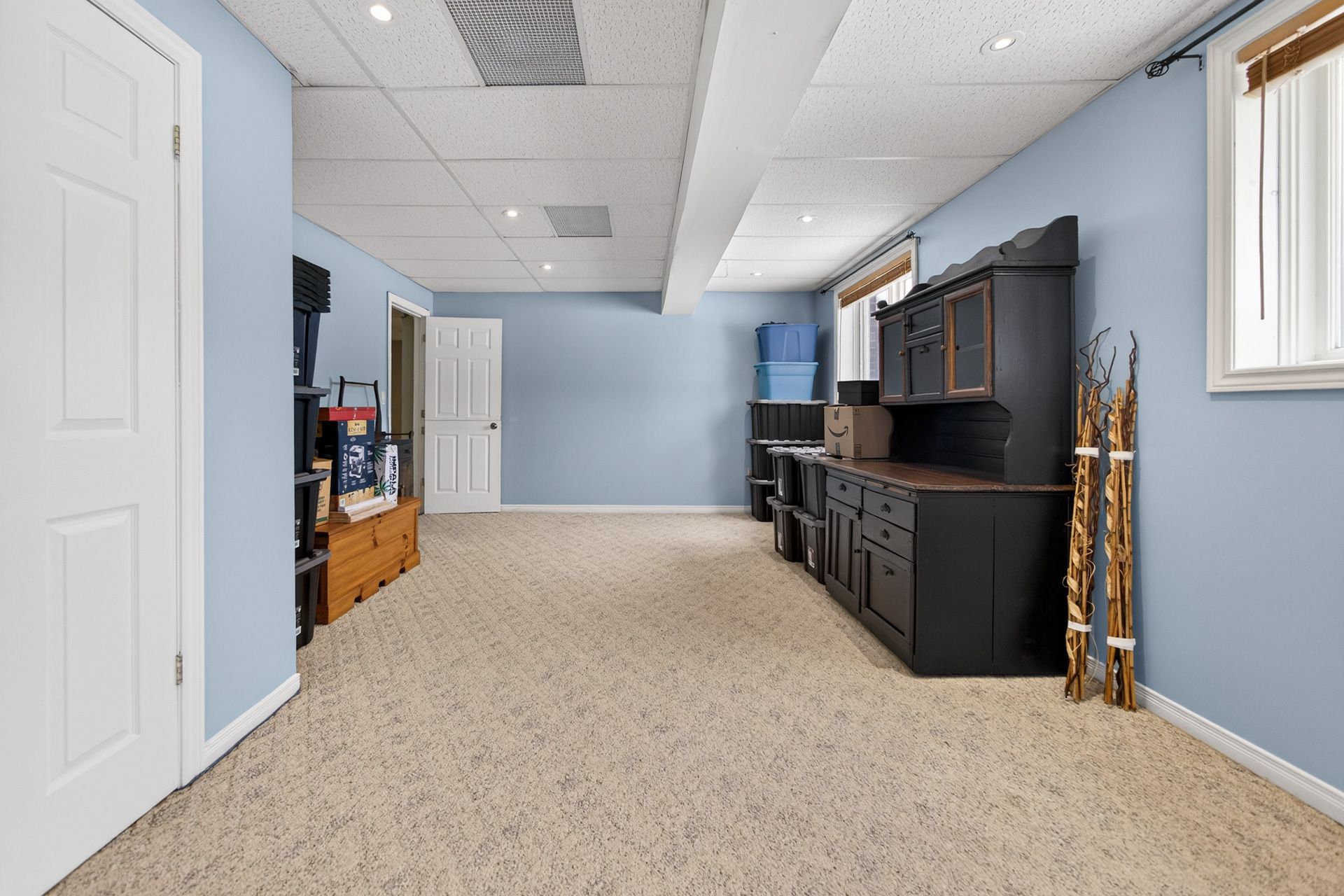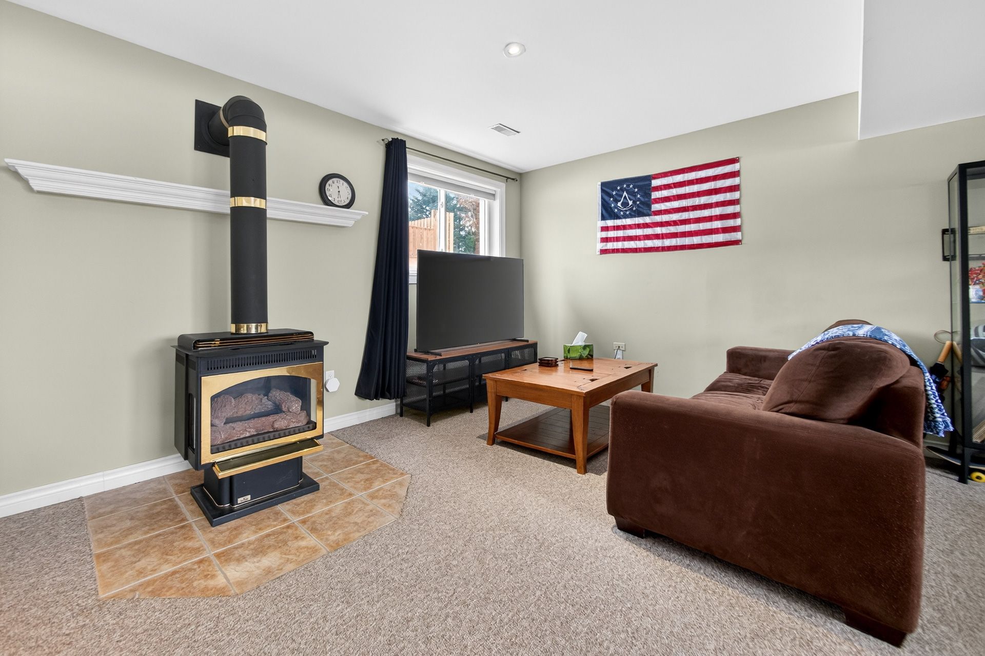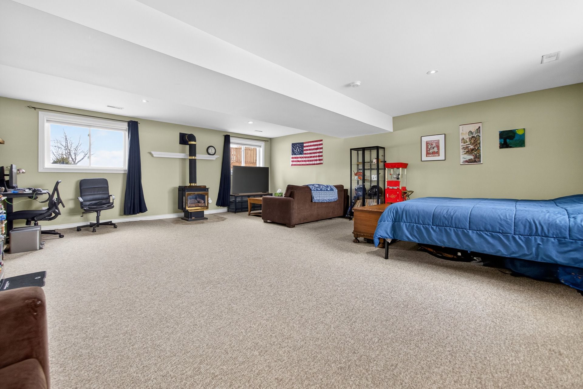• Finished lower level with large rec room, gas fireplace, and extra bedroom.