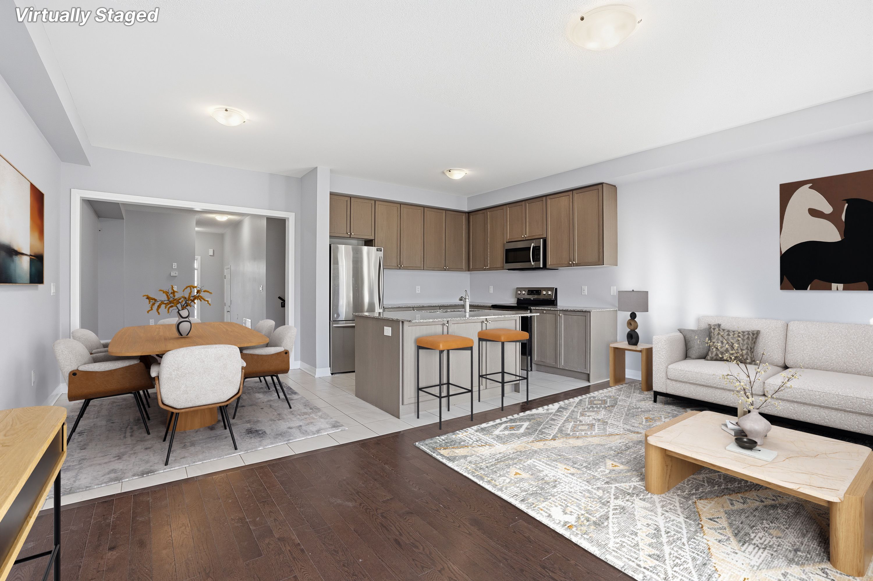 • Open concept main floor with hardwood and ceramic flooring throughout.