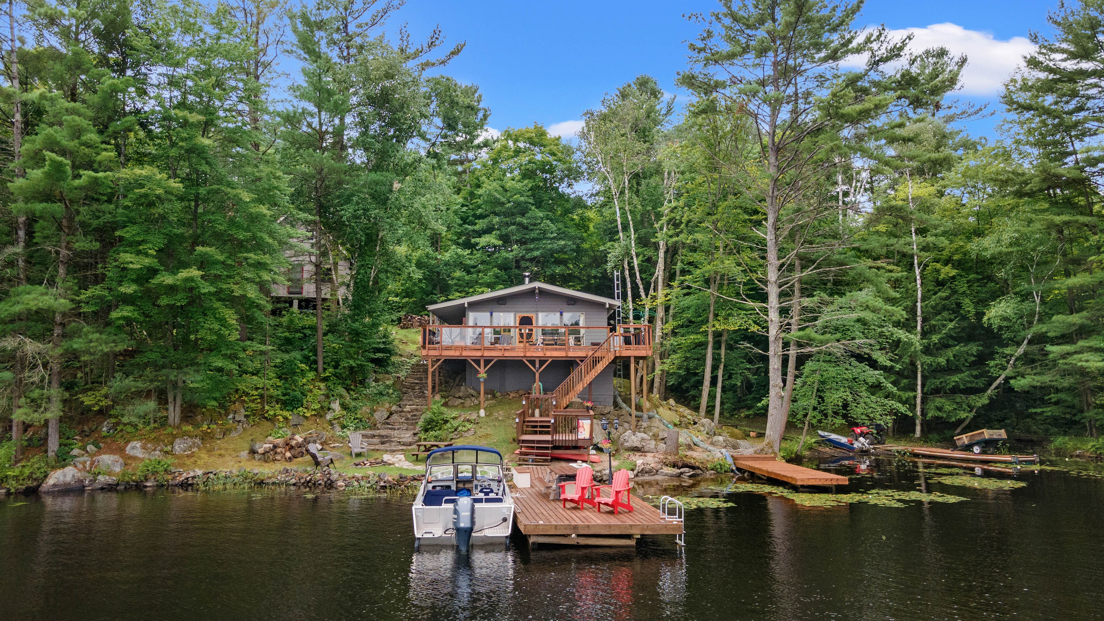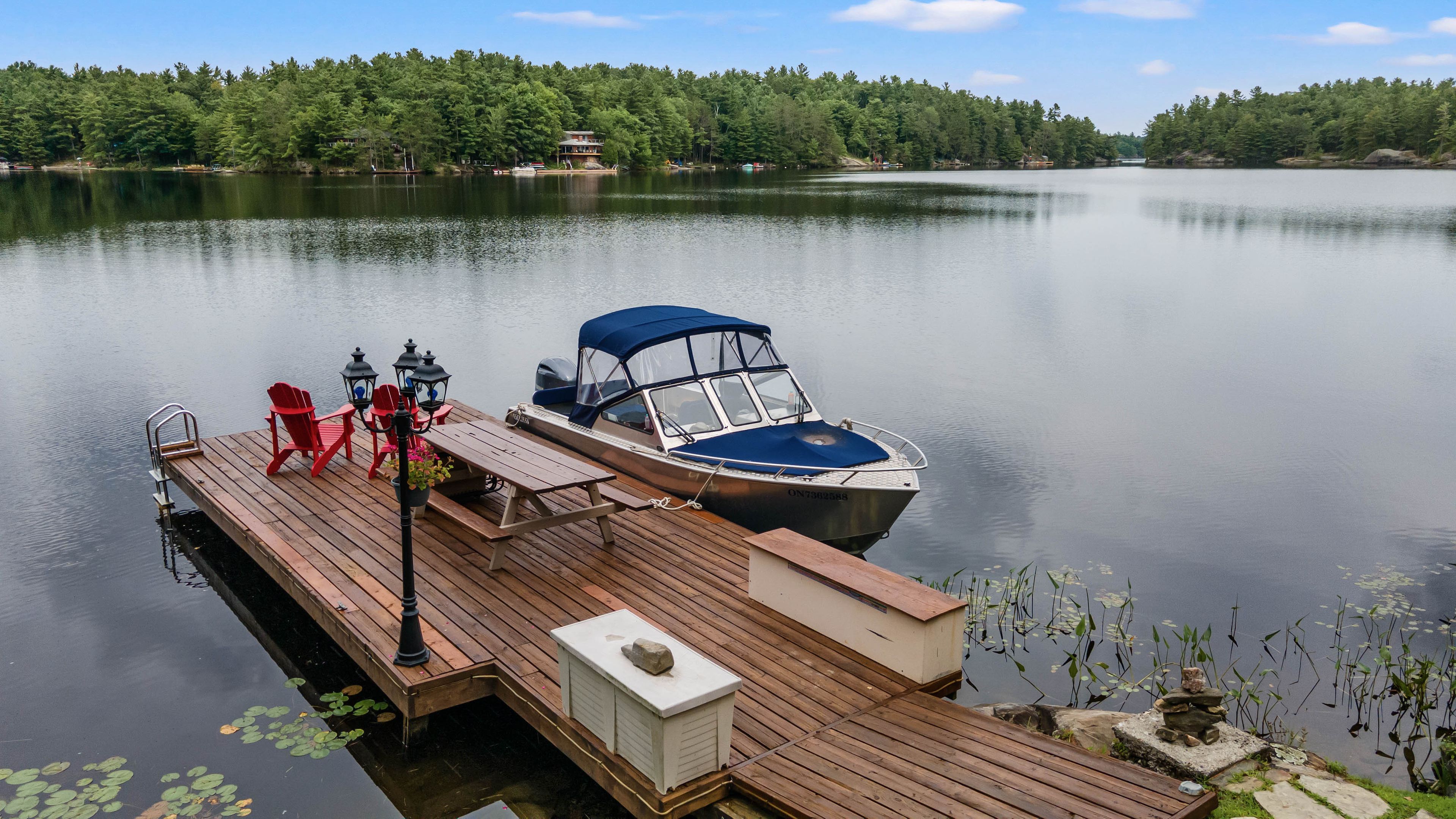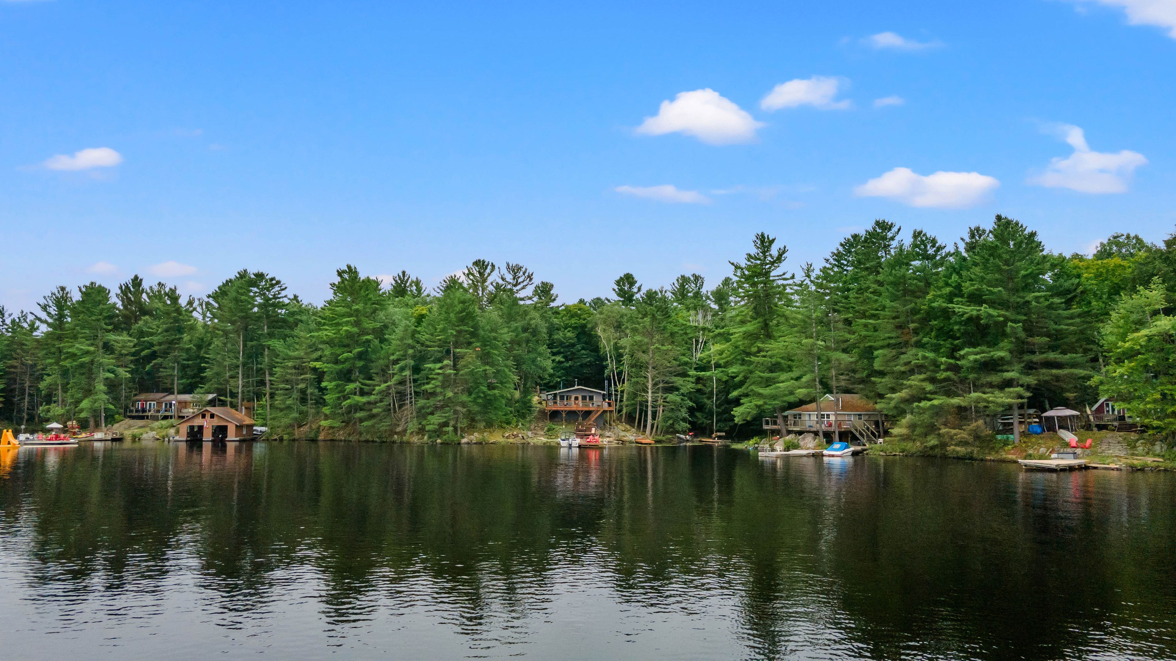 ** boat/atv access only ** located on a picturesque 1. 33-acre lot with 163 feet of pristine shoreline, this family cottage on go home lake offers the perfect blend of comfort, functionality, and natural beauty for year-round enjoyment. The open-concept living space features a vaulted ceiling, cozy woodstove, and walk-out decks on two sides that provide breathtaking views of the water. The interior layout seamlessly combines the living room, dining area, and kitchen, creating a spacious and inviting atmosphere ideal for entertaining or family gatherings. Designed for winter use, the cottage includes a heated water line and an insulated, spray-foamed foundation, ensuring comfort in every season. The property boasts three docks for ample boat space and water activities, complemented by a flagstone walkway, firepit, and sandy beach area that enhance the waterfront experience. Behind the cottage, a newer 32 x 24-foot workshop/sleeping cabin awaits your personal touch, currently set up with two bedrooms and a potential bathroom, while the back portion serves as a workshop with a garage door for you snowmobiles and atvs. There is also the potential to add stairs up to the loft area over the workshop. Accessible year-round by boat in warmer months and by atv or snowmobile via a year-round trail in the shoulder and winter seasons, the cottage is just 10 minutes from the marina by boat and 20 minutes by atv or snowmobile. The surrounding trails provide excellent opportunities for hiking and mountain biking, especially in the fall when the leaves turn vibrant colours. Go home lake's beautiful shoreline, with over 50% being crown land, offers endless exploration opportunities, including waterfalls to visit and access to georgian bay through the local lake club.