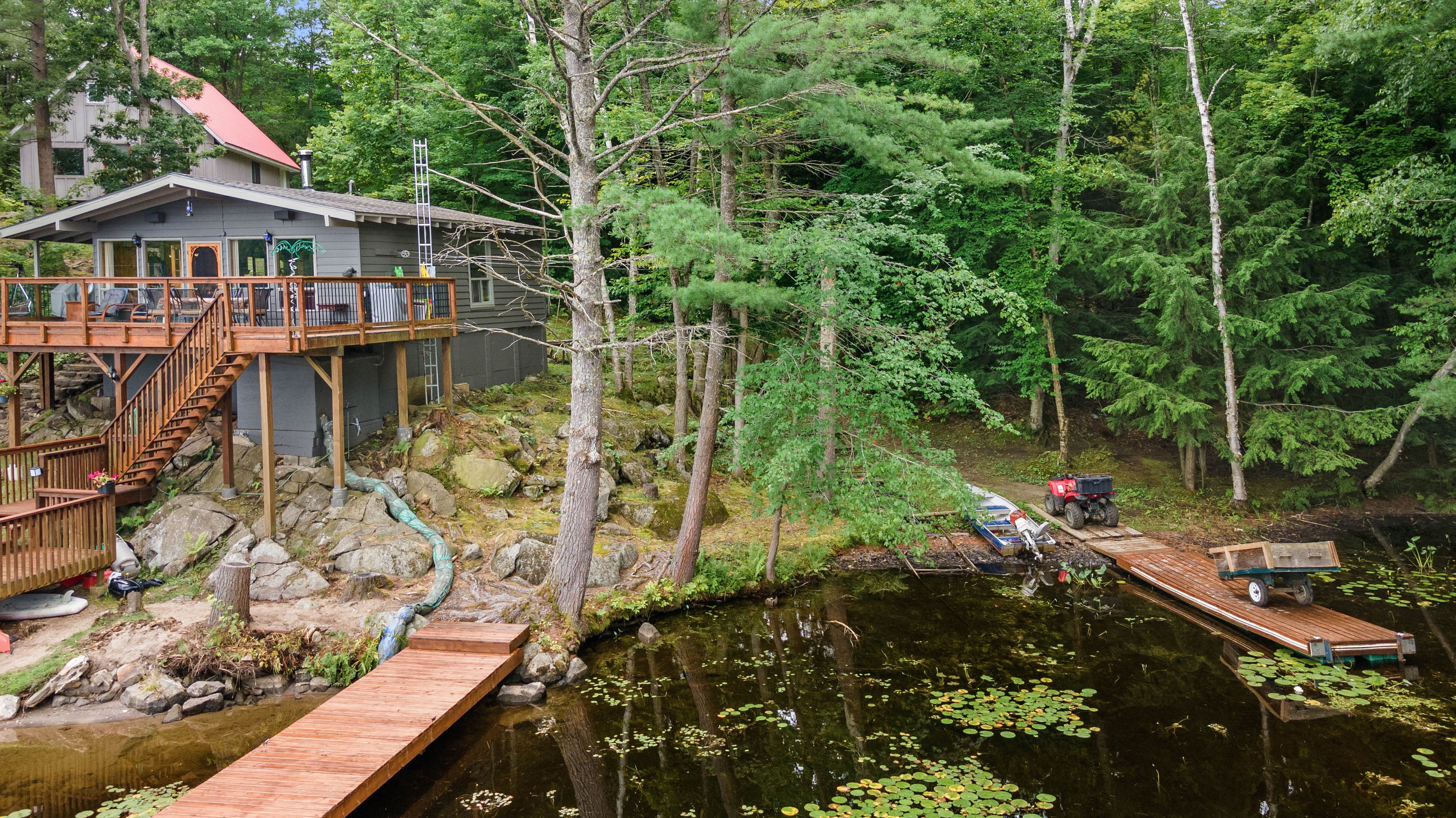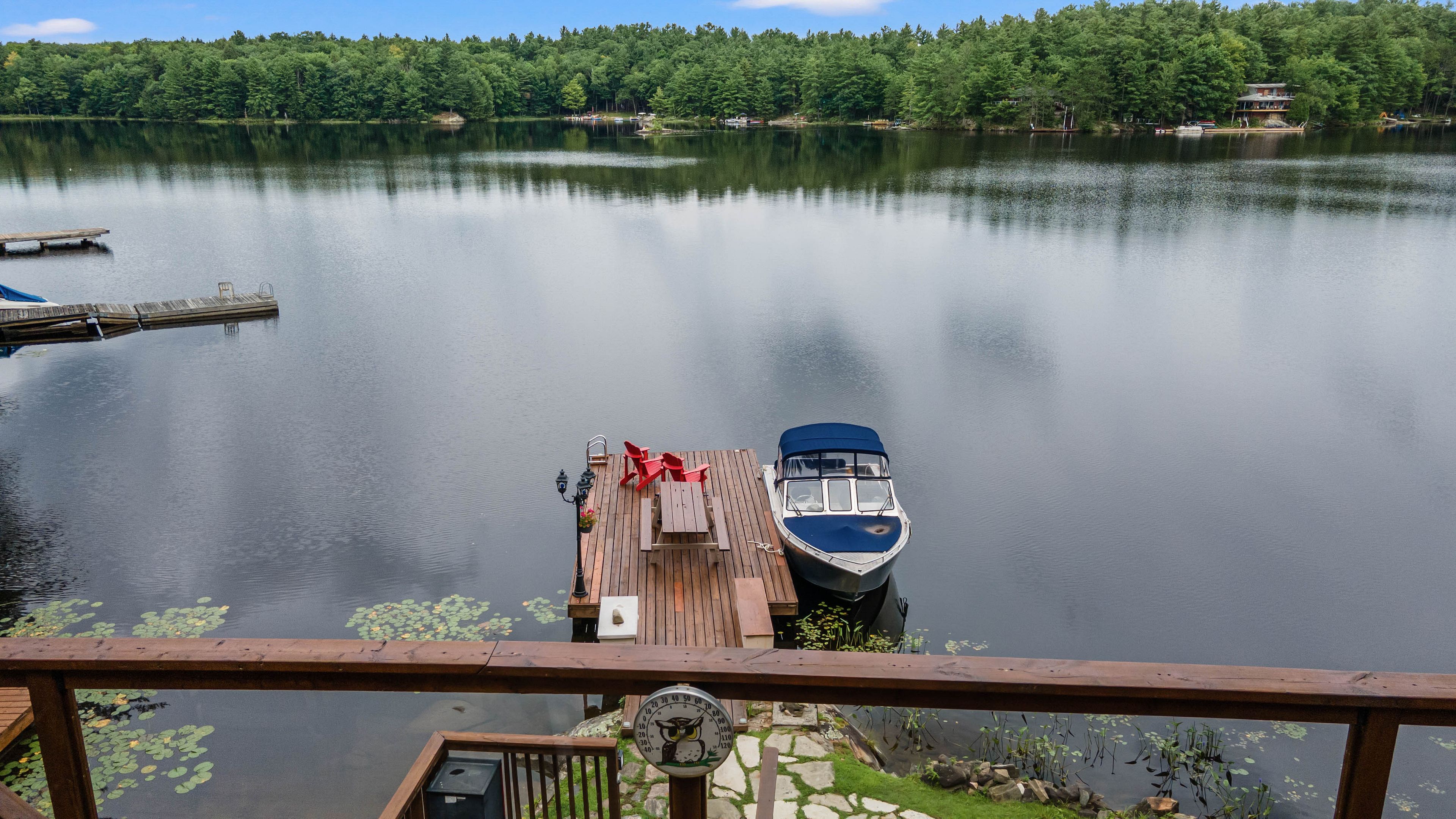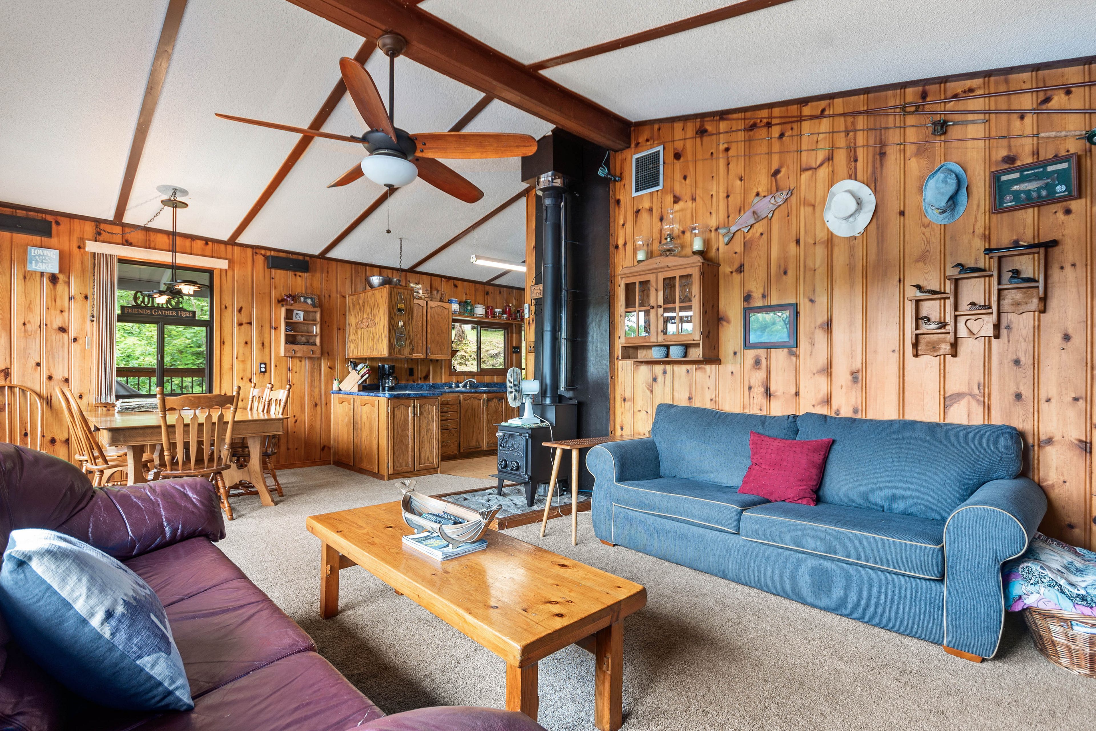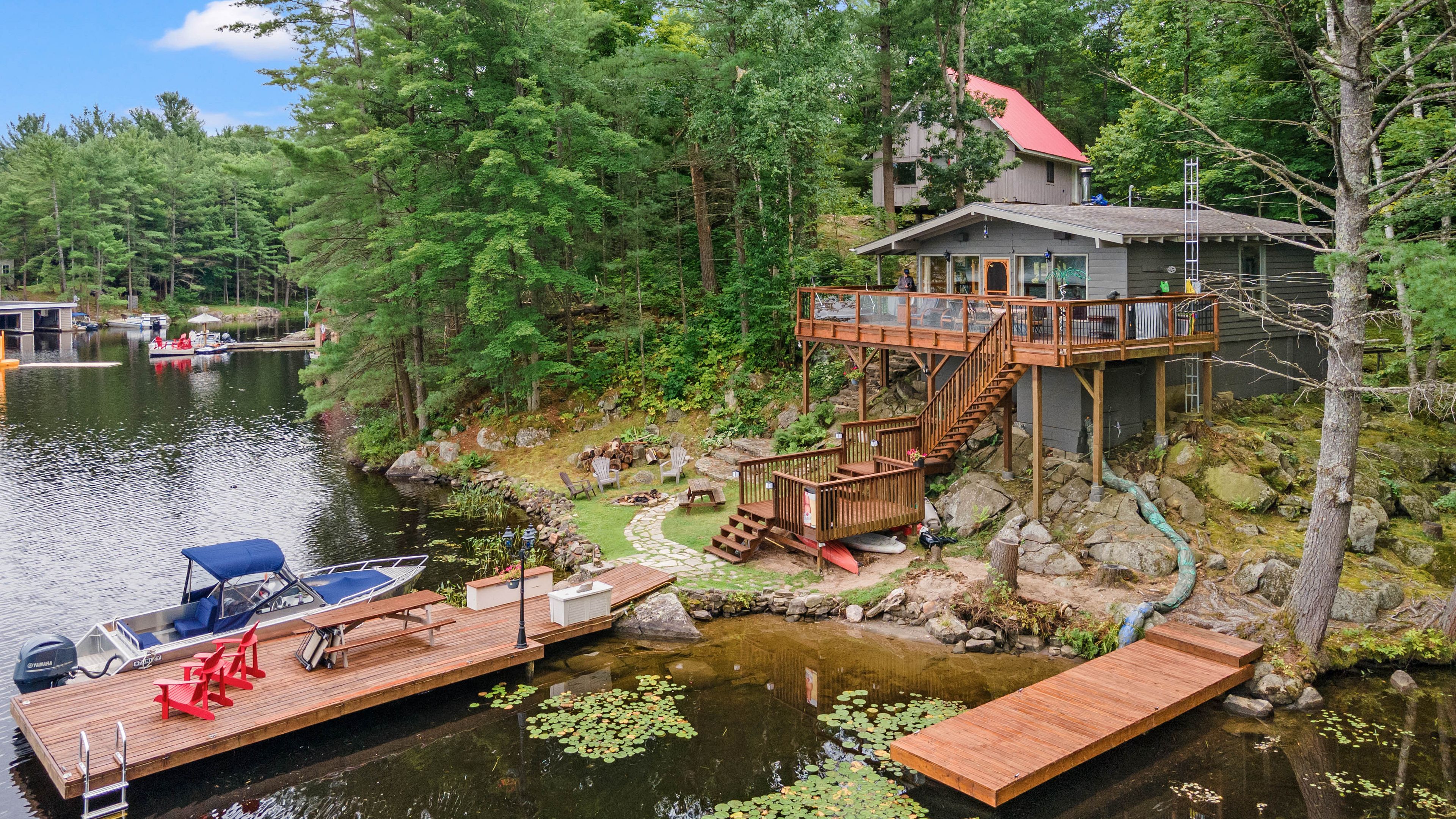 ** boat/atv access only ** located on a picturesque 1. 33-acre lot with 163 feet of pristine shoreline, this family cottage on go home lake offers the perfect blend of comfort, functionality, and natural beauty for year-round enjoyment. The open-concept living space features a vaulted ceiling, cozy woodstove, and walk-out decks on two sides that provide breathtaking views of the water. The interior layout seamlessly combines the living room, dining area, and kitchen, creating a spacious and inviting atmosphere ideal for entertaining or family gatherings. Designed for winter use, the cottage includes a heated water line and an insulated, spray-foamed foundation, ensuring comfort in every season. The property boasts three docks for ample boat space and water activities, complemented by a flagstone walkway, firepit, and sandy beach area that enhance the waterfront experience. Behind the cottage, a newer 32 x 24-foot workshop/sleeping cabin awaits your personal touch, currently set up with two bedrooms and a potential bathroom, while the back portion serves as a workshop with a garage door for you snowmobiles and atvs. There is also the potential to add stairs up to the loft area over the workshop. Accessible year-round by boat in warmer months and by atv or snowmobile via a year-round trail in the shoulder and winter seasons, the cottage is just 10 minutes from the marina by boat and 20 minutes by atv or snowmobile. The surrounding trails provide excellent opportunities for hiking and mountain biking, especially in the fall when the leaves turn vibrant colours. Go home lake's beautiful shoreline, with over 50% being crown land, offers endless exploration opportunities, including waterfalls to visit and access to georgian bay through the local lake club.
