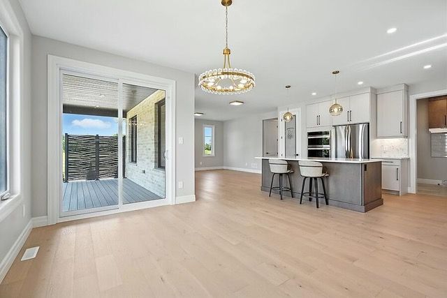 Fabulous new model home for sale located in london's newer "liberty crossing" situated in the coveted south! This unique model known as the " evergreen 11" features over 4,000 sq ft of quality finishes on all 3 levels! 9 ft ceilings on all levels- attractive engineered hardwood throughout- beautiful oak staircase-spacious kitchen with large walk-in pantry ready to beset up as a "messy kitchen" if desired. - 4 + 2 bedrooms- 5 full bathrooms-main floor den (or bedroom) - lower level features fully finished suite with 2 bedrooms, kitchenette, living room, 4 pc bathroom, laundry room+++convenient separate side entrance. The evergreen ii stands out with its contemporary design and neutral colour palette, delivering timeless curb appeal. The striking exterior, featuring a blend of stone, stucco, and wood accents, sets the tone for the sophisticated finishes inside. Large windows flood the spacious interiors with abundant natural light. Located on a premium corner lot, this home offers both privacy and convenience, with easy access to highway 401, making commuting and city exploration a breeze. Situated in the vibrant liberty crossing community, this two-storey residence is thoughtfully designed for today's discerning homeowner, blending style, comfort, and functionality. Close to several popular amenities. Must be seen to be appreciated. Experience the difference and quality built by; willow bridge homes